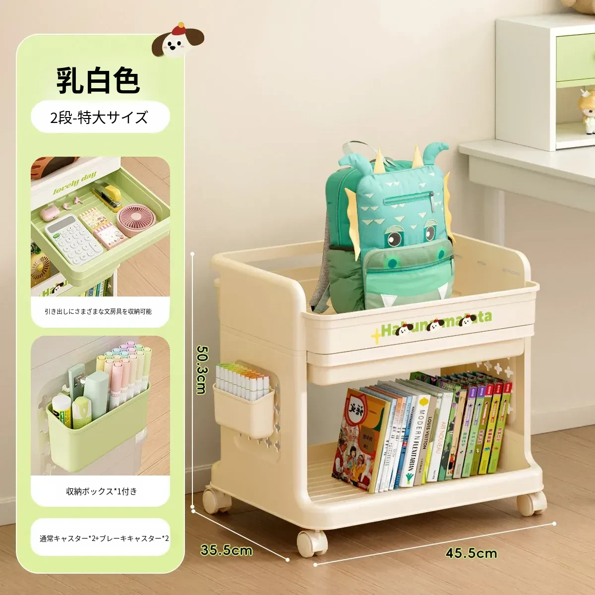大号奶白【2層+1引き出し】バスケット*1付き【約30冊/小中学校用】