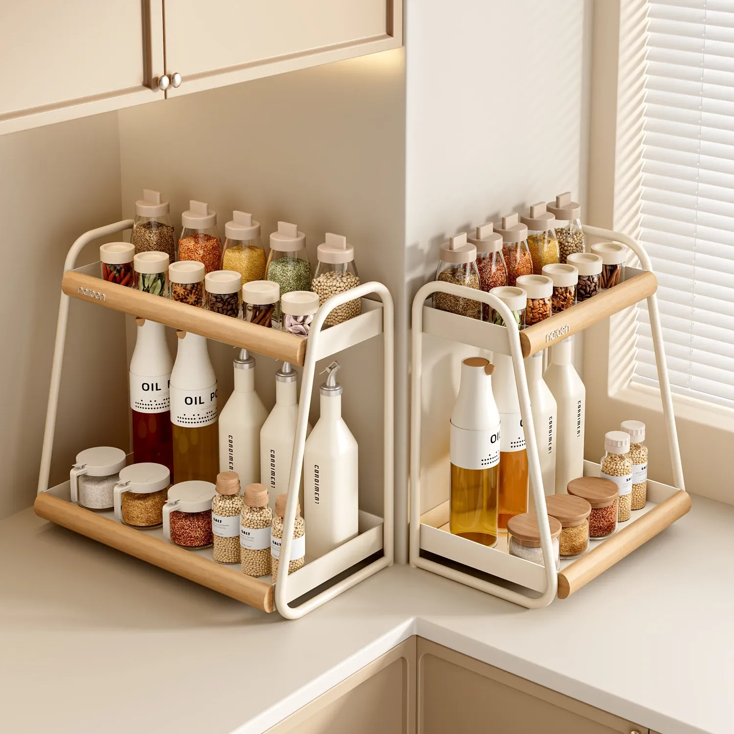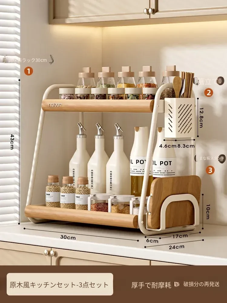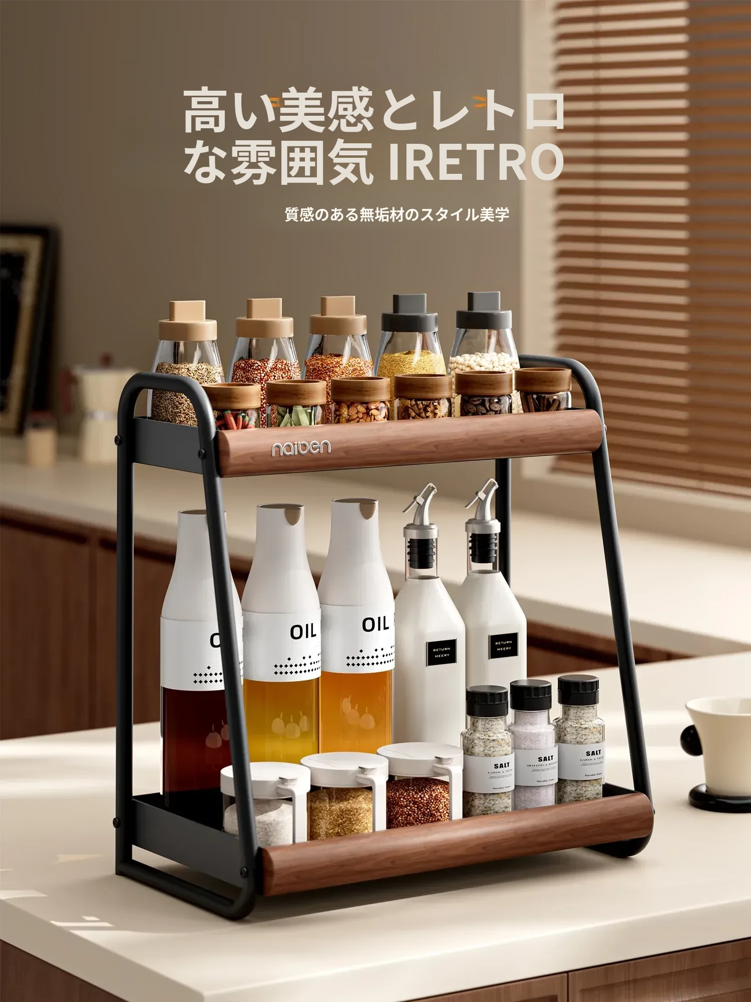 キッチン調味料ラック 家庭用多機能台所調味料ボトル収納 おしゃれな油・塩・醤油・酢の整理に最適な便利グッズ!