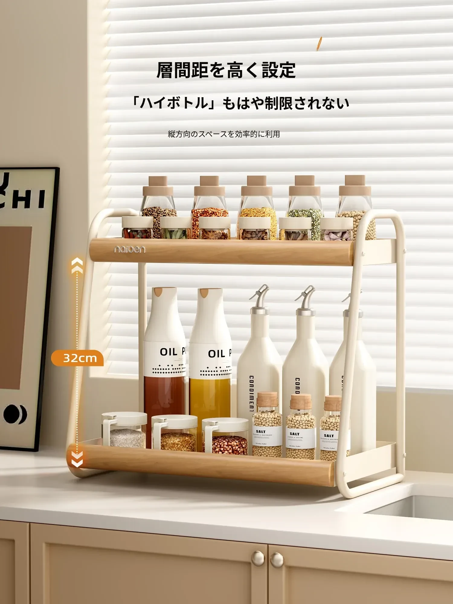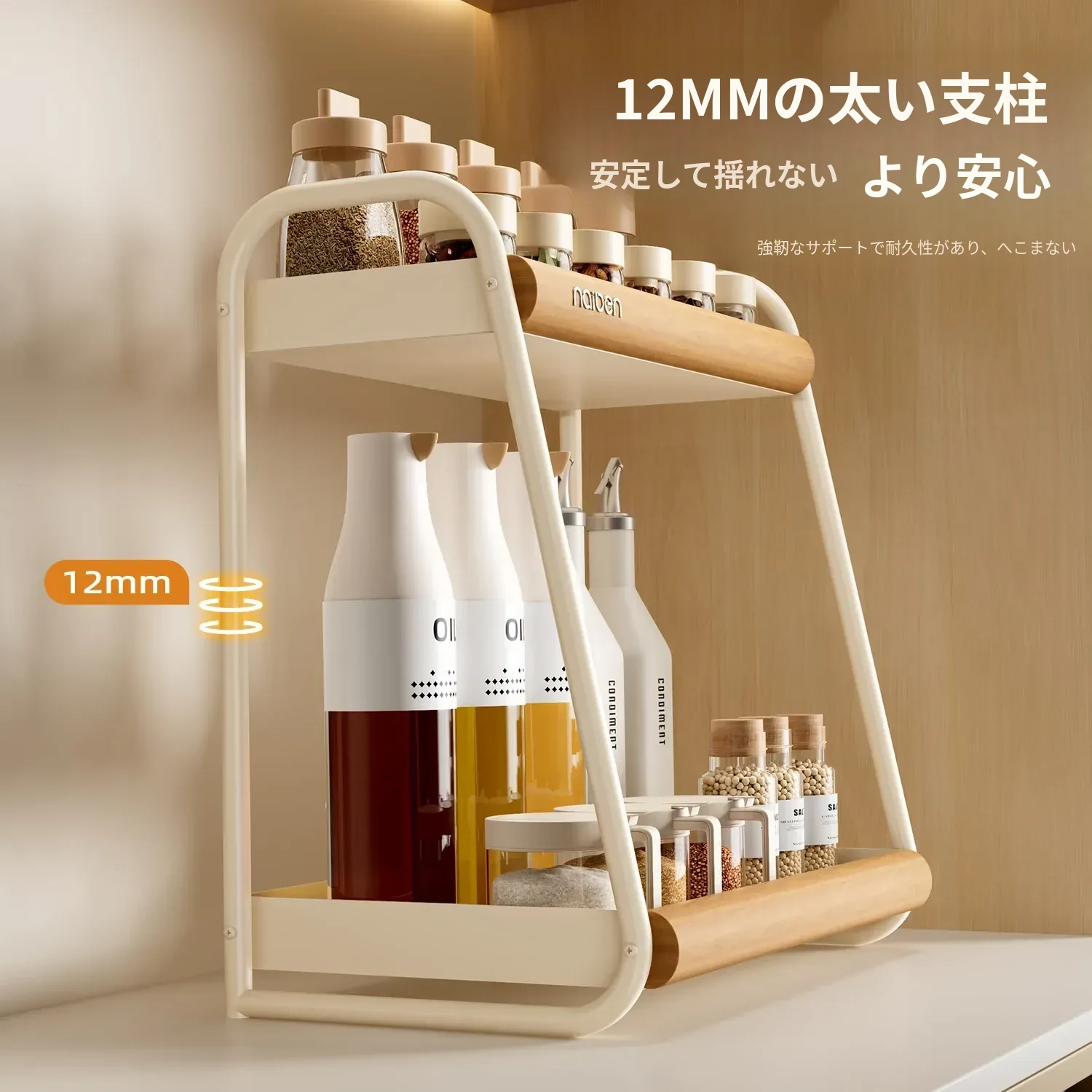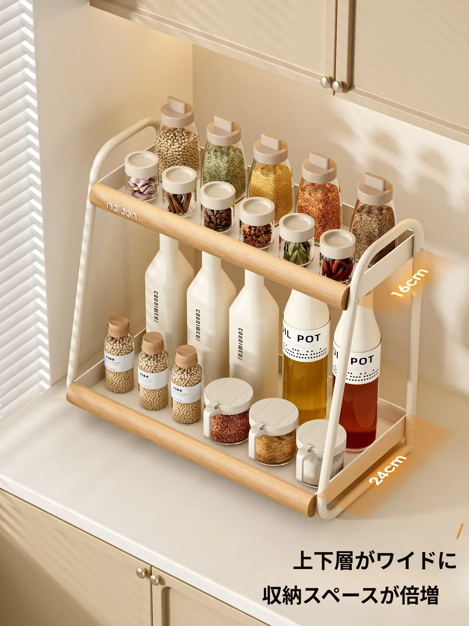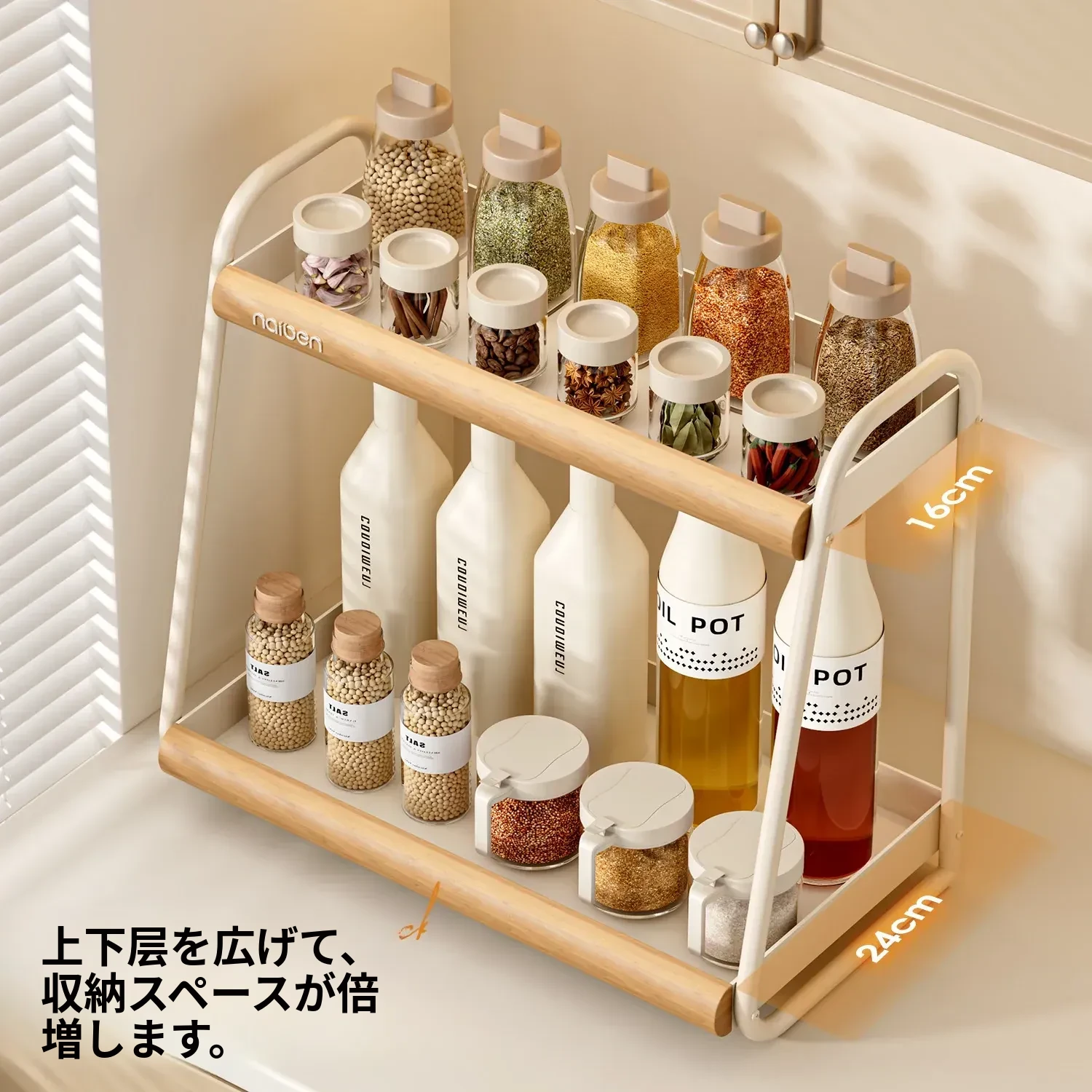 調味料ラック【大サイズ/二段/ナチュラルウッド】