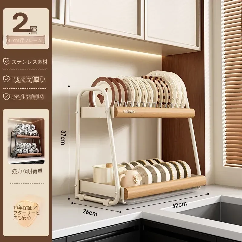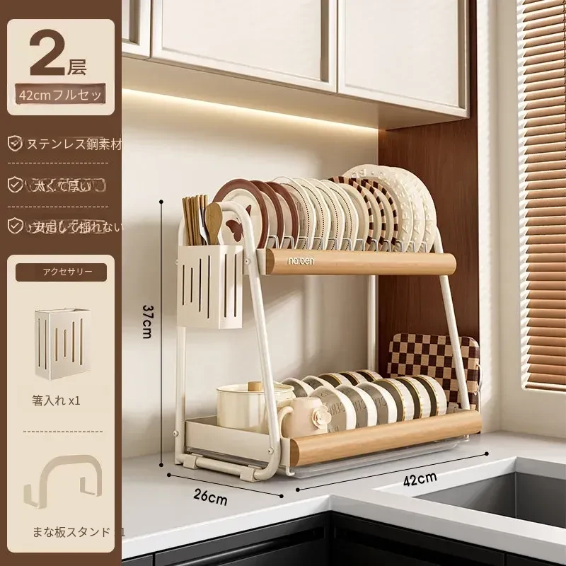 ボウルラック【ステンレス/二段/ナチュラルウッド】
