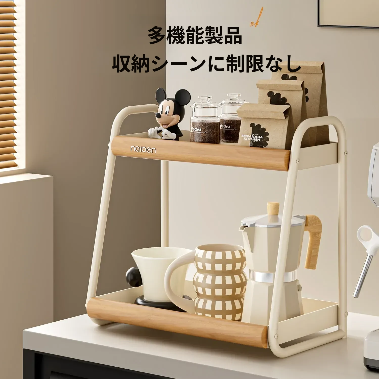 調味料ラック【中サイズ/二段/ナチュラルウッド】