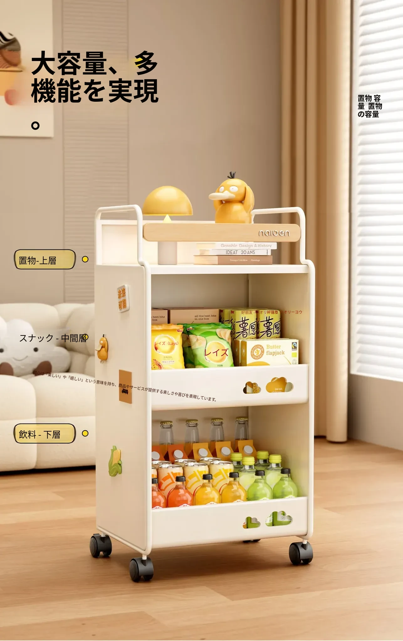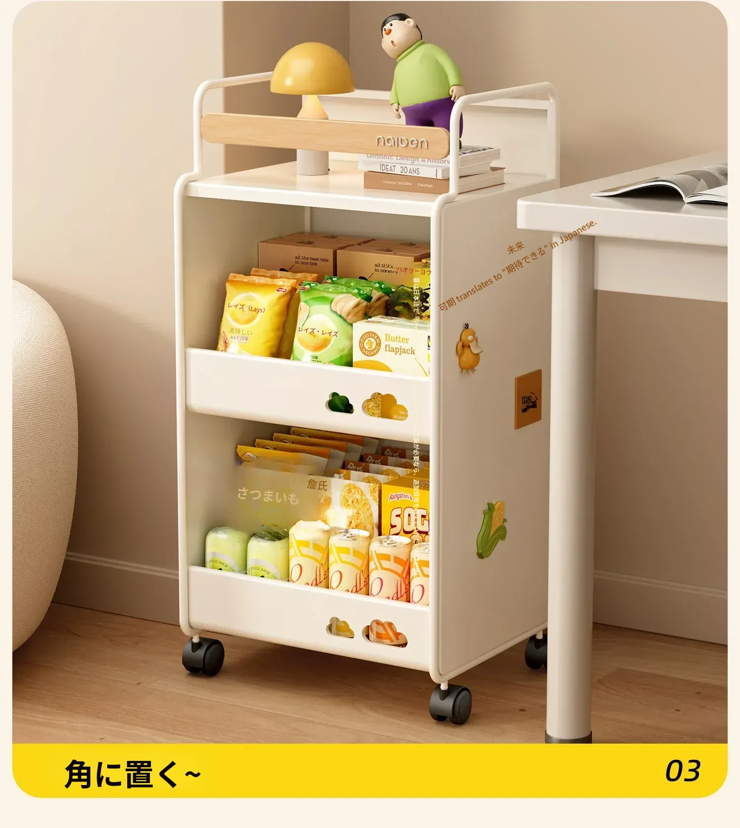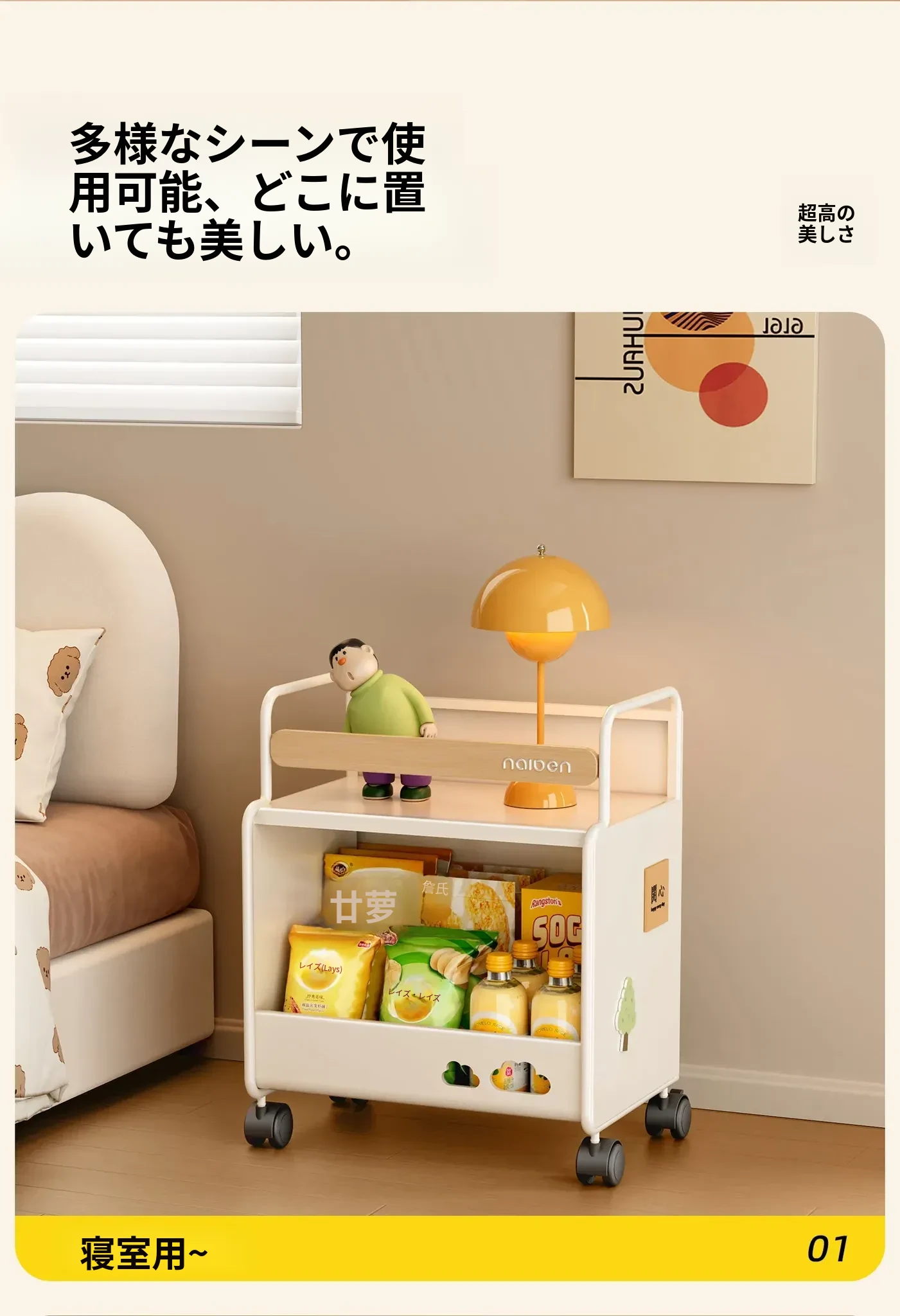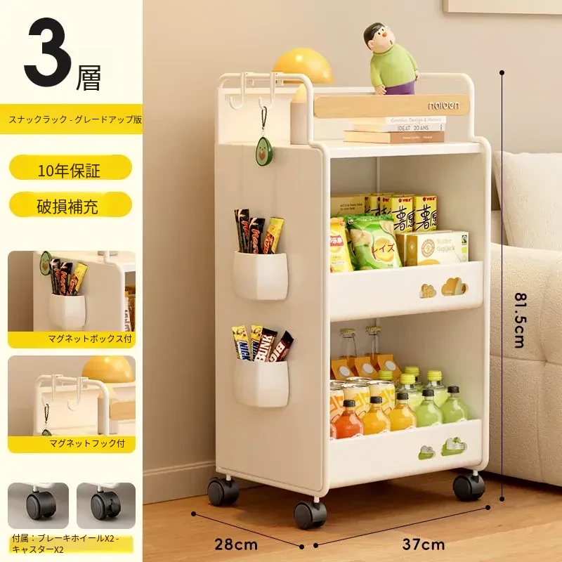 耐久性抜群!小さなベビーカー用スナック収納ラック - 移動可能な多層収納で、寝室やリビング、キッチンに最適な家族向けアイテム。整理整頓が簡単で、赤ちゃんのお世話もスムーズに!