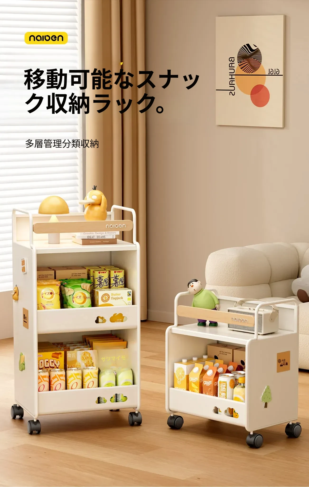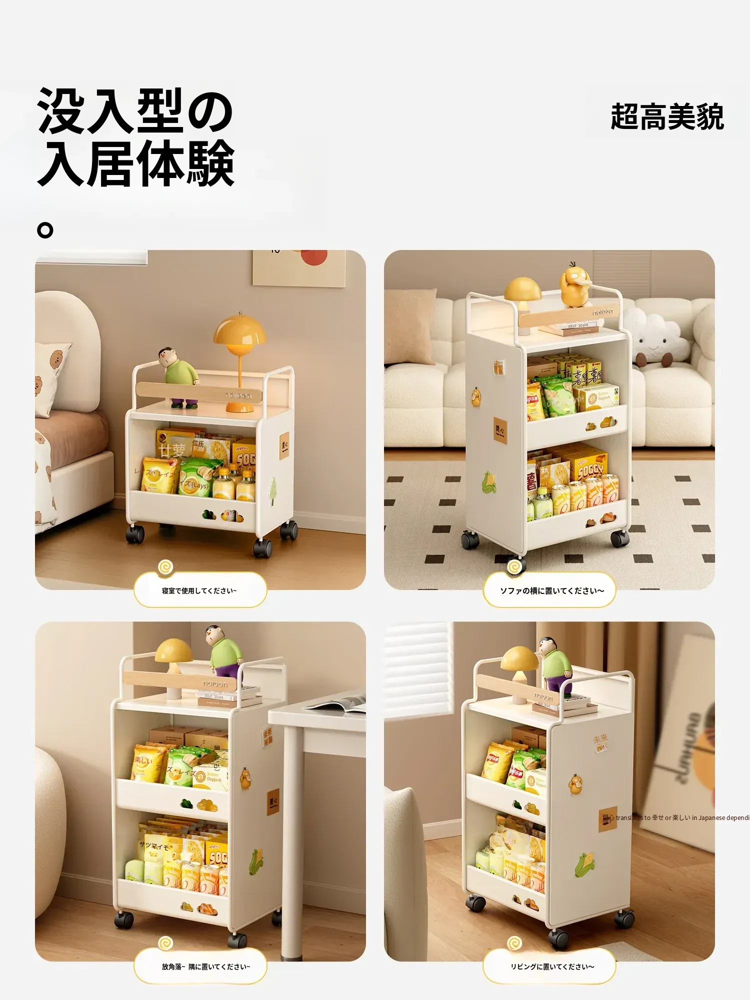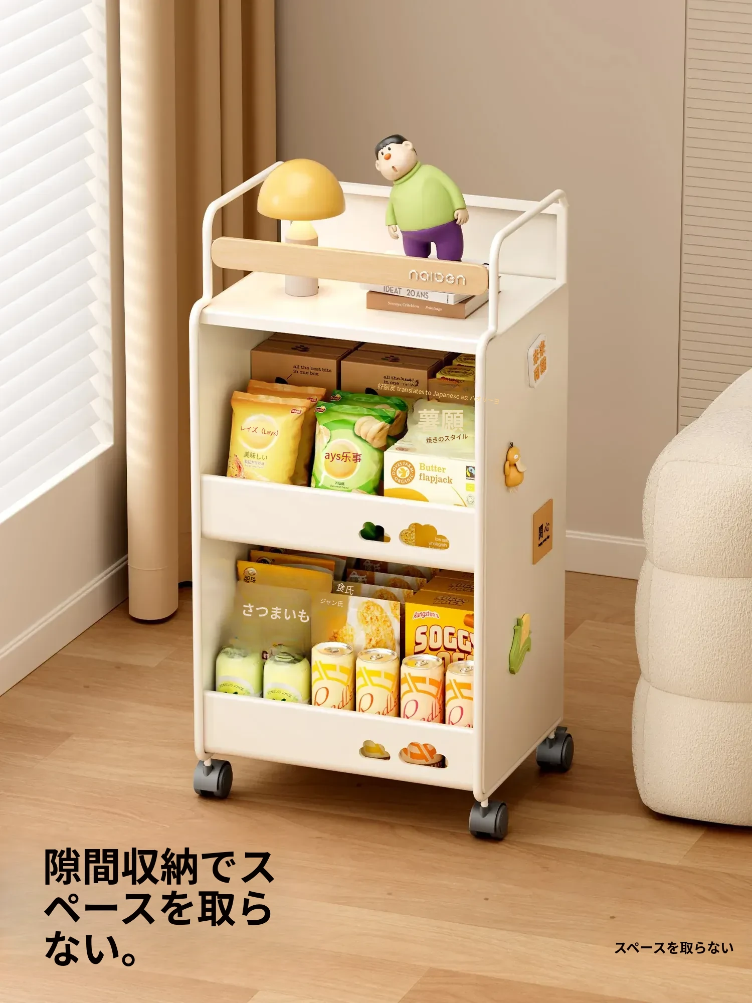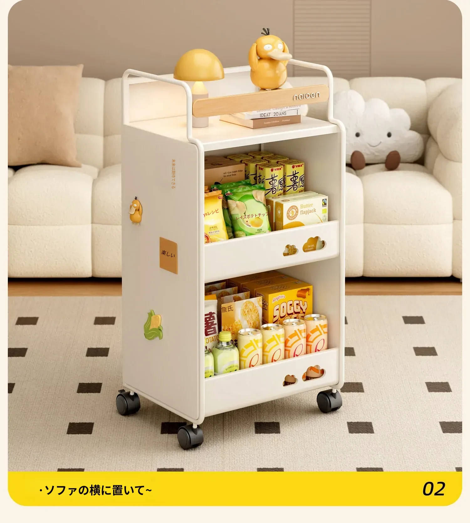 耐久性抜群!小さなベビーカー用スナック収納ラック - 移動可能な多層収納で、寝室やリビング、キッチンに最適な家族向けアイテム。整理整頓が簡単で、赤ちゃんのお世話もスムーズに!