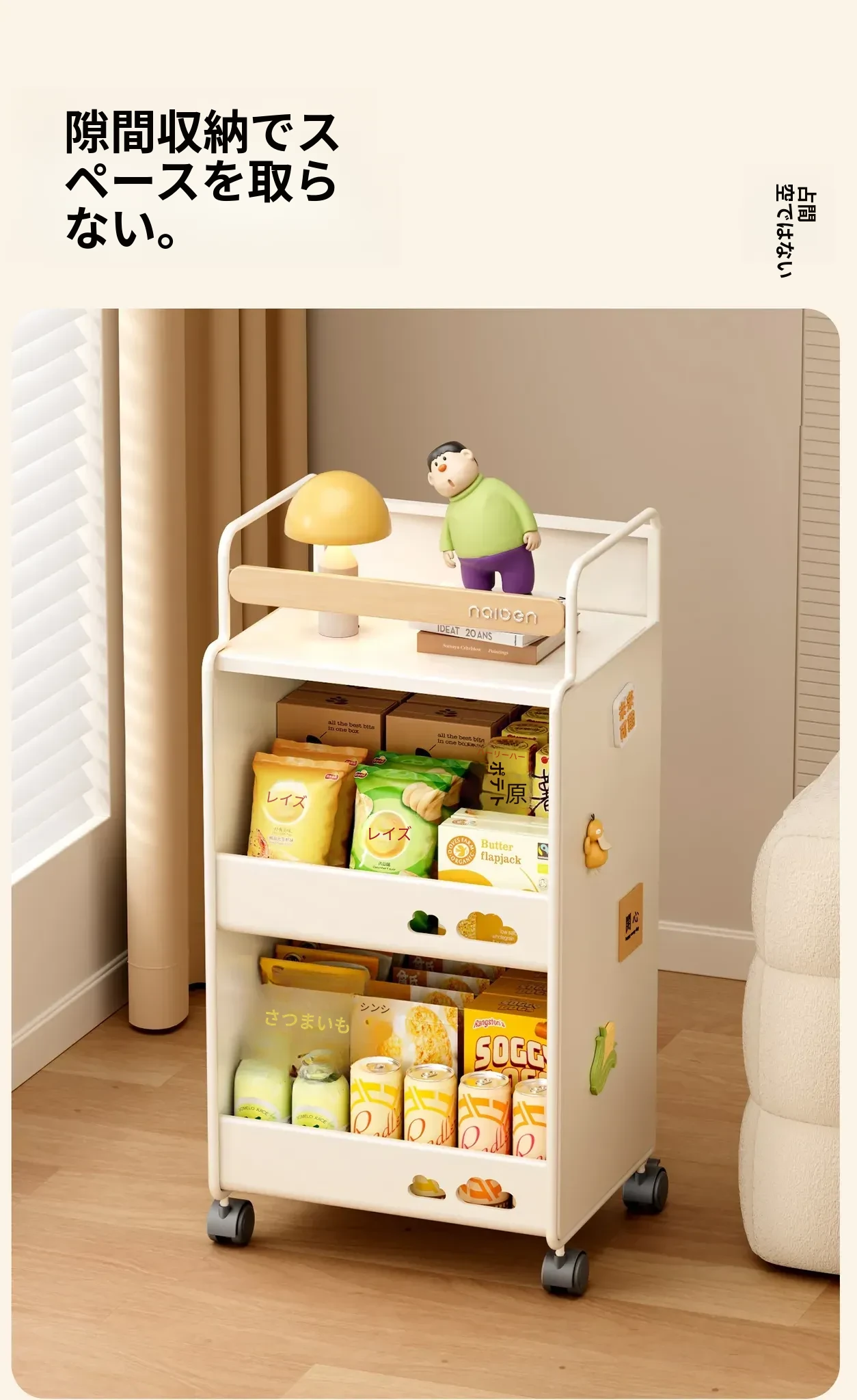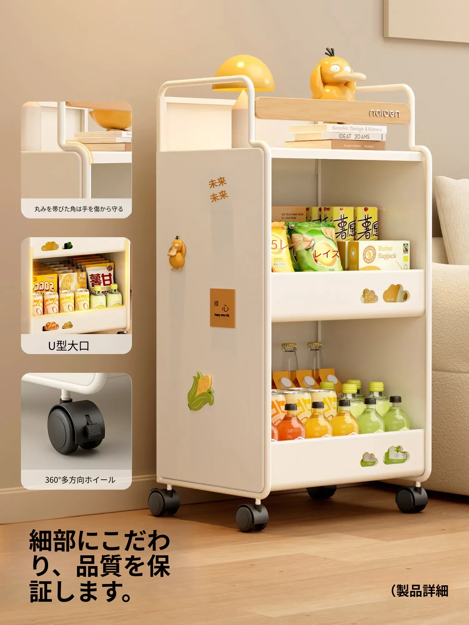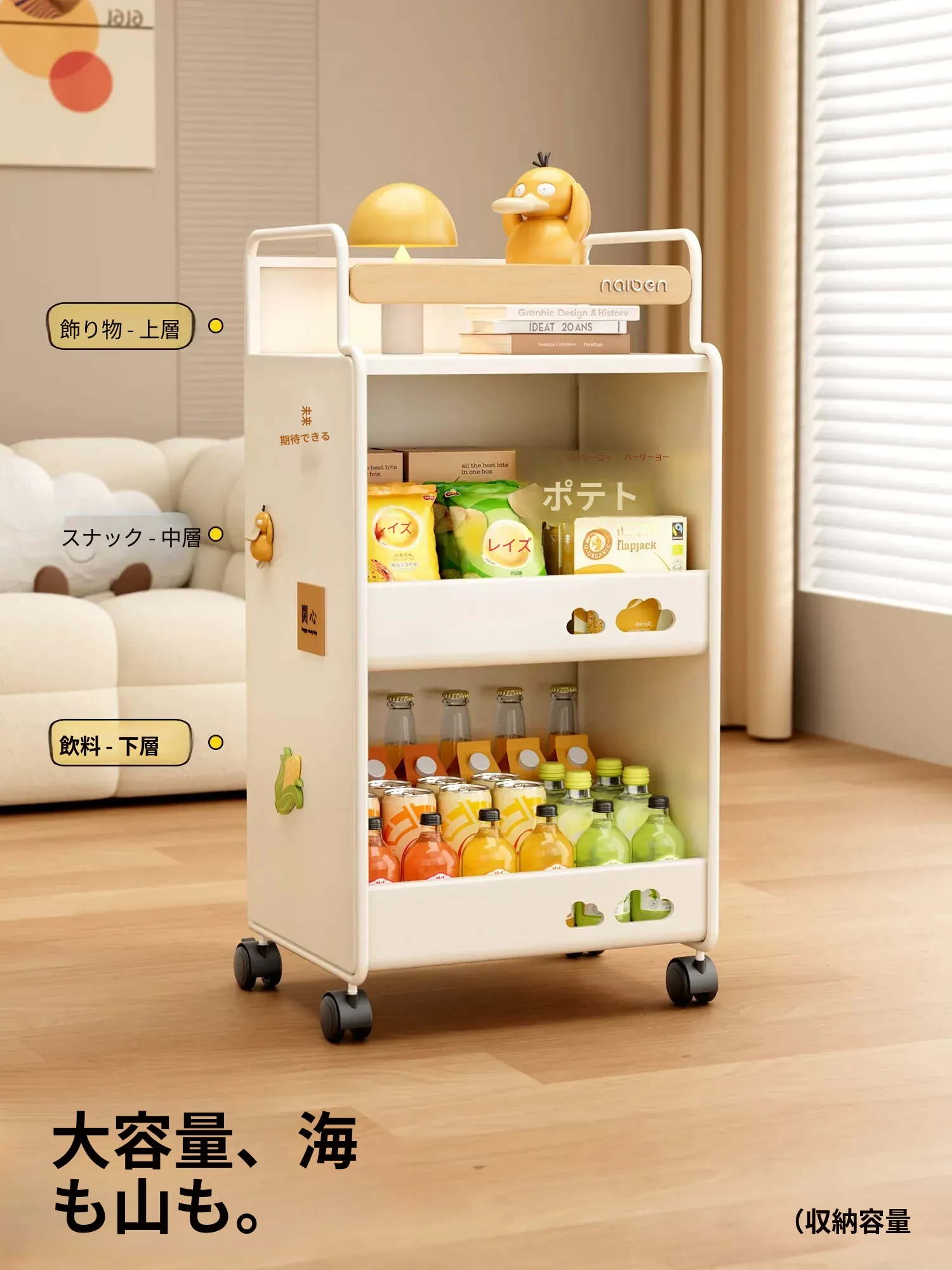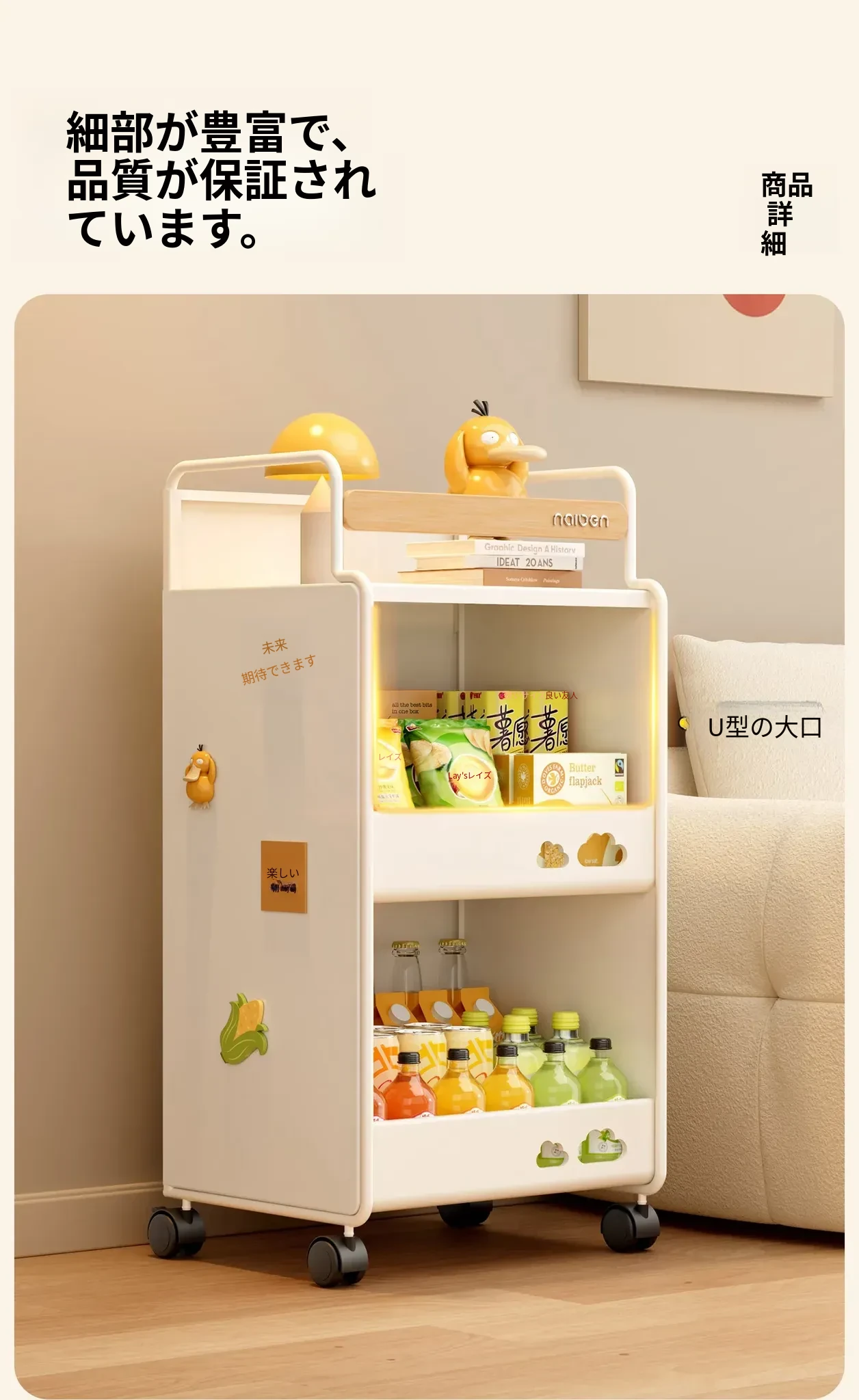 耐久性抜群!小さなベビーカー用スナック収納ラック - 移動可能な多層収納で、寝室やリビング、キッチンに最適な家族向けアイテム。整理整頓が簡単で、赤ちゃんのお世話もスムーズに!