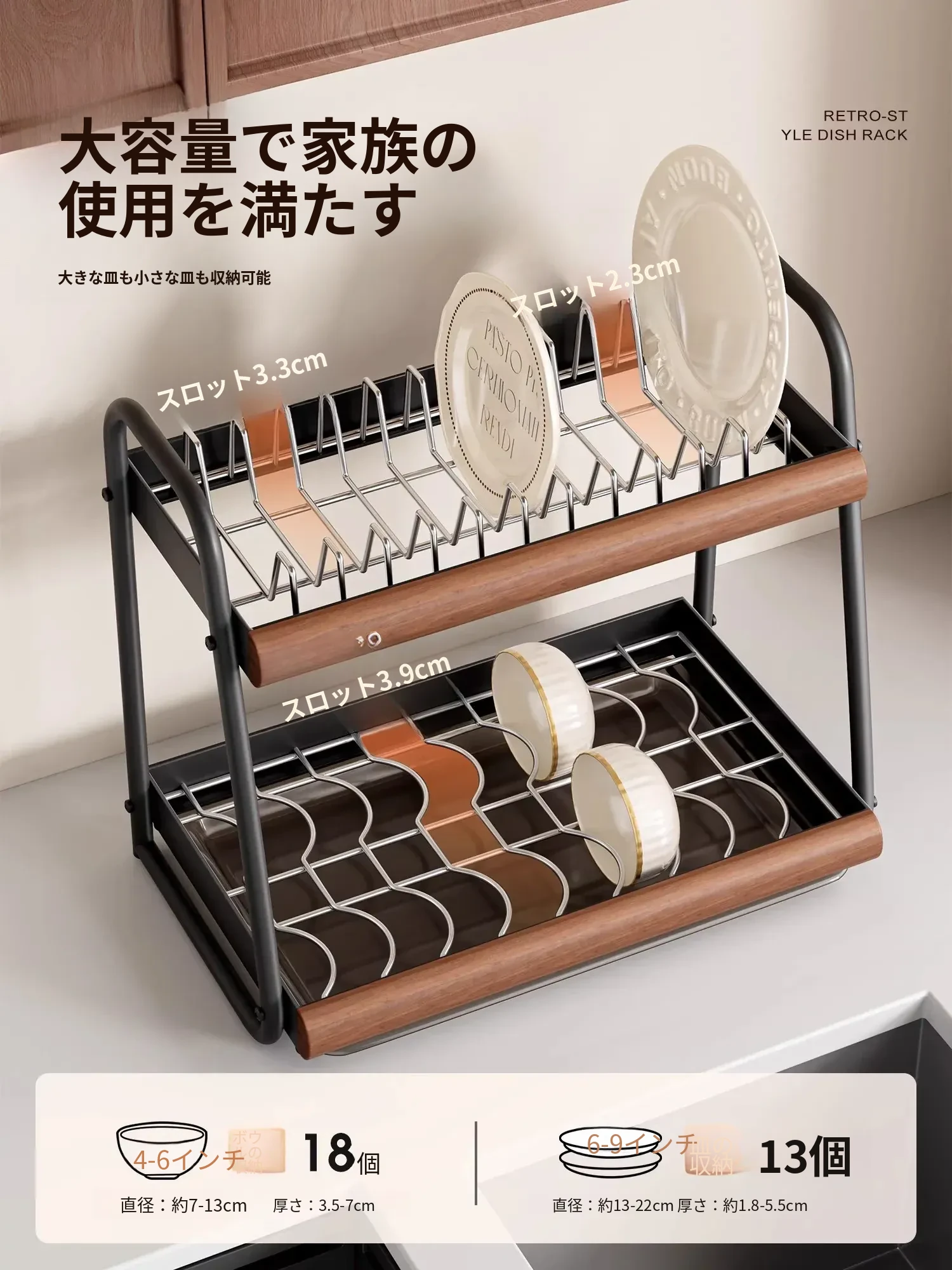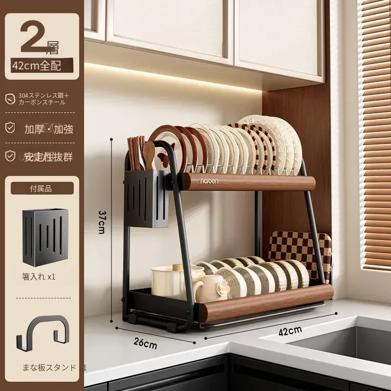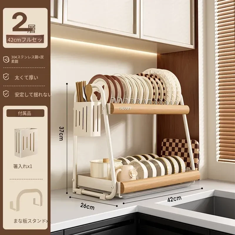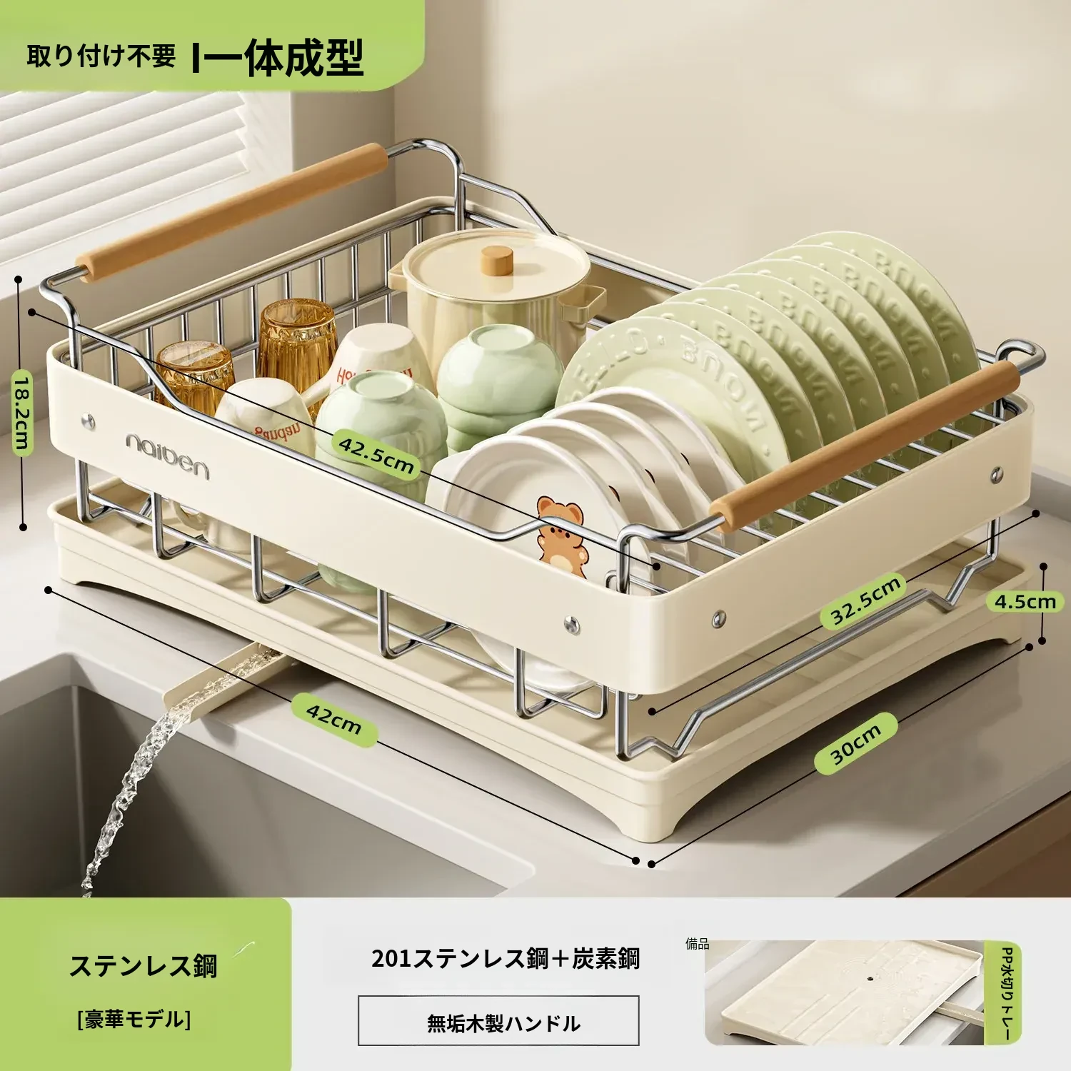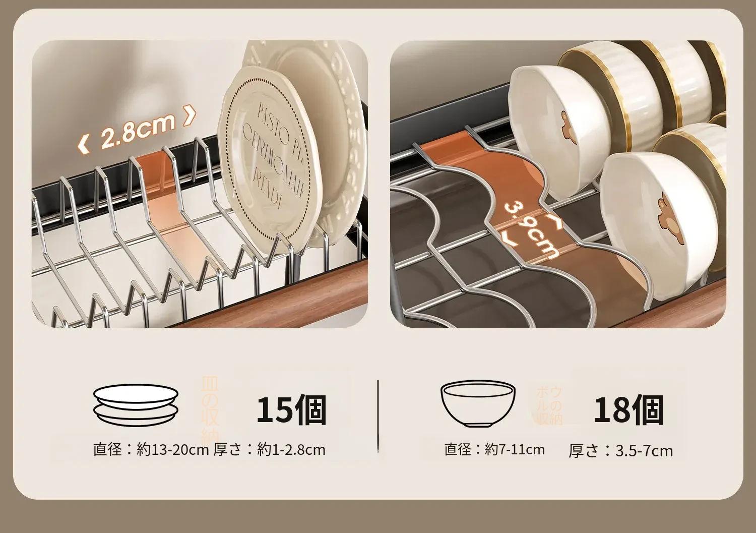耐久性抜群!304ステンレス製キッチン皿ラック - お皿やボウルをしっかり収納できる水切りラック。お箸や食器も整理整頓できる便利な収納ボックス付き!キッチンをスッキリさせる必需品です!