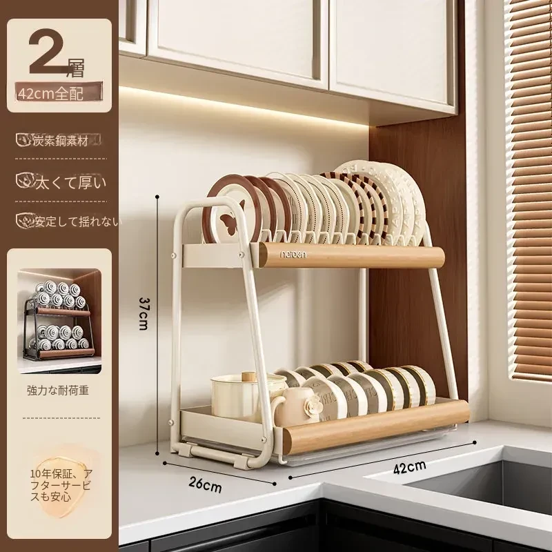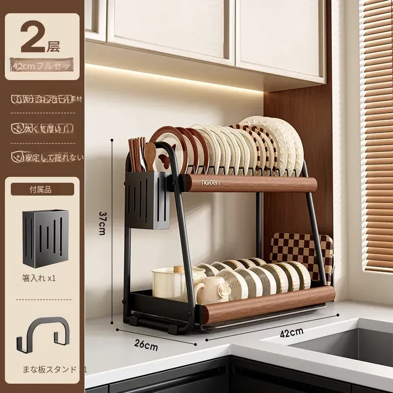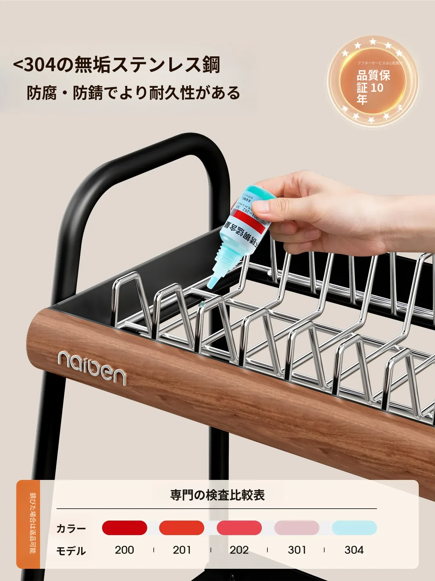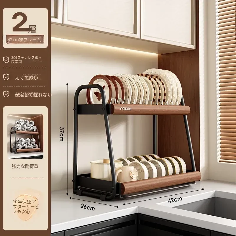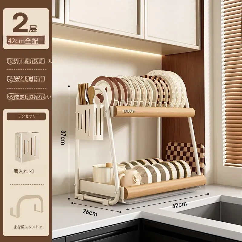 耐久性抜群!304ステンレス製キッチン皿ラック - お皿やボウルをしっかり収納できる水切りラック。お箸や食器も整理整頓できる便利な収納ボックス付き!キッチンをスッキリさせる必需品です!