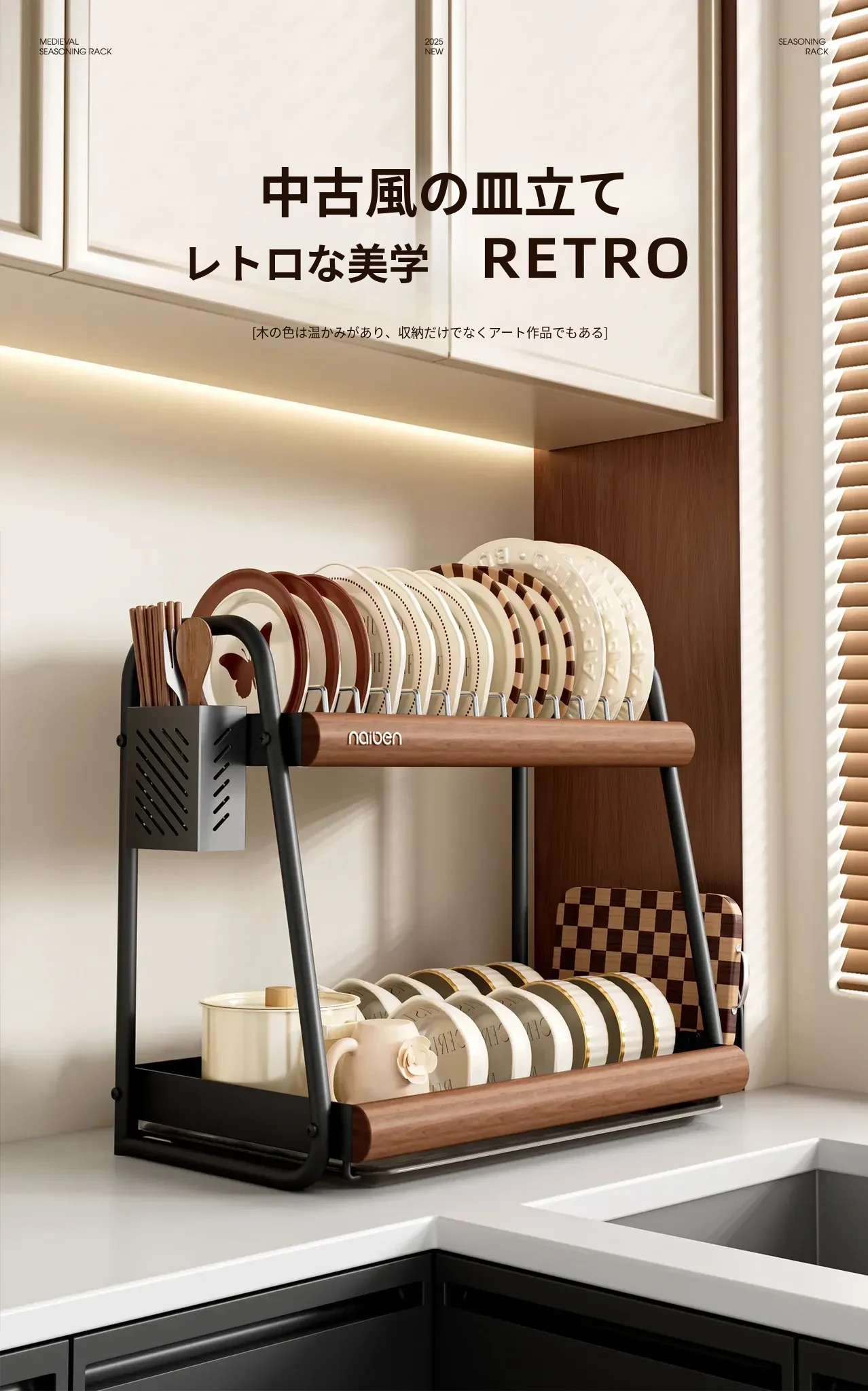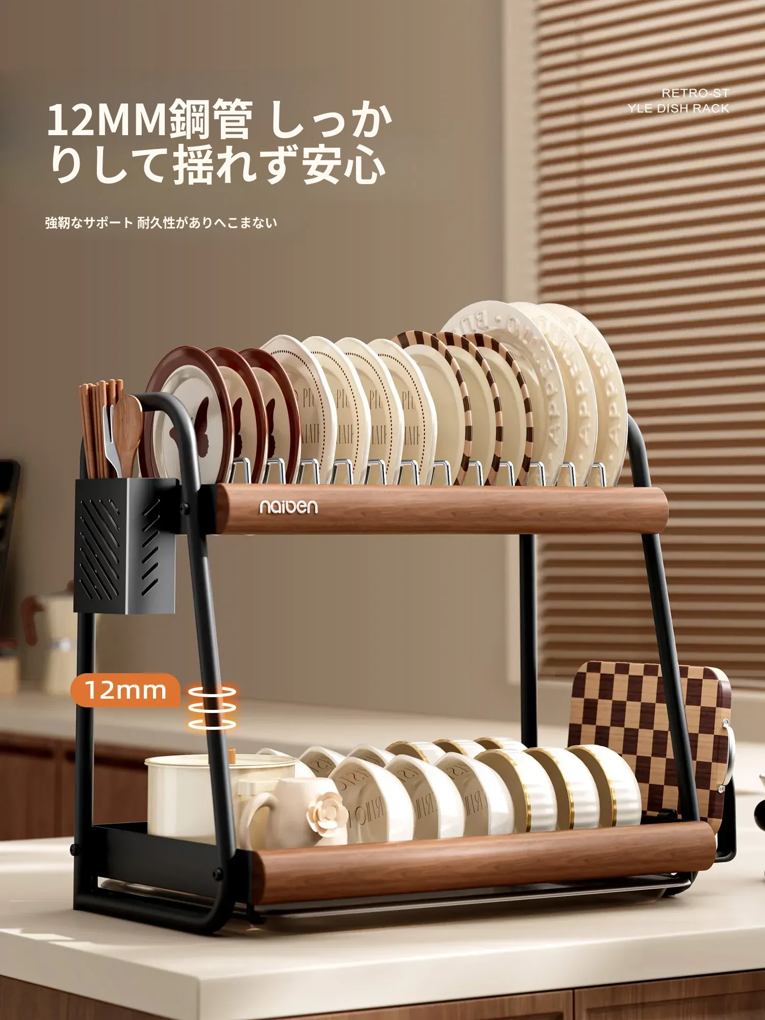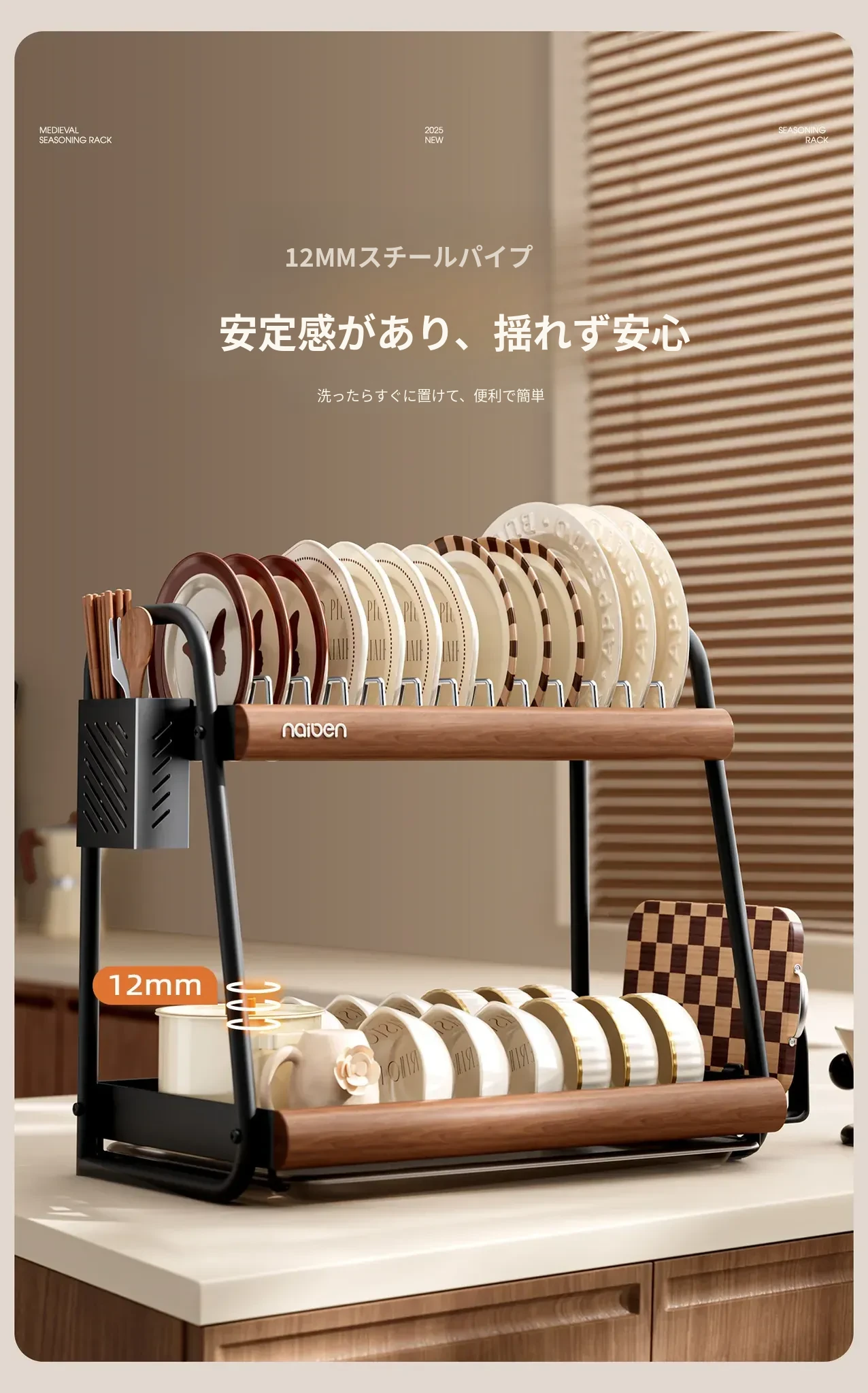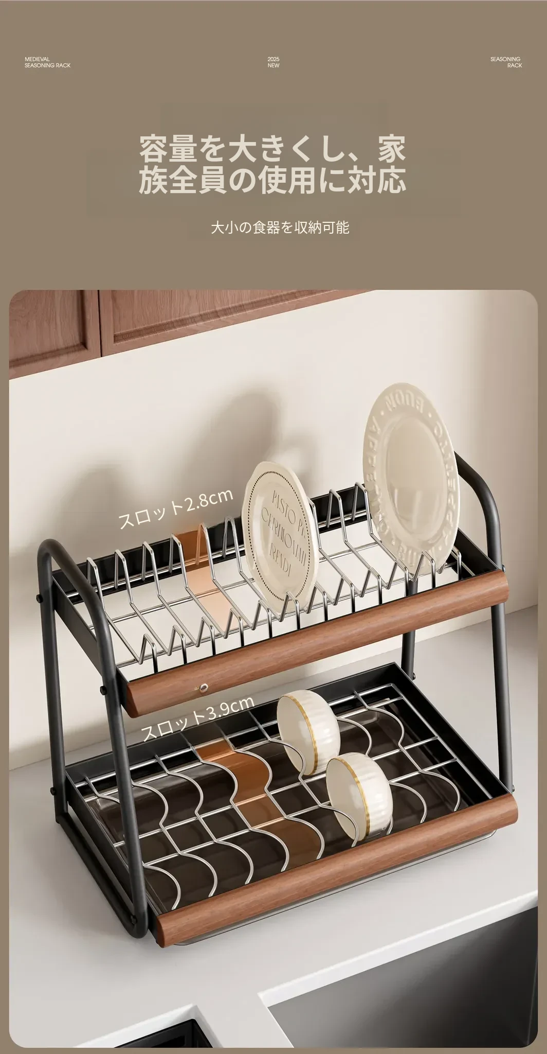 耐久性抜群!304ステンレス製キッチン皿ラック - お皿やボウルをしっかり収納できる水切りラック。お箸や食器も整理整頓できる便利な収納ボックス付き!キッチンをスッキリさせる必需品です!