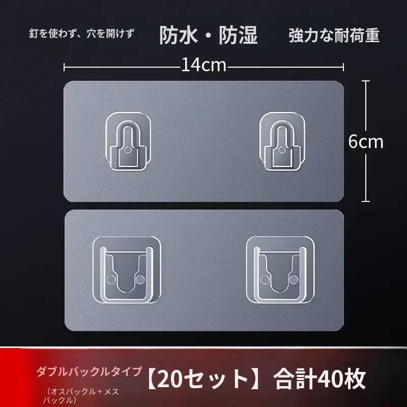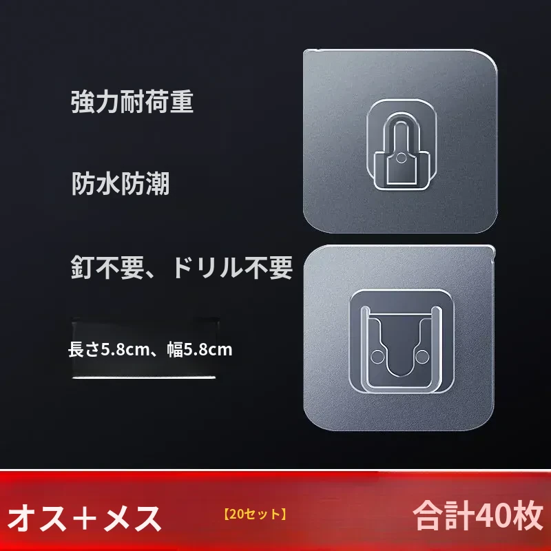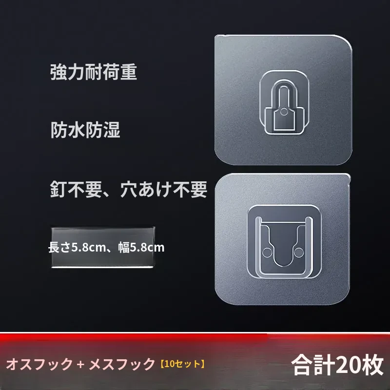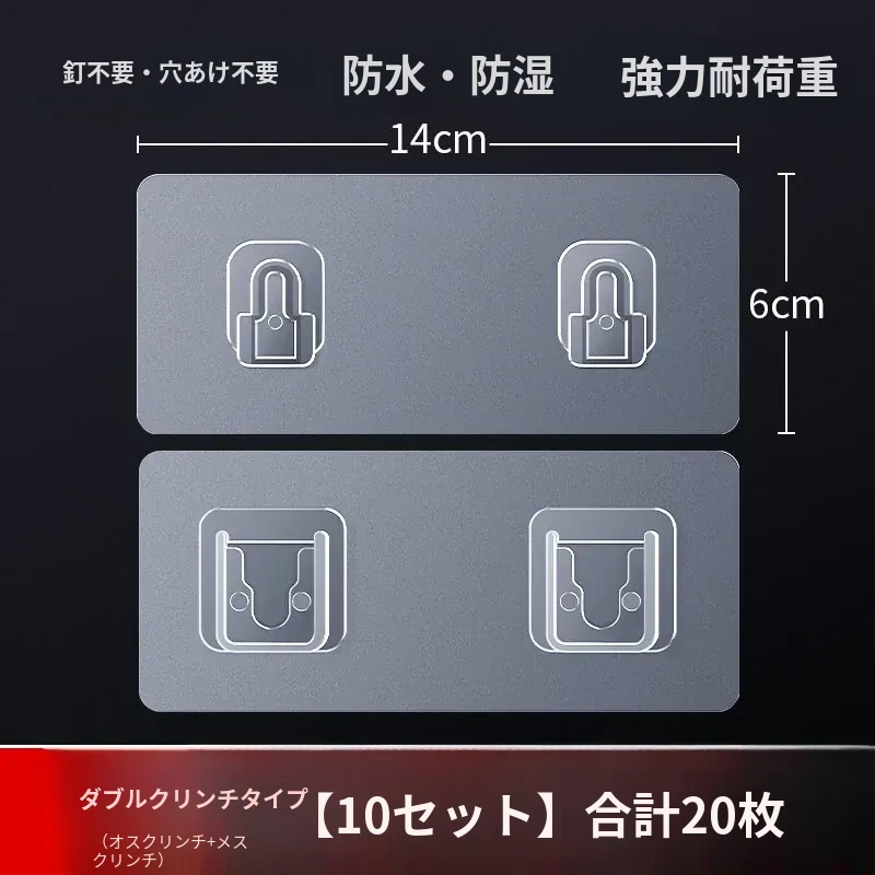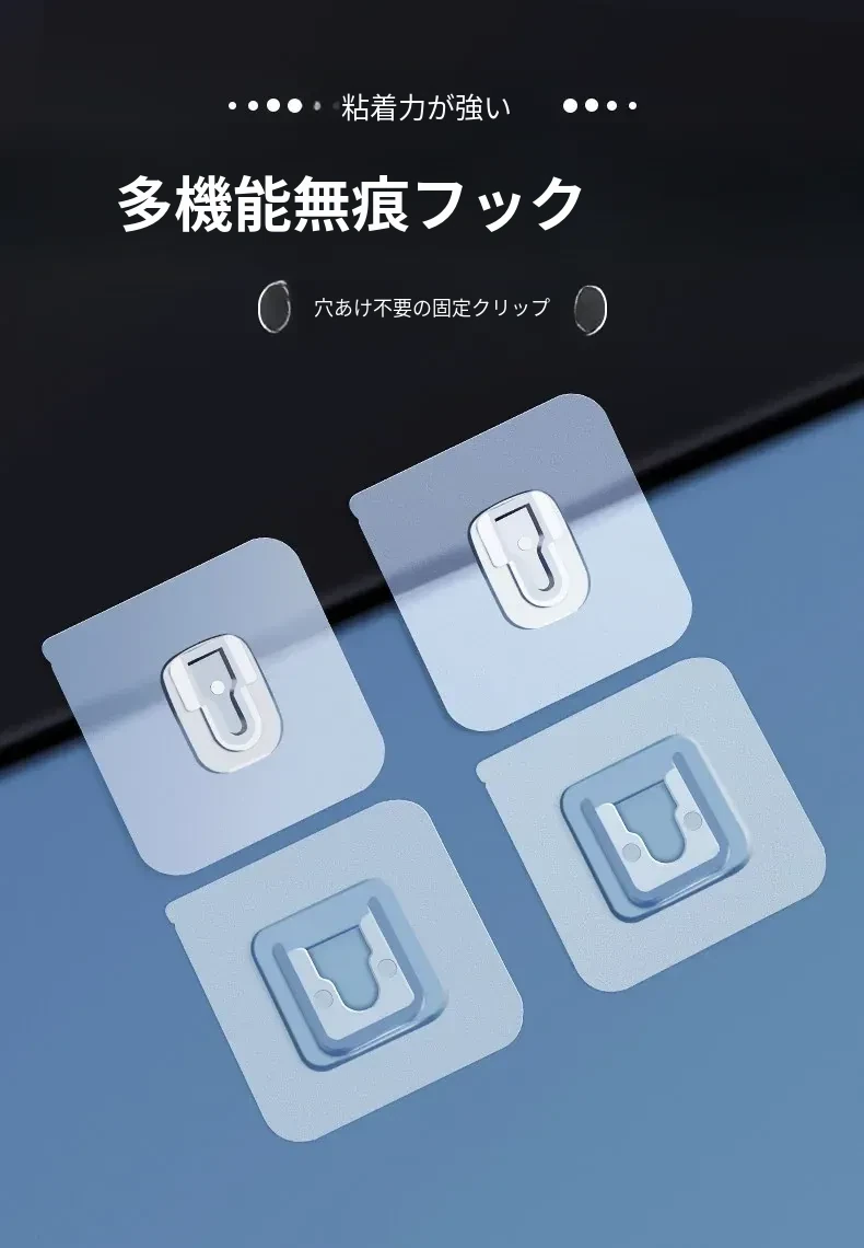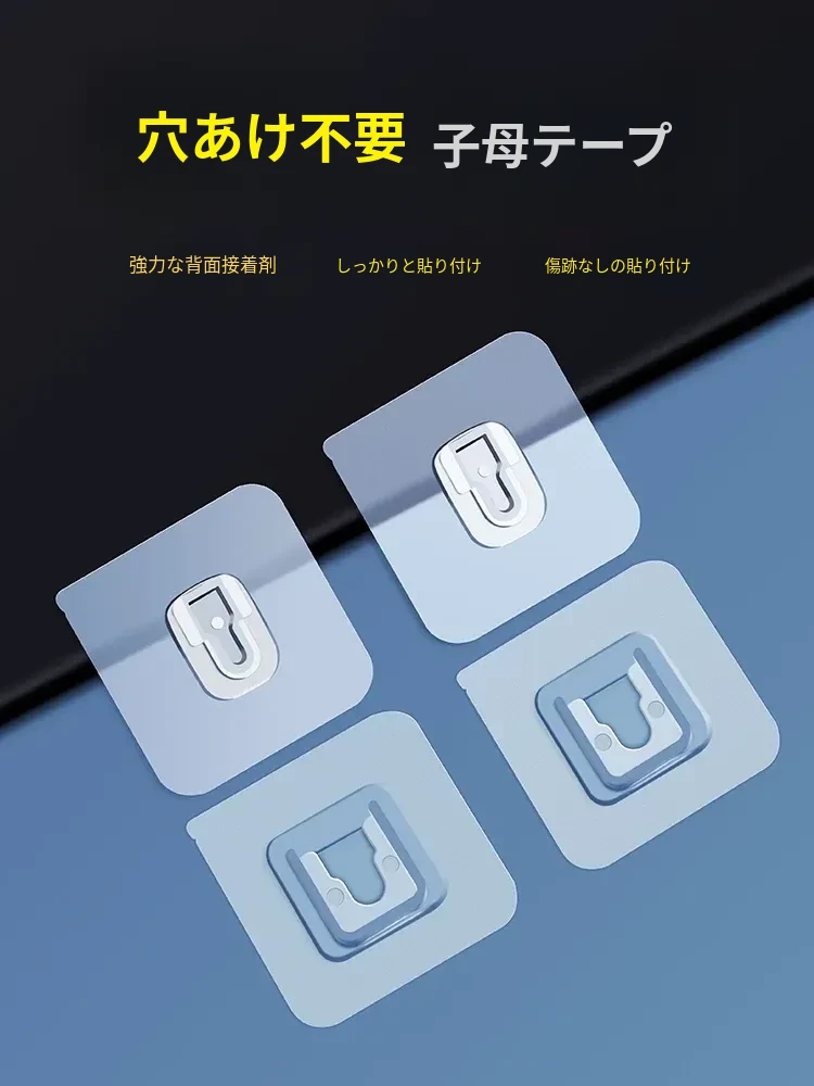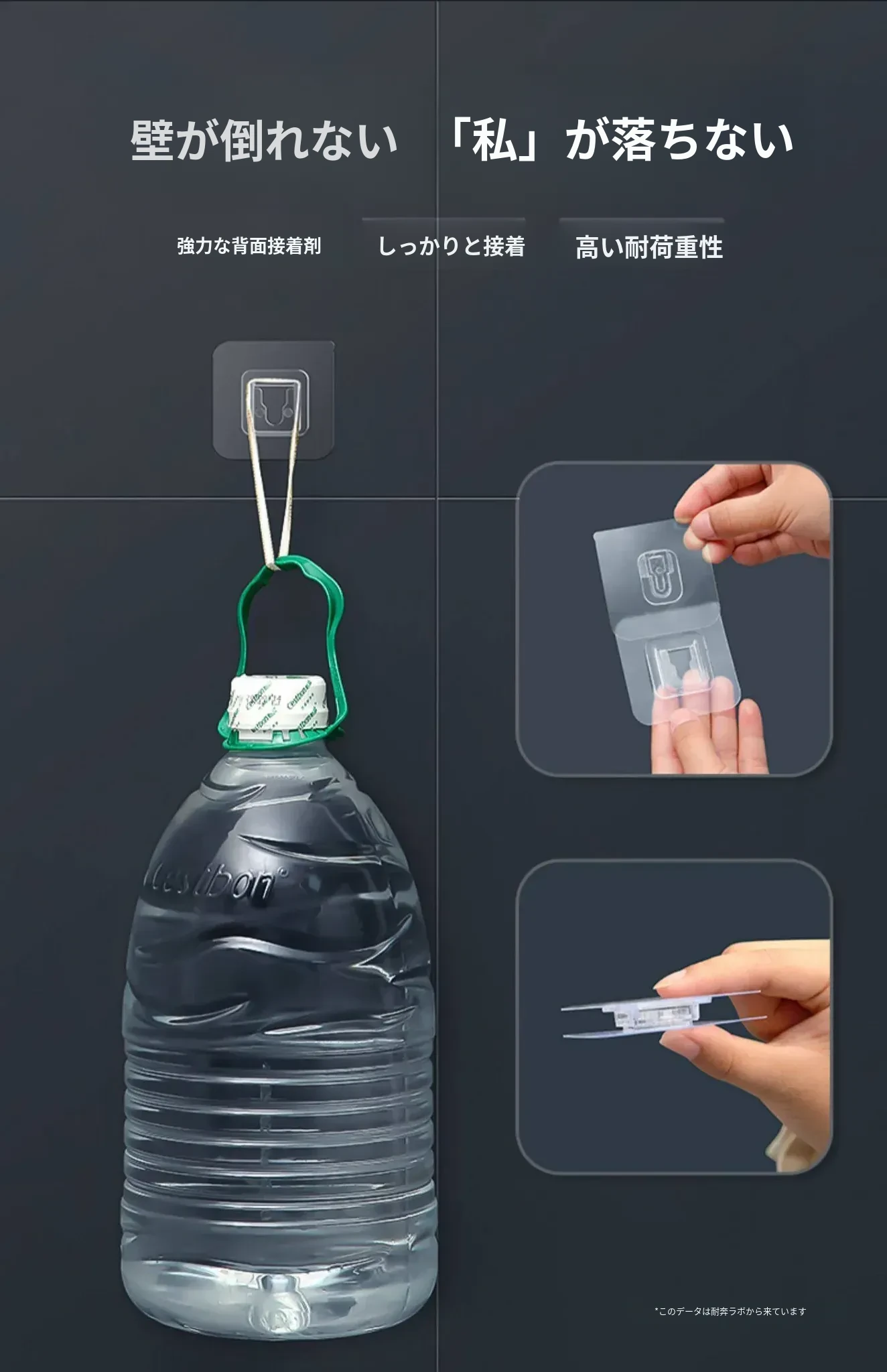穴あけ不要!強力粘着フック付きマザーボタン&子ボタンセット - 無痕で簡単取り付け、透明プラスチック製で目立たず、しっかり固定できます。お部屋の整理整頓に最適!
