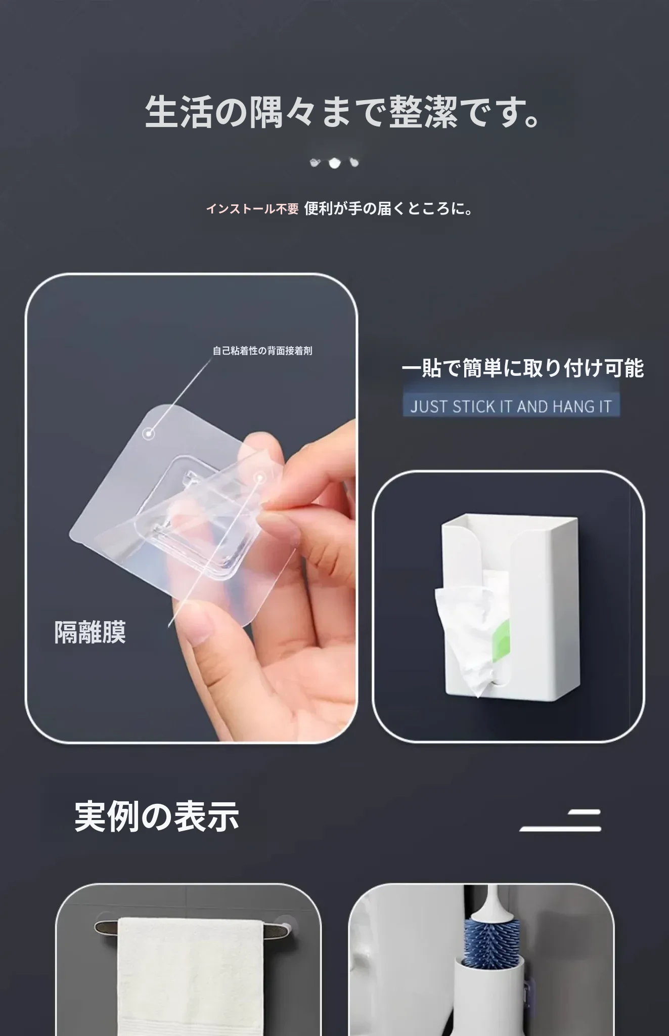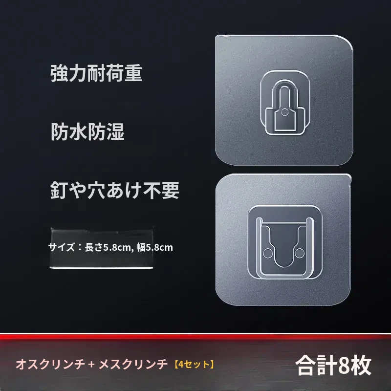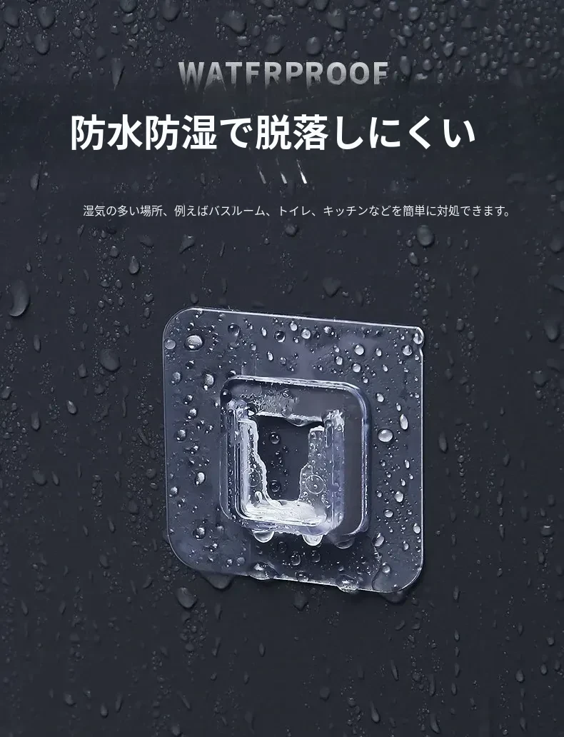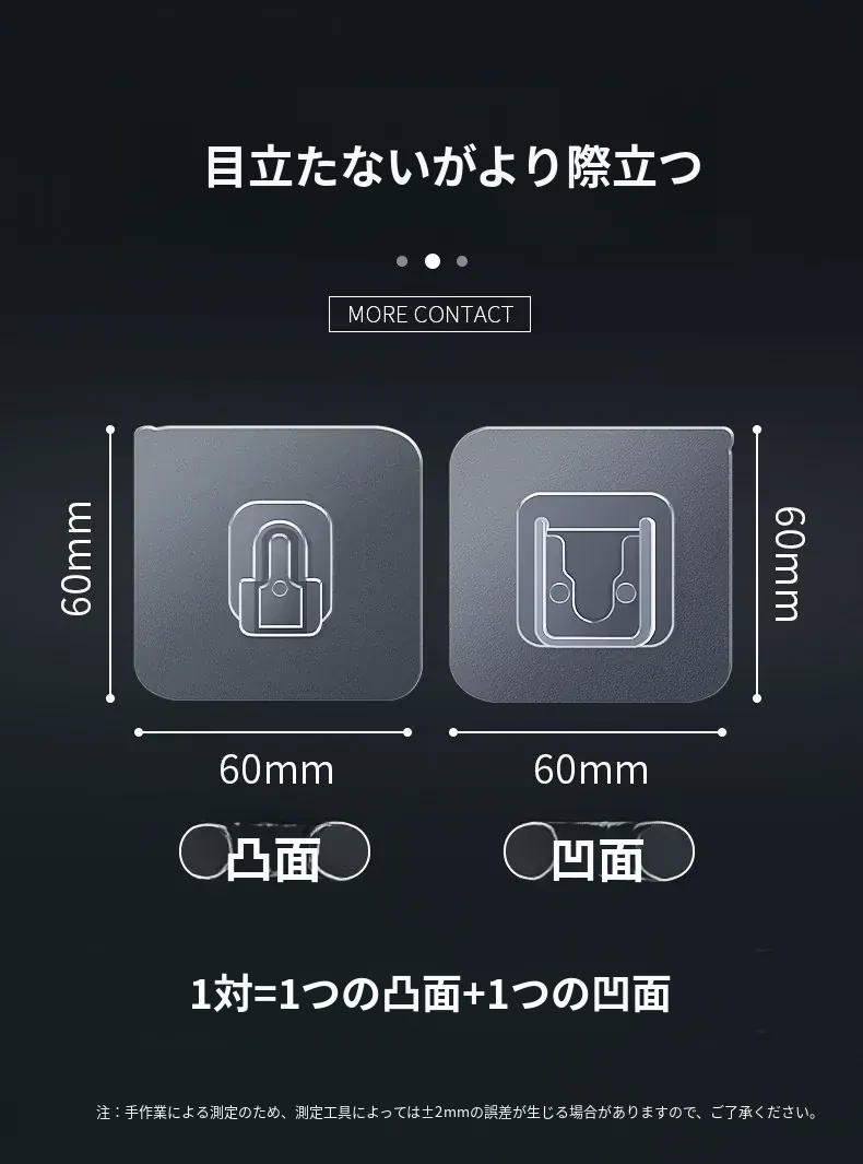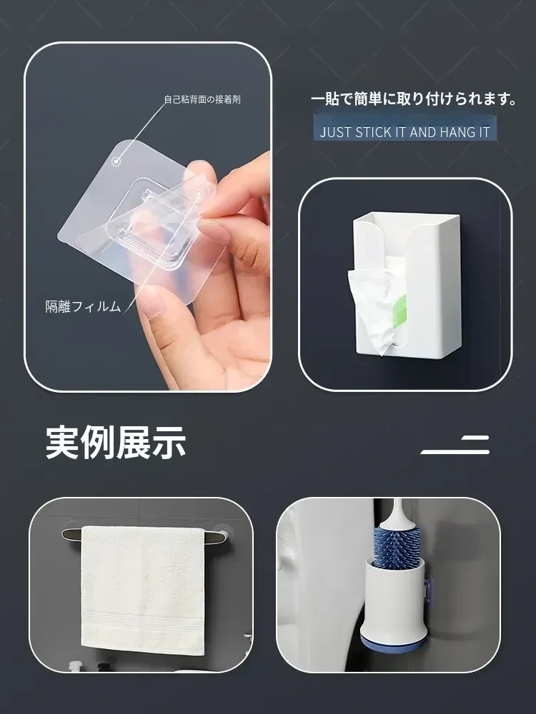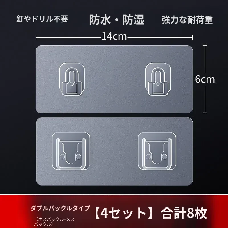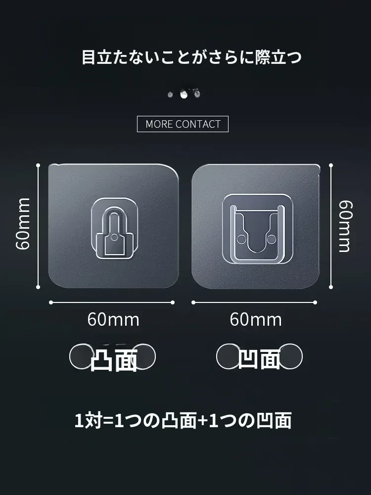 穴あけ不要!強力粘着フック付きマザーボタン&子ボタンセット - 無痕で簡単取り付け、透明プラスチック製で目立たず、しっかり固定できます。お部屋の整理整頓に最適!