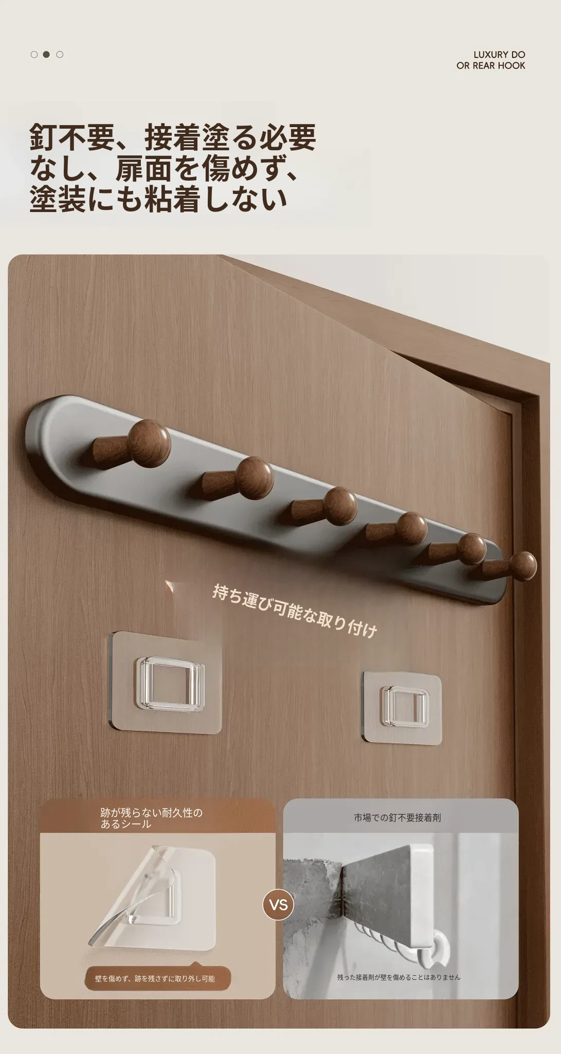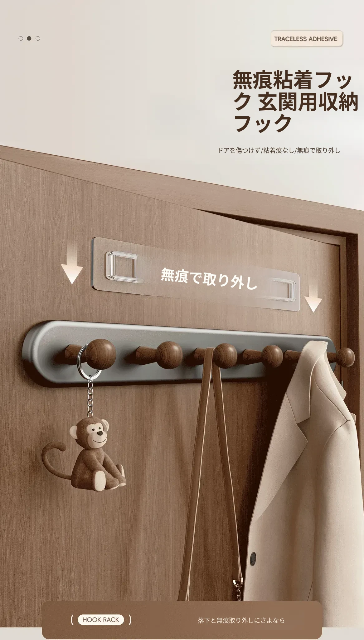 穴あき不要!強力耐荷重の壁掛けコートフック - 玄関やドアの裏に最適なバッグや鍵の収納に便利!おしゃれで機能的な収納アイテムを手に入れましょう!