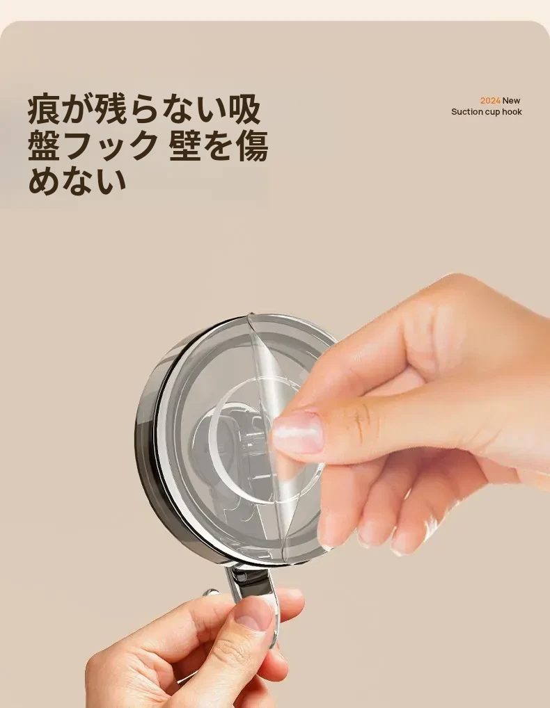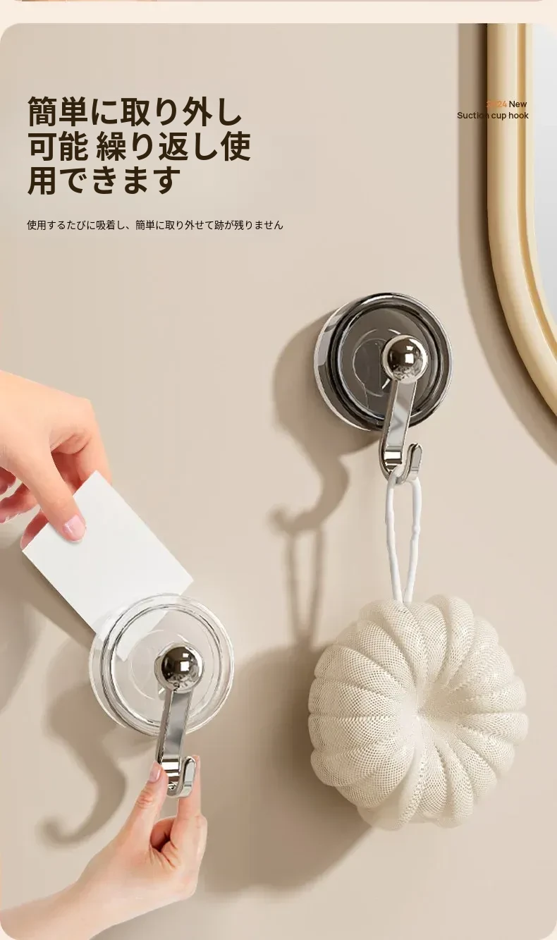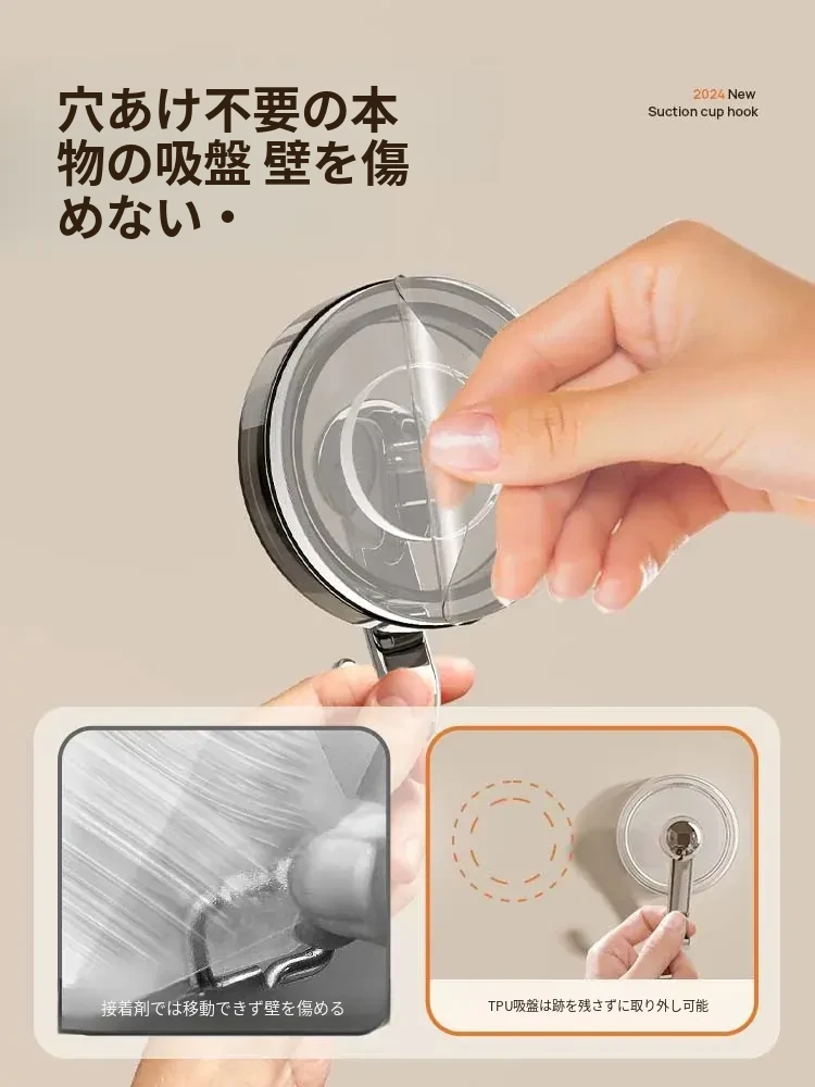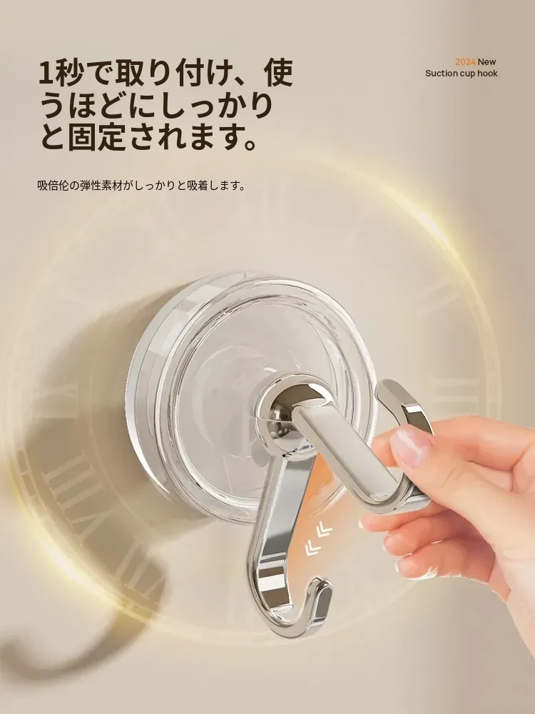 穴あけ不要!強力吸盤フック - 壁に傷をつけず、キッチンやバスルームでタオルをしっかり支える!無痕で取り外しも簡単、扉の裏にぴったりフィットする便利な掛け具。