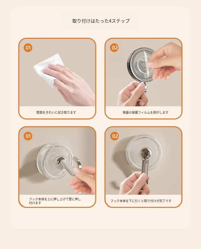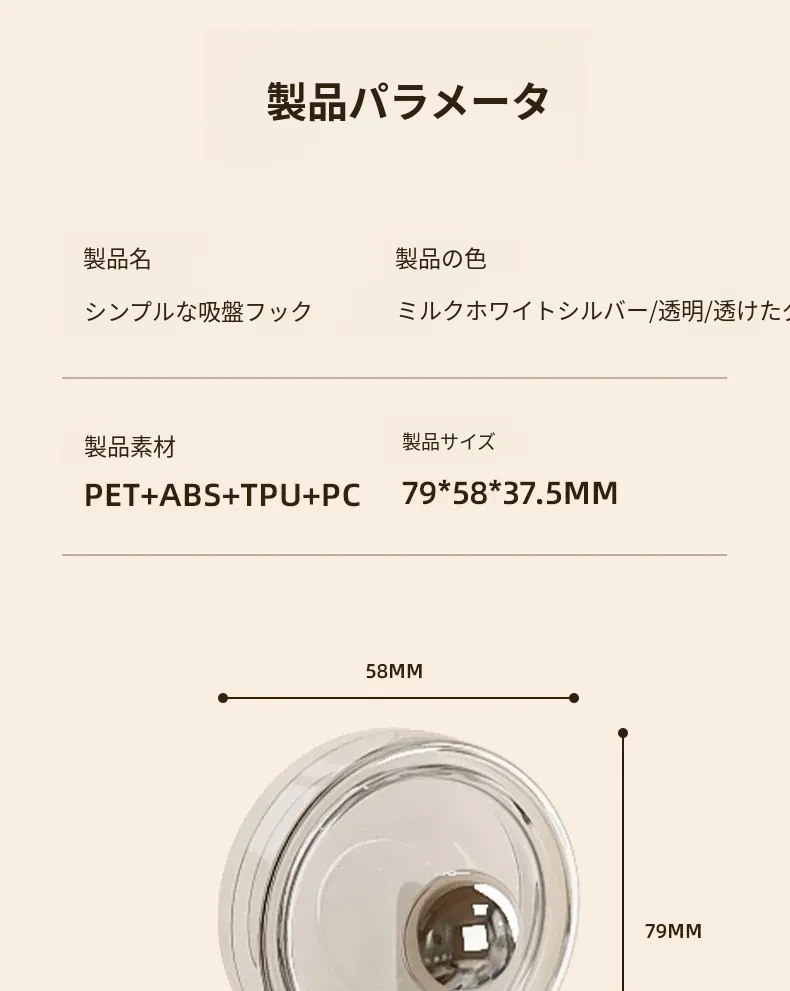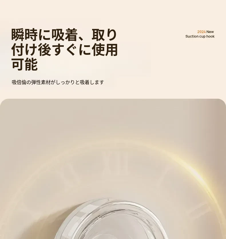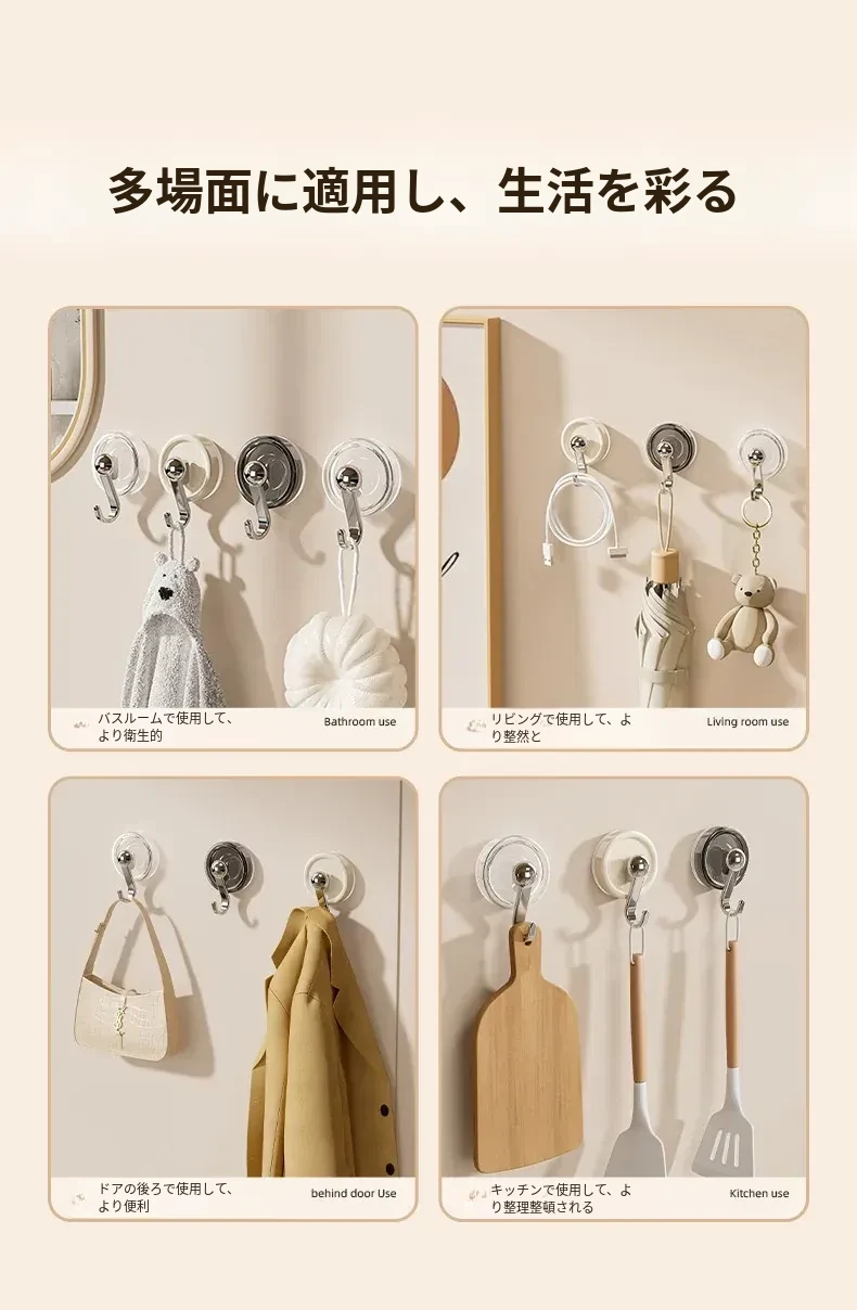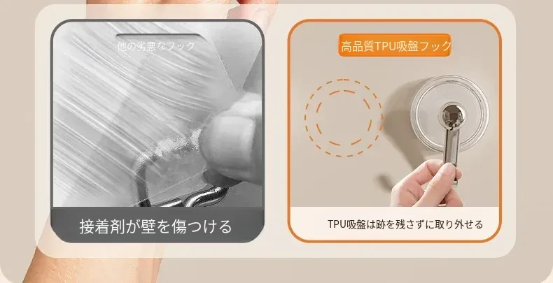 穴あけ不要!強力吸盤フック - 壁に傷をつけず、キッチンやバスルームでタオルをしっかり支える!無痕で取り外しも簡単、扉の裏にぴったりフィットする便利な掛け具。