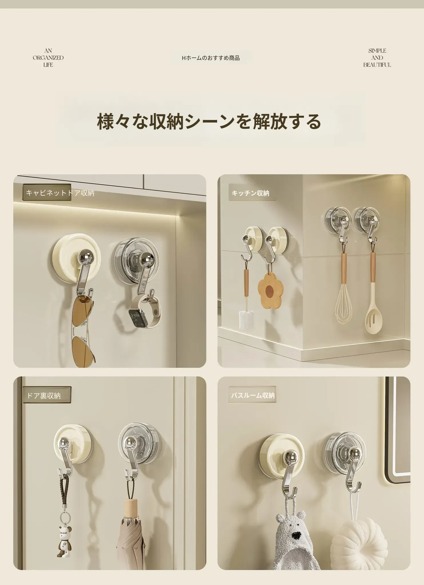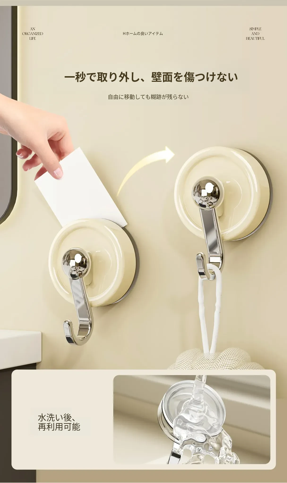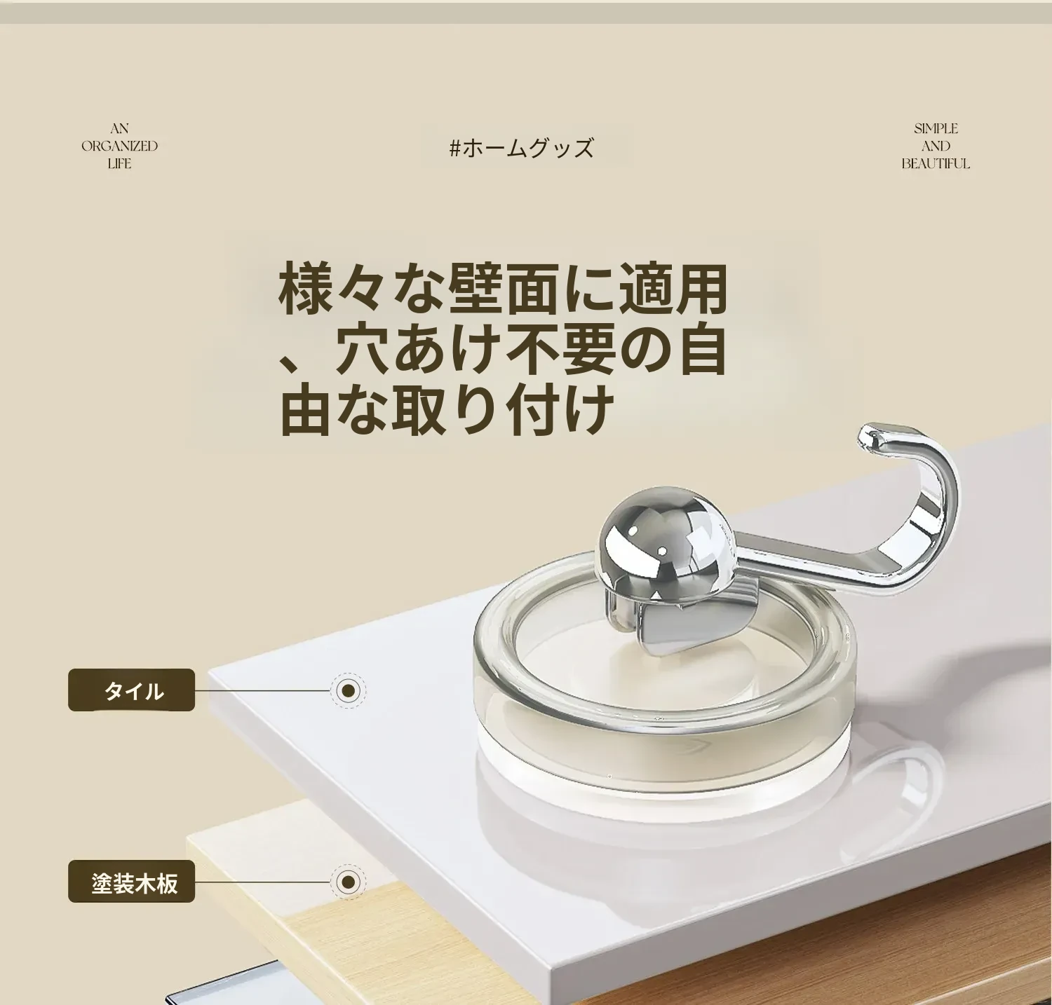 穴なし吸盤フック - 強力な耐荷重で真空固定!キッチンやバスルーム、トイレのドア裏、壁に最適な無痕タオルフック。あなたの生活空間をすっきり整理!