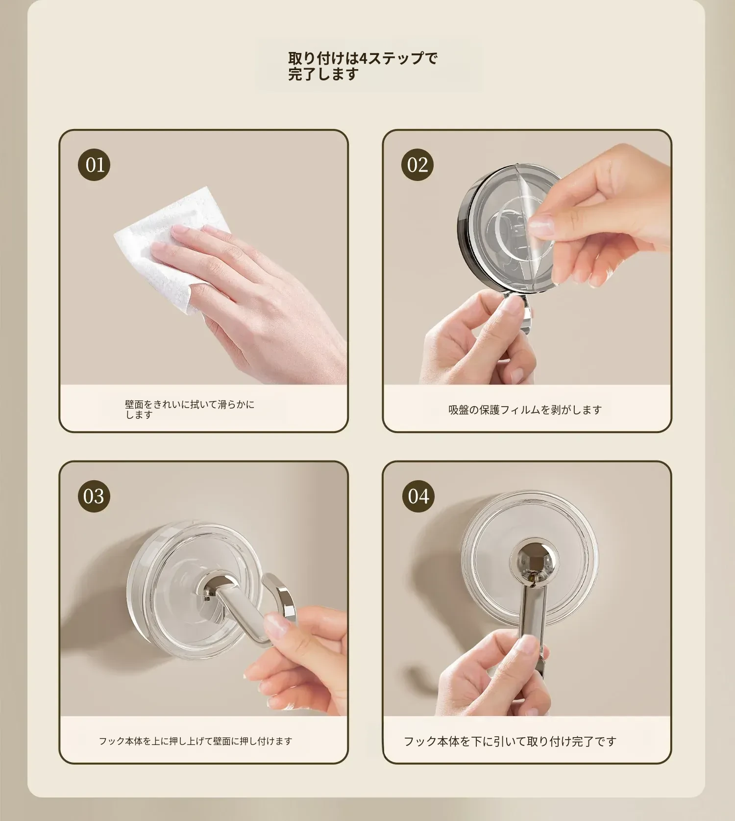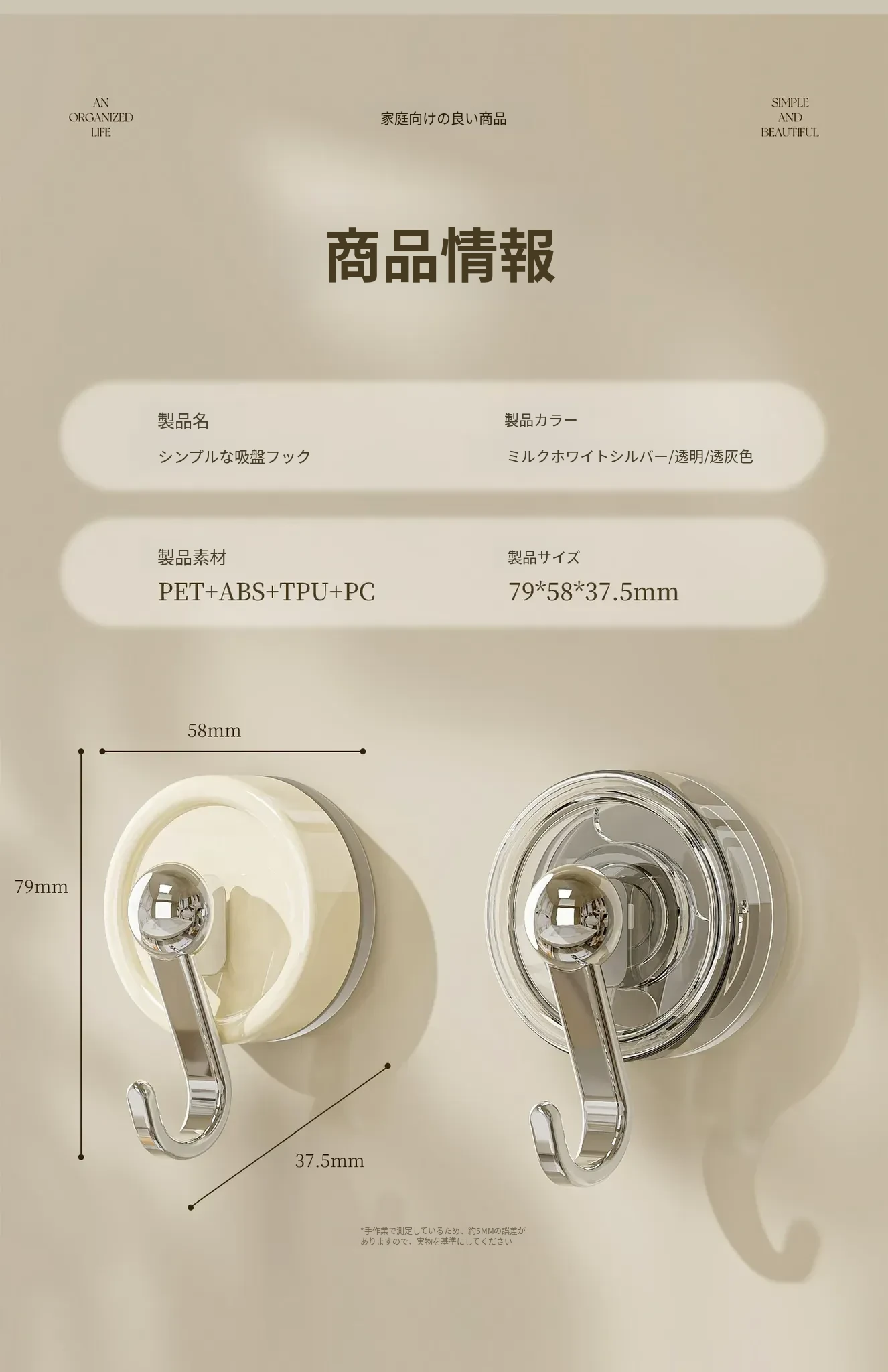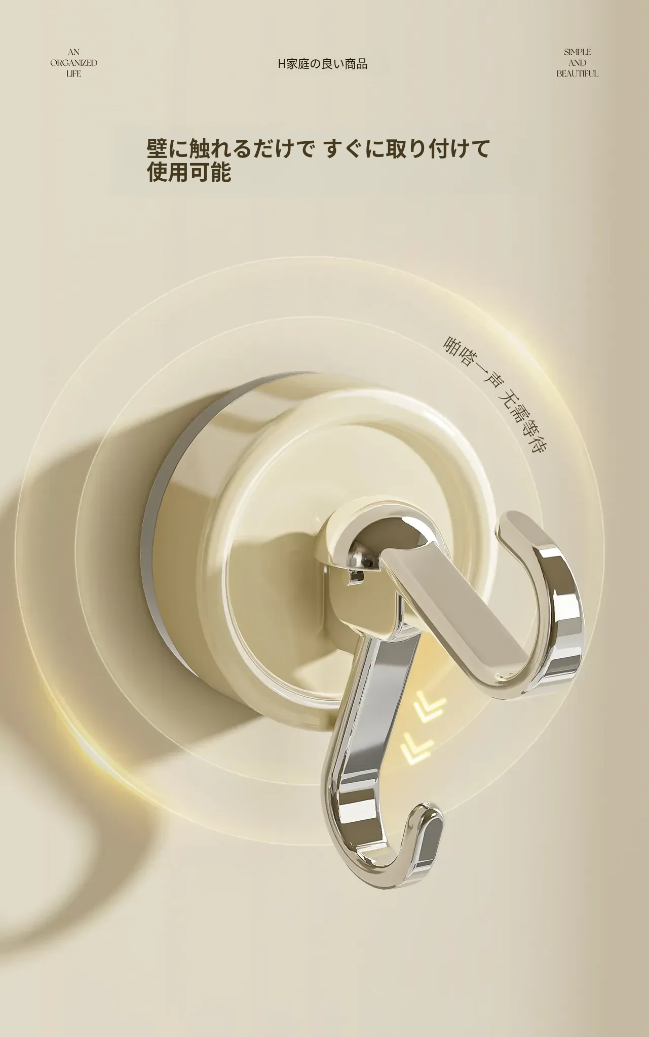 穴なし吸盤フック - 強力な耐荷重で真空固定!キッチンやバスルーム、トイレのドア裏、壁に最適な無痕タオルフック。あなたの生活空間をすっきり整理!