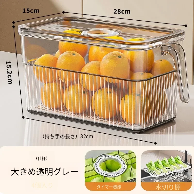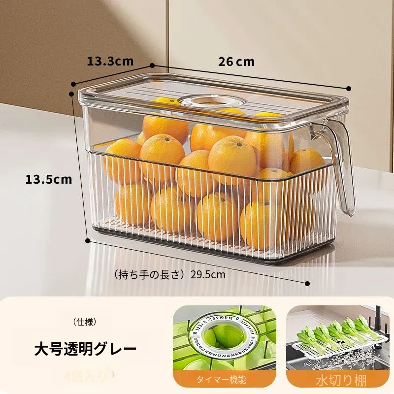 大号-4.5【四個透明グレー】-無臭⭐水切り板付き⭐
