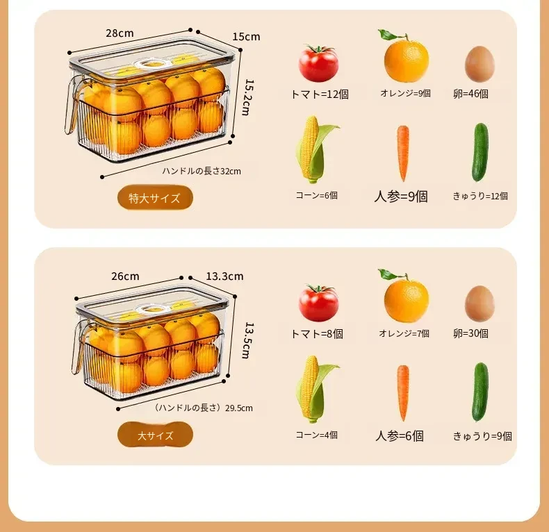 食品グレードの冷凍保存ボックス - 野菜や卵専用の密閉型整理ボックス!冷蔵庫をスッキリ整理し、新鮮さをキープ。果物の収納にも最適!あなたのキッチンをより便利に。
