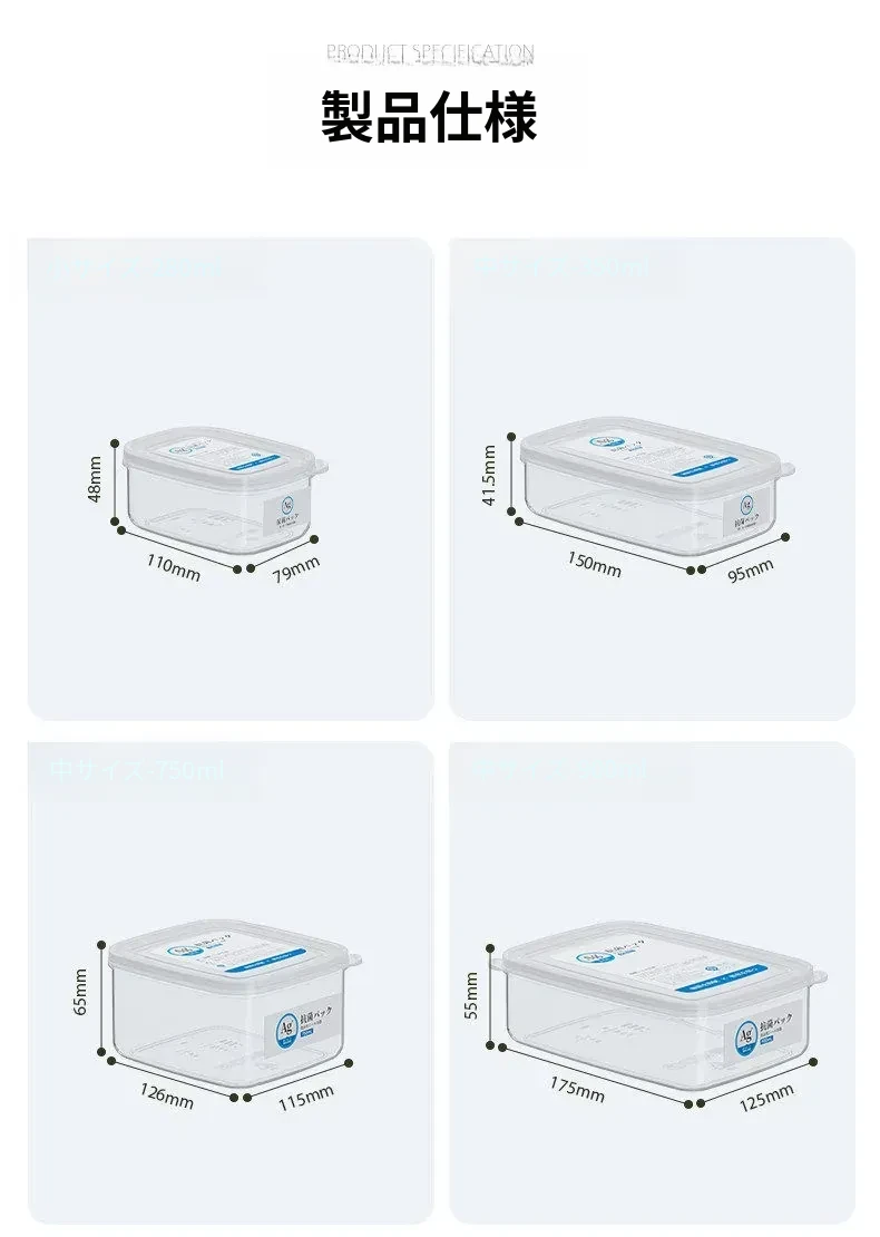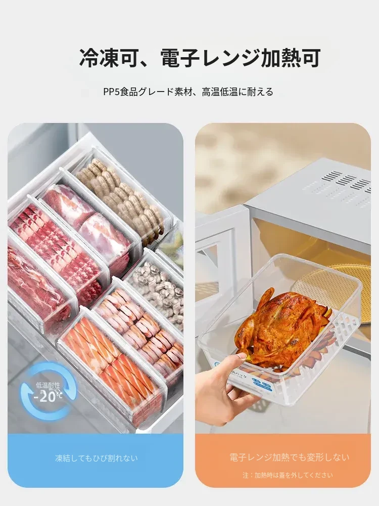 冷凍保存に最適!食品グレードの密閉収納ボックス - 野菜や食材をスッキリ整理!キッチンを美しく保つための専用収納ボックスです。あなたの食材を新鮮に保ち、無駄を省きましょう!