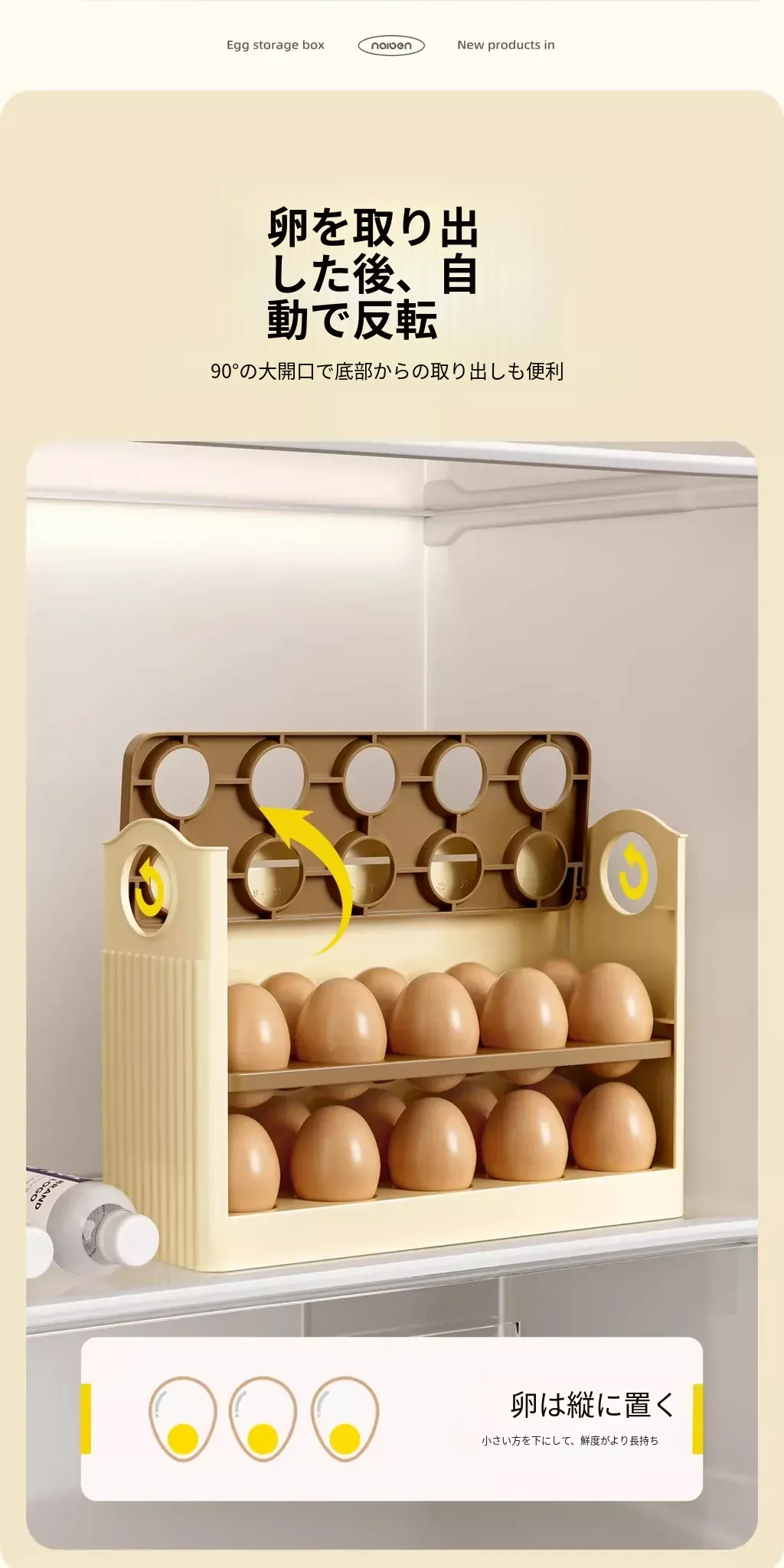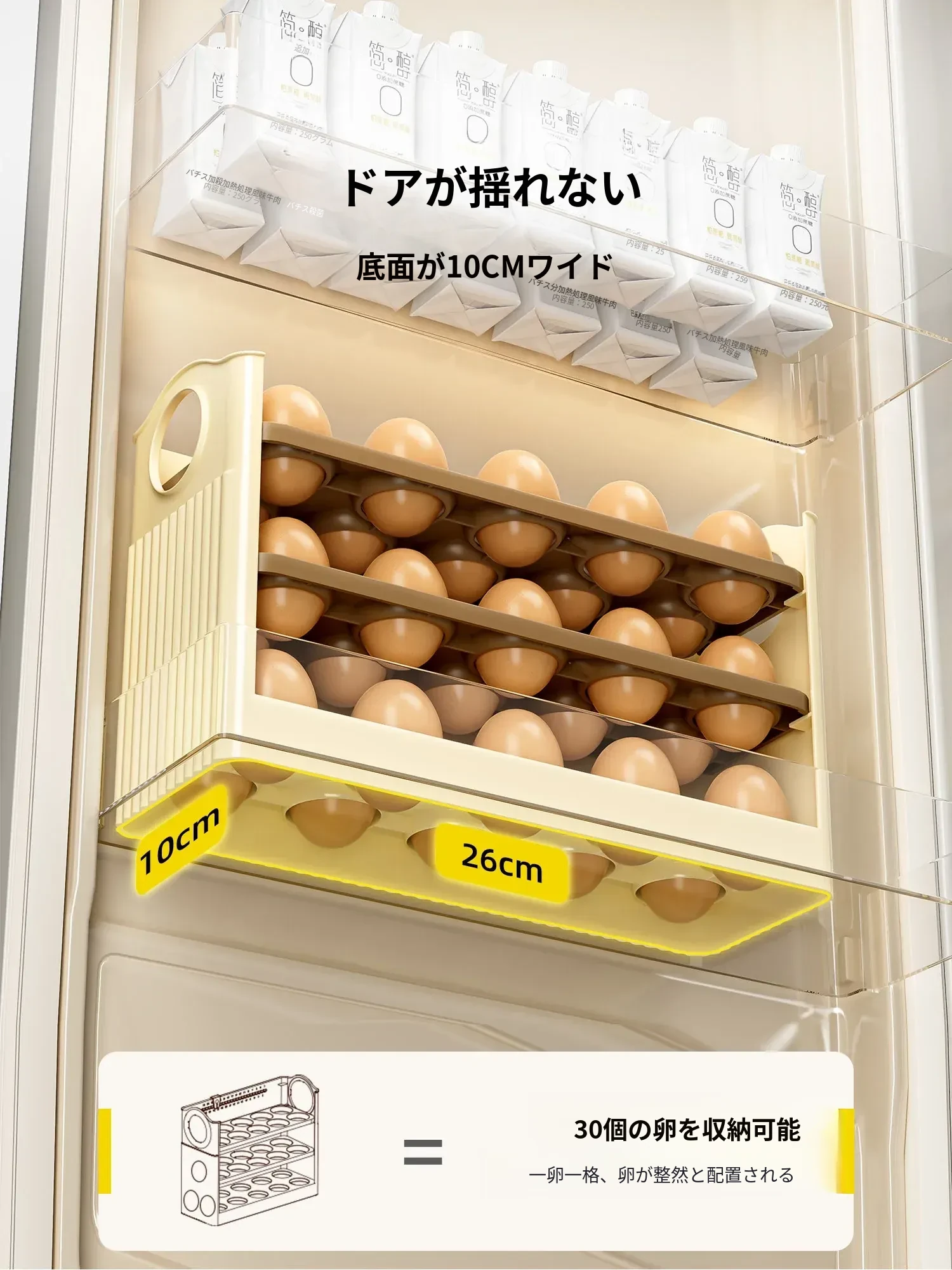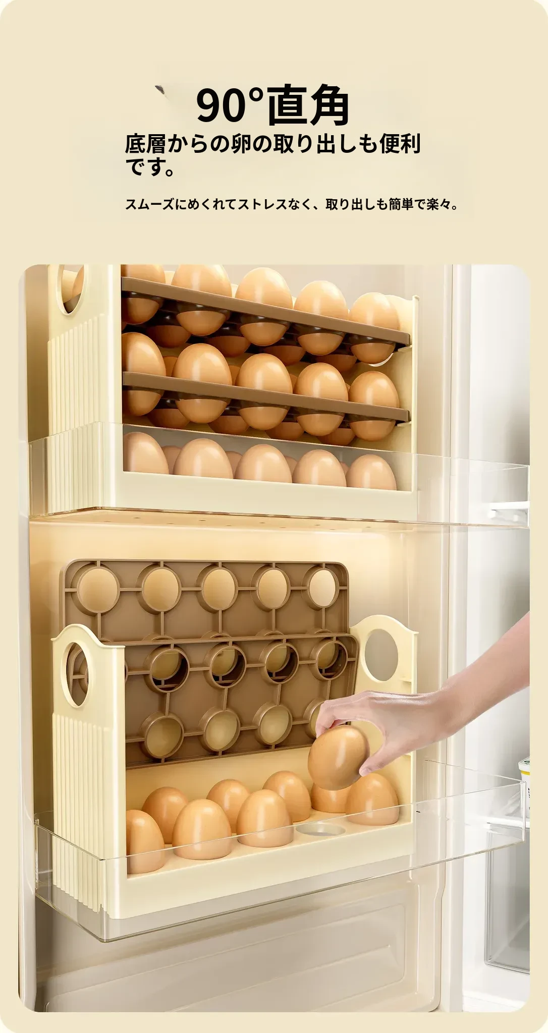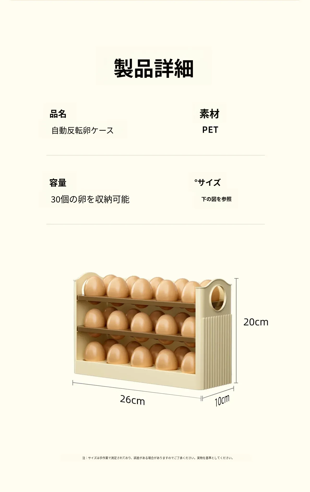 クリーム色 - 【約30個の卵収納可/自動補充】