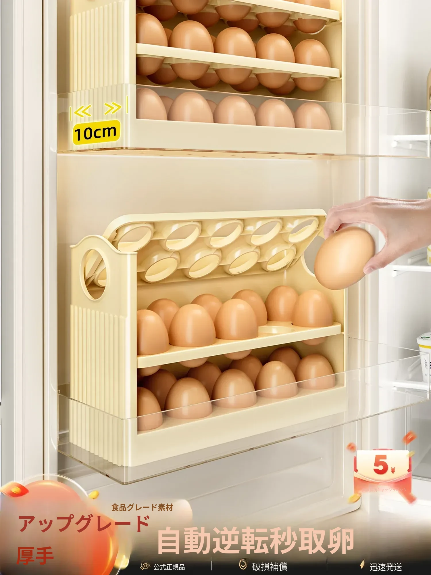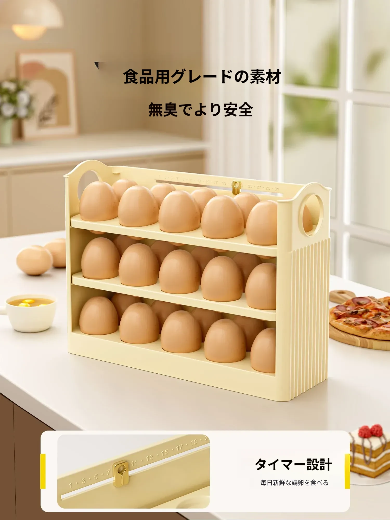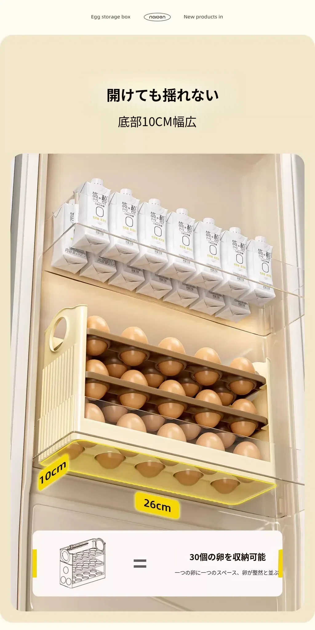 クリーム色 - 【約30個の卵収納可/自動補充】