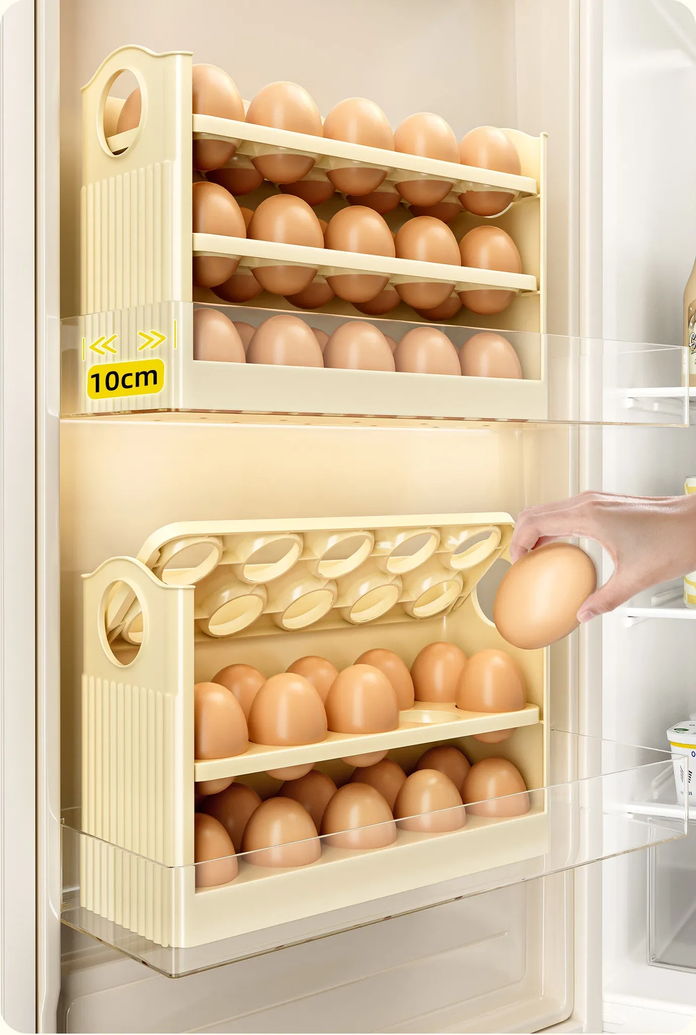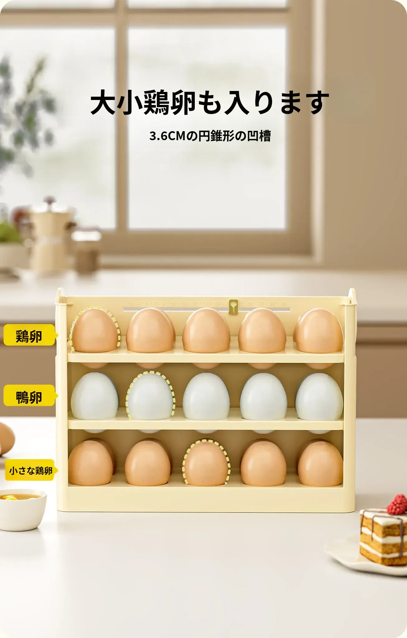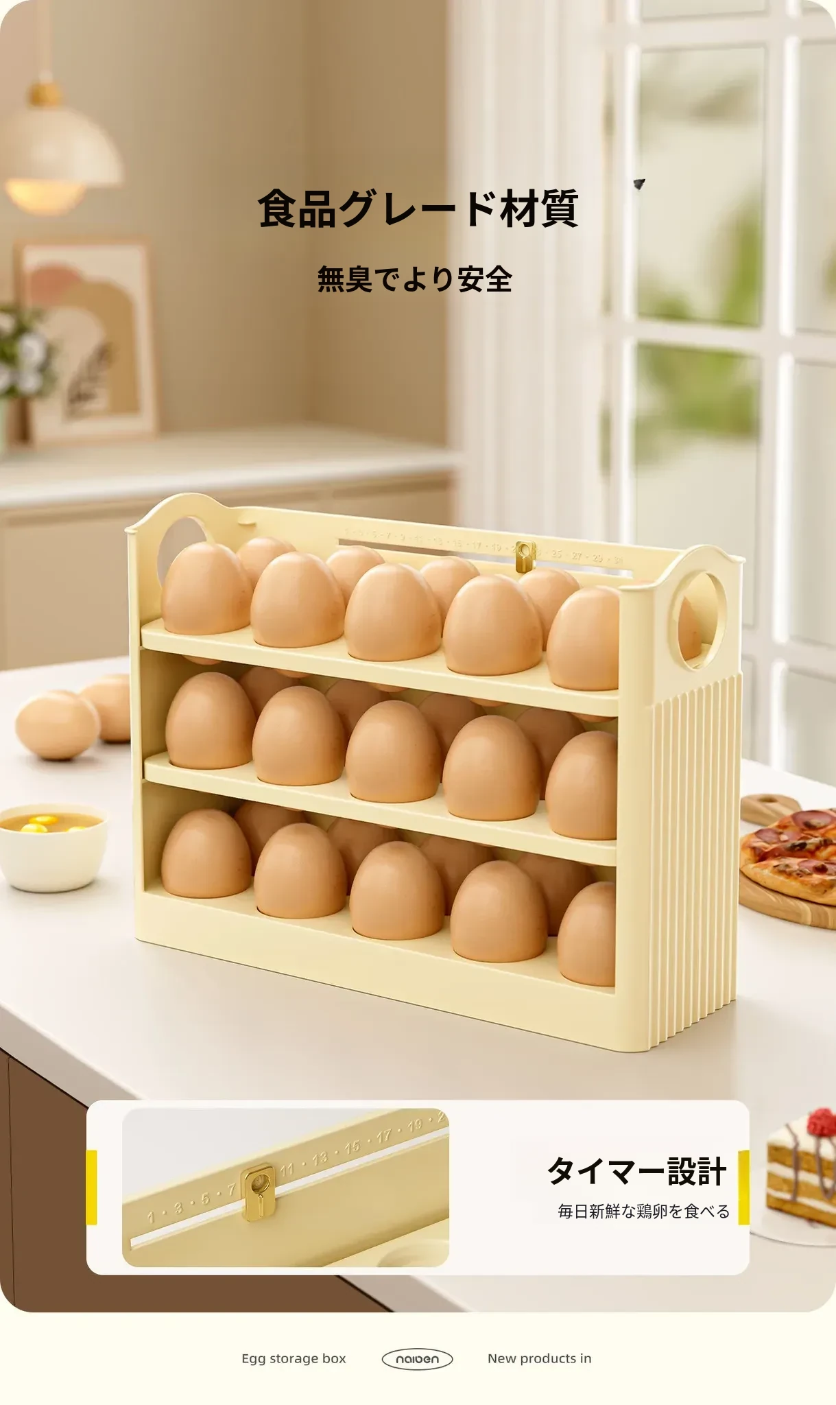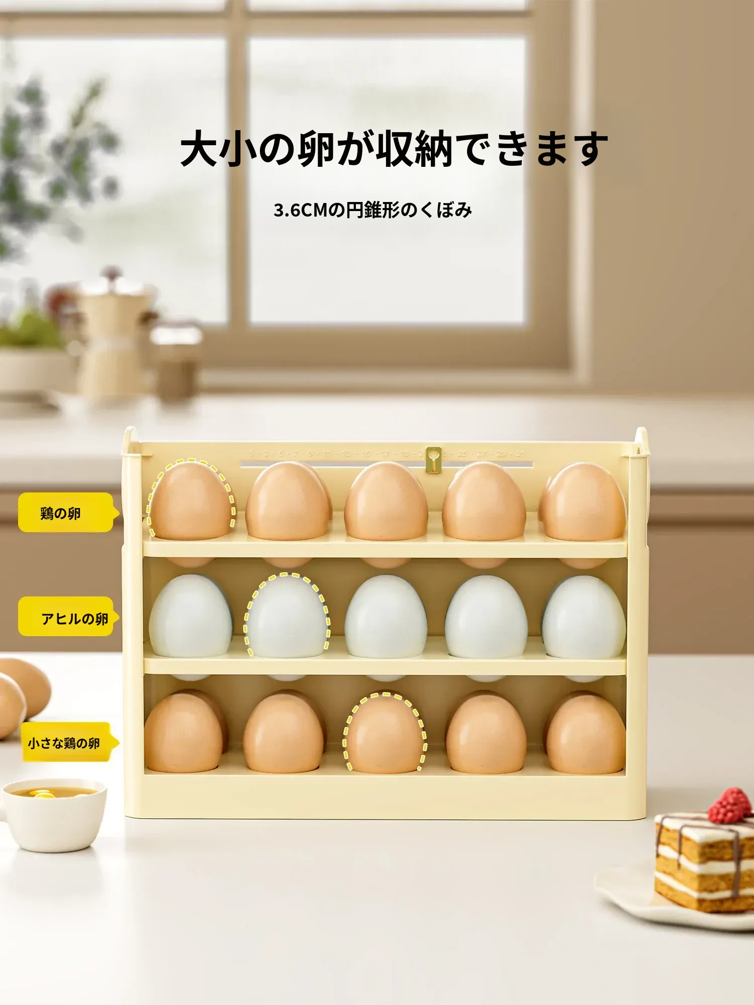 クリーム色 - 【約30個の卵収納可/自動補充】