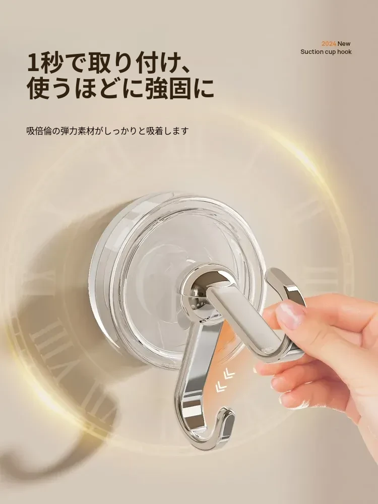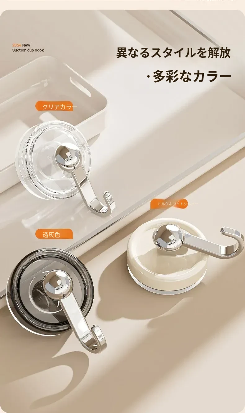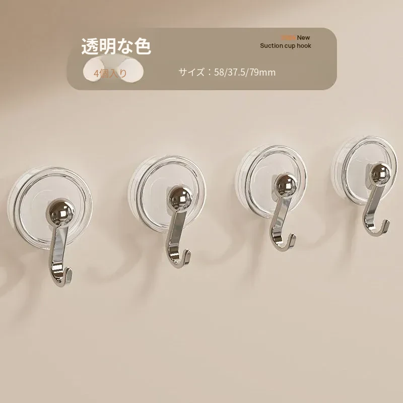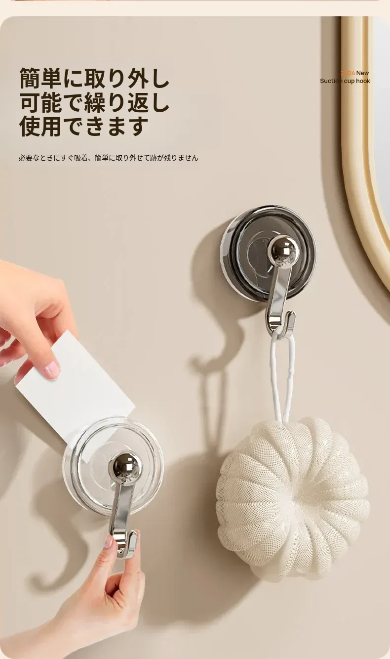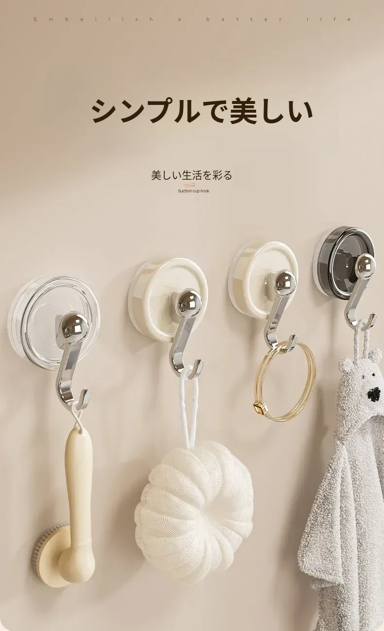 吸盤フック 強力耐荷重!穴あけ不要の真空式で壁に跡を残さず、キッチンやバスルームのタオルをスッキリ収納。ドア裏や壁面にも簡単取り付け!整理整頓を助ける便利アイテムです。