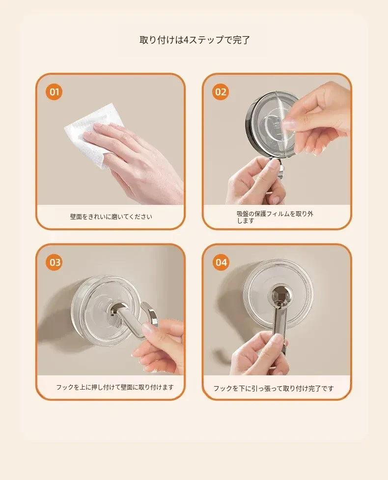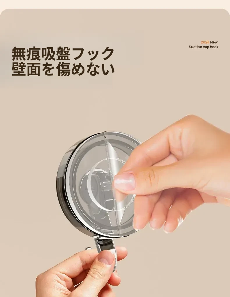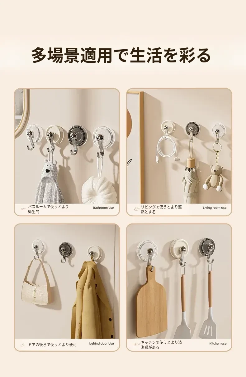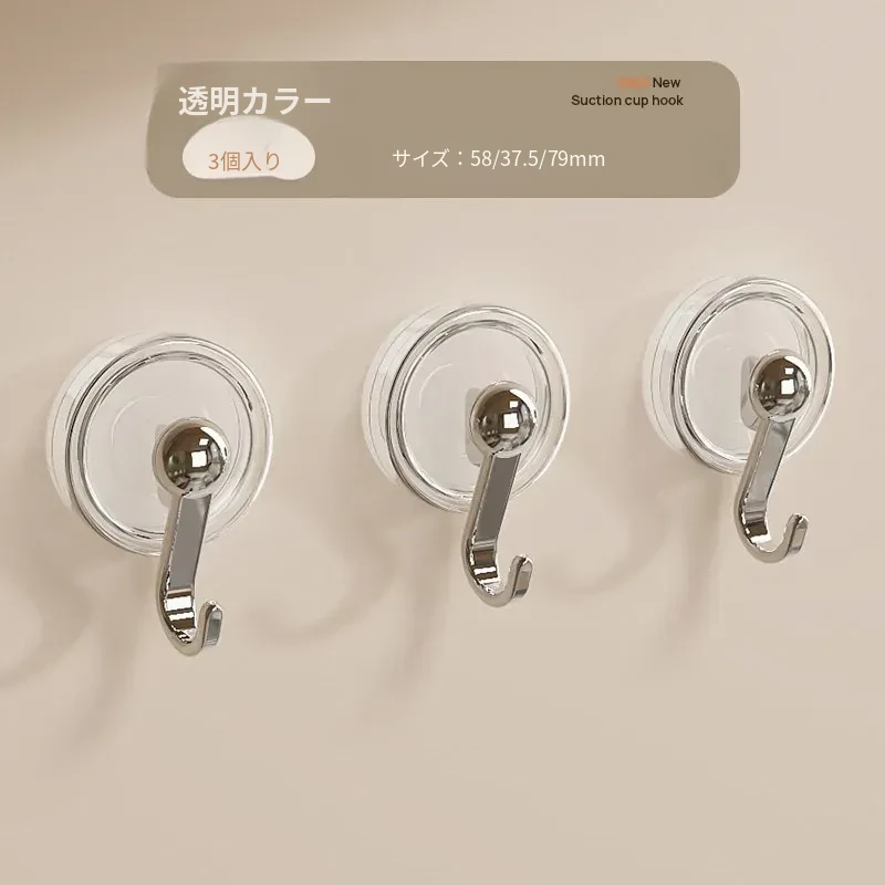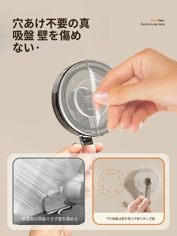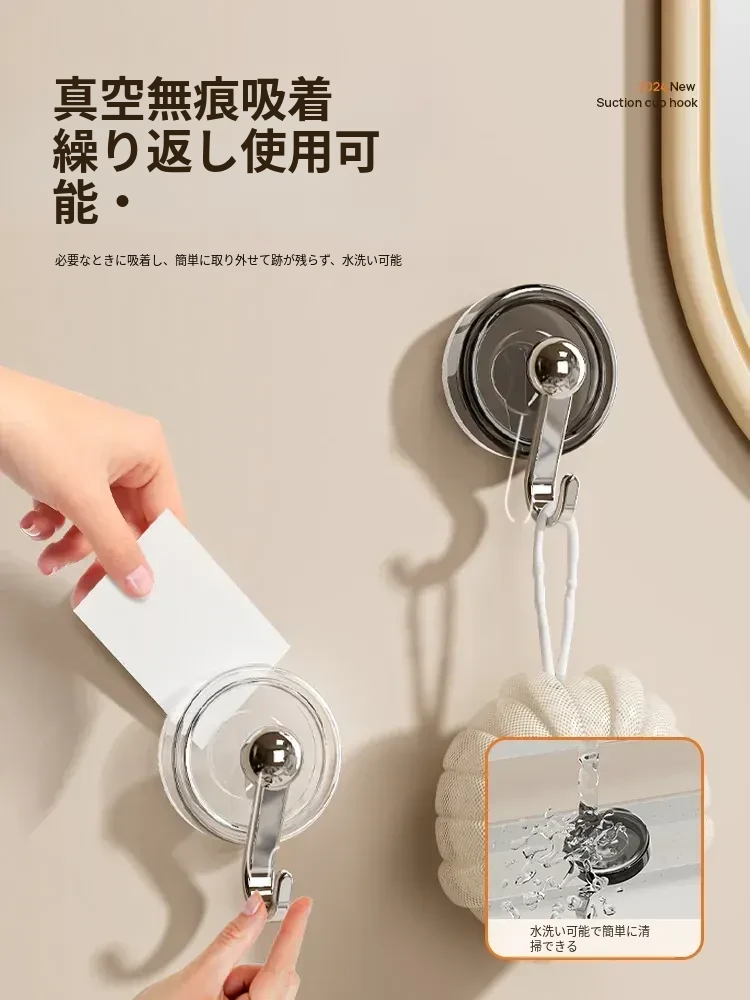吸盤フック 強力耐荷重!穴あけ不要の真空式で壁に跡を残さず、キッチンやバスルームのタオルをスッキリ収納。ドア裏や壁面にも簡単取り付け!整理整頓を助ける便利アイテムです。