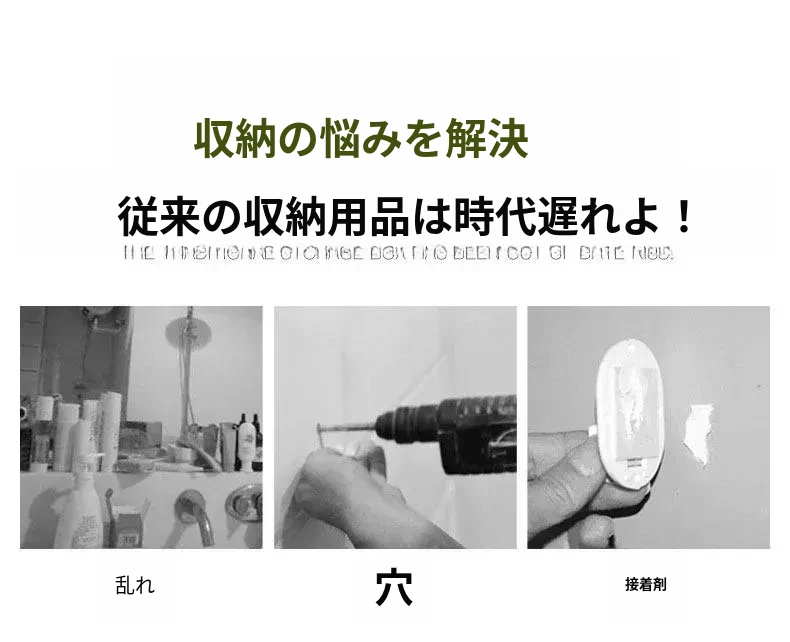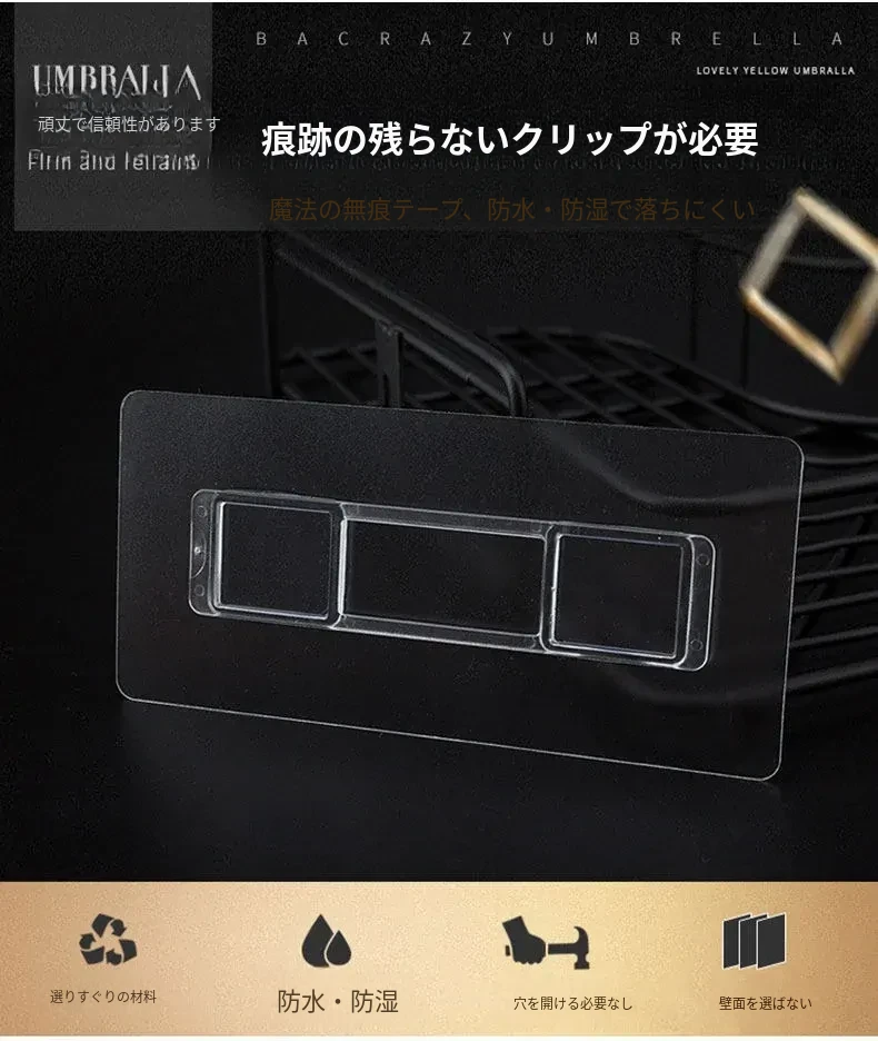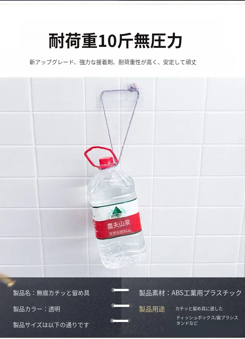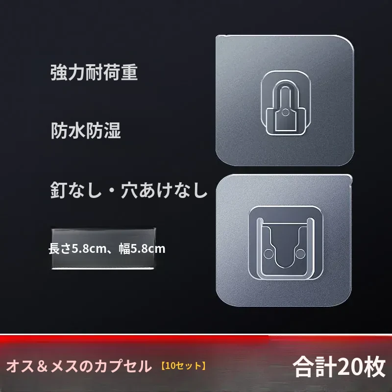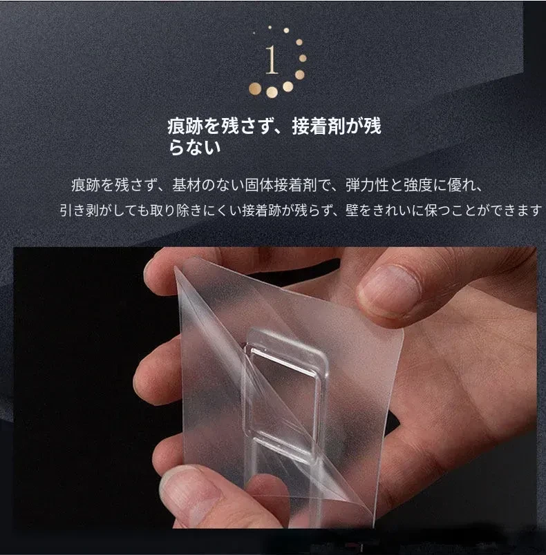 強力透明無痕フック - 穴あけ不要の壁掛け収納ラック、バスルーム用洗顔タオルボックスのアクセサリー。すっきりとしたデザインで、どんな場所にもフィットし、強力な耐荷重で安心して使用できます!
