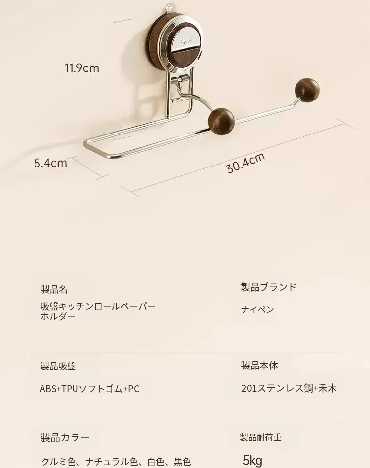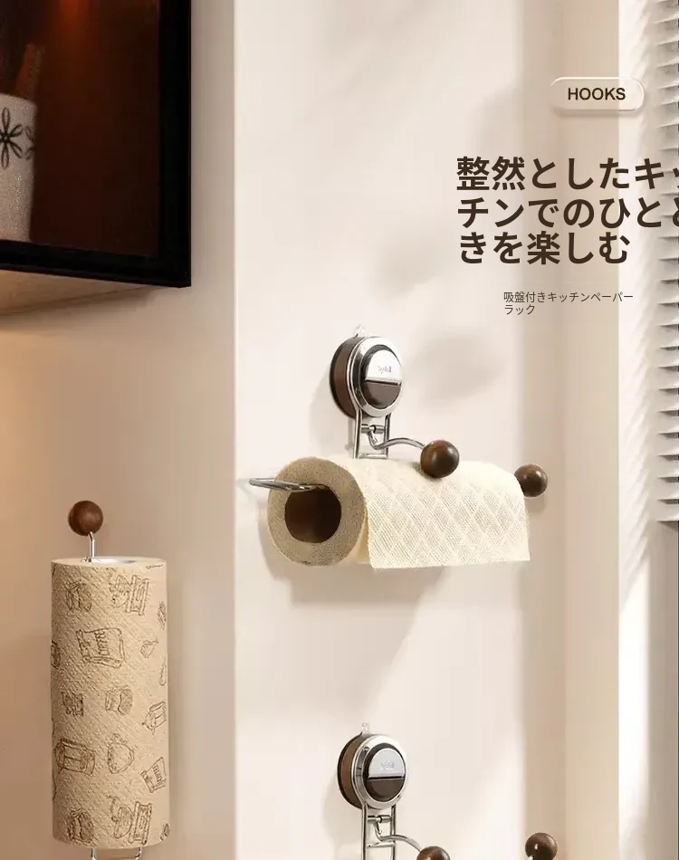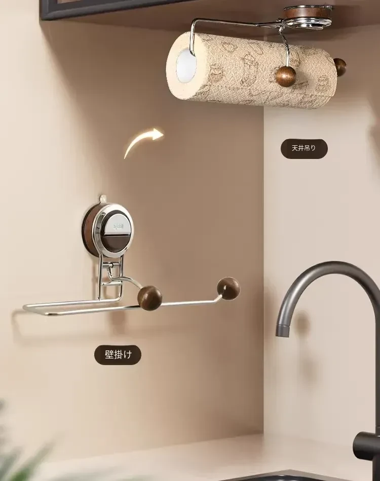 吸盤付きキッチンペーパーラック - 橱柜用収納整理、ラップ専用ホルダー!手間いらずでクリーンなキッチンを実現!便利なタオルや巻き紙の収納にも最適!