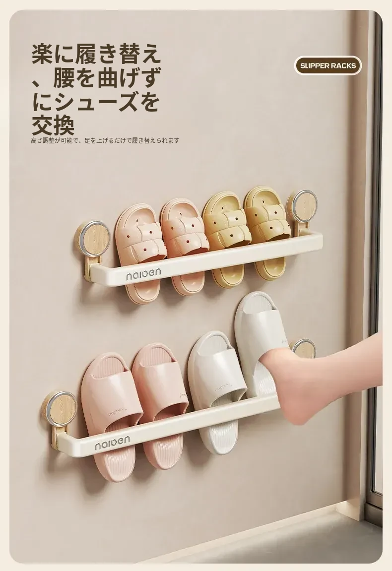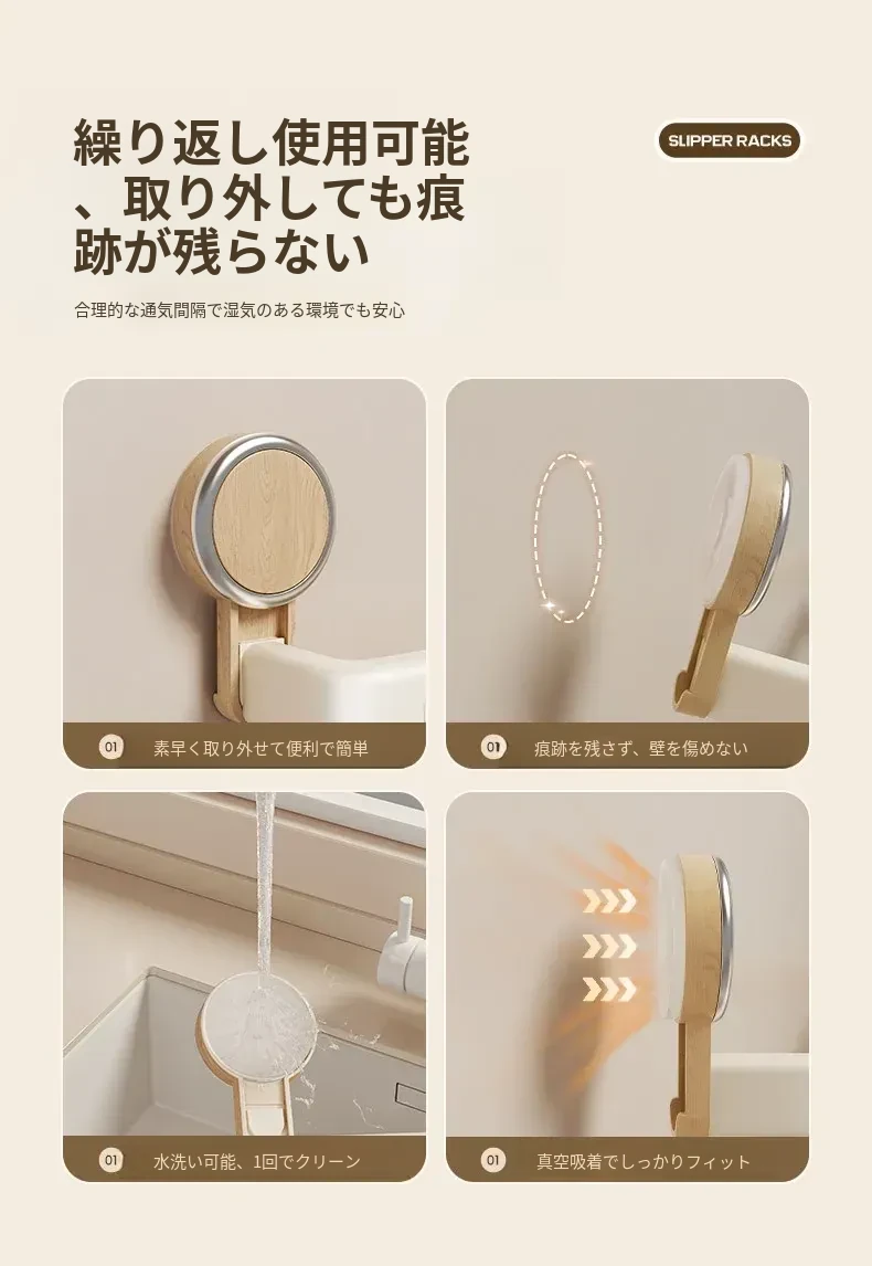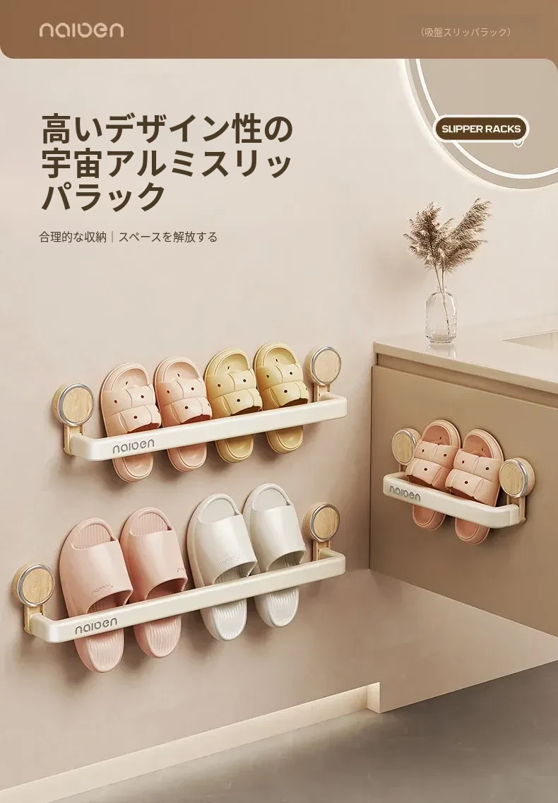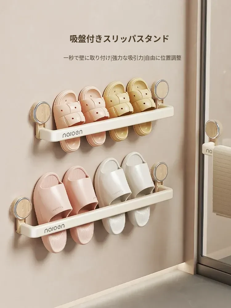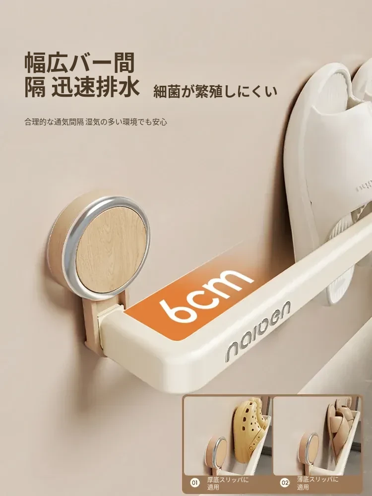 吸盤式スリッパラック - バスルーム用、簡単取り付け!水切り機能付き壁掛け収納、玄関にぴったりの便利アイテム!