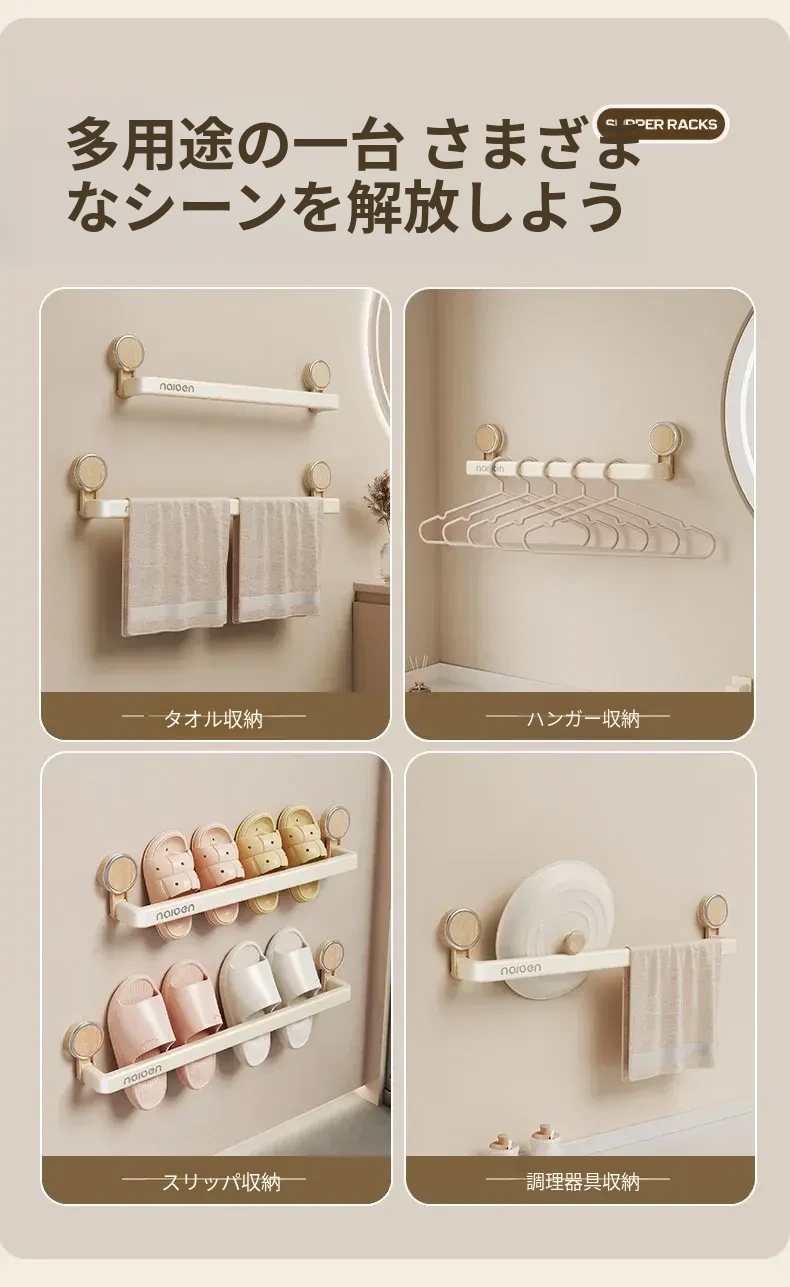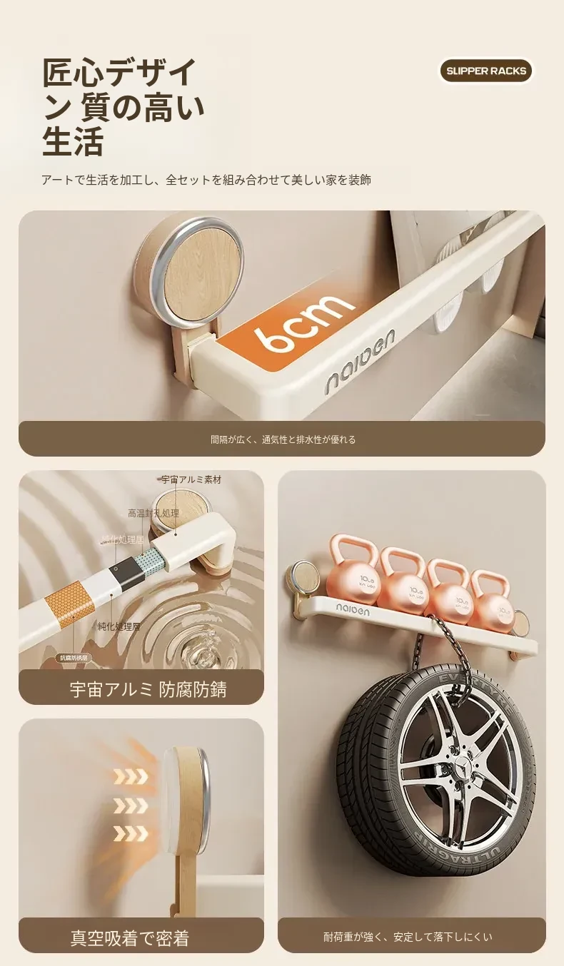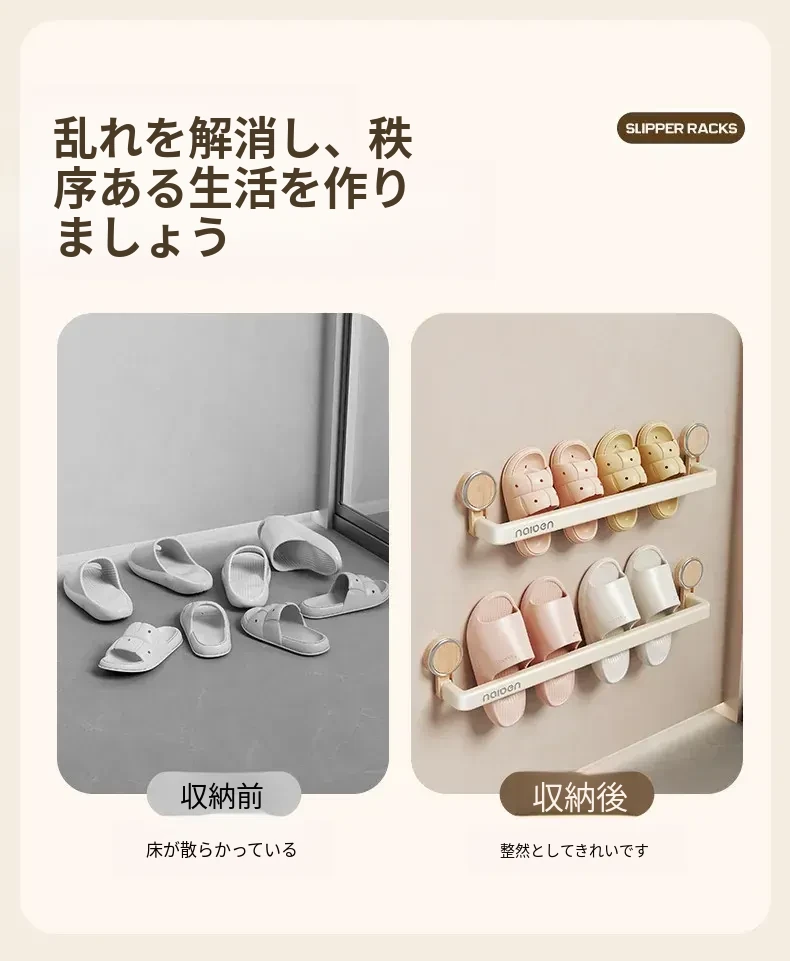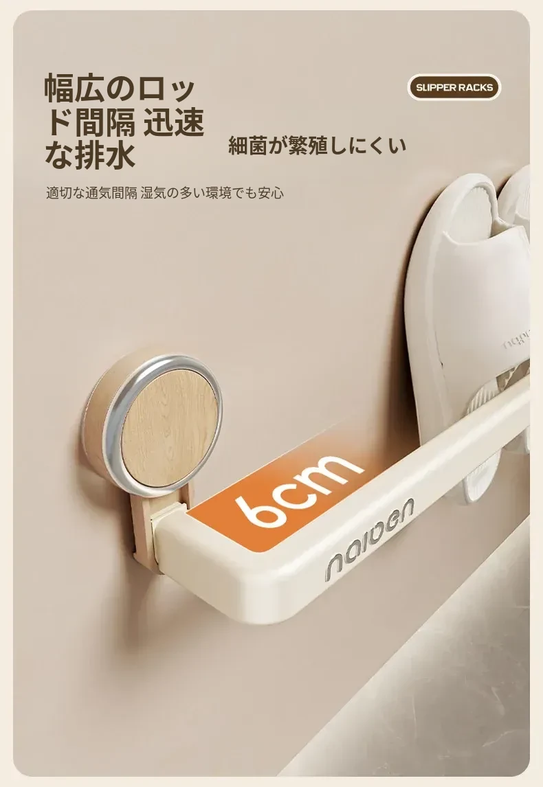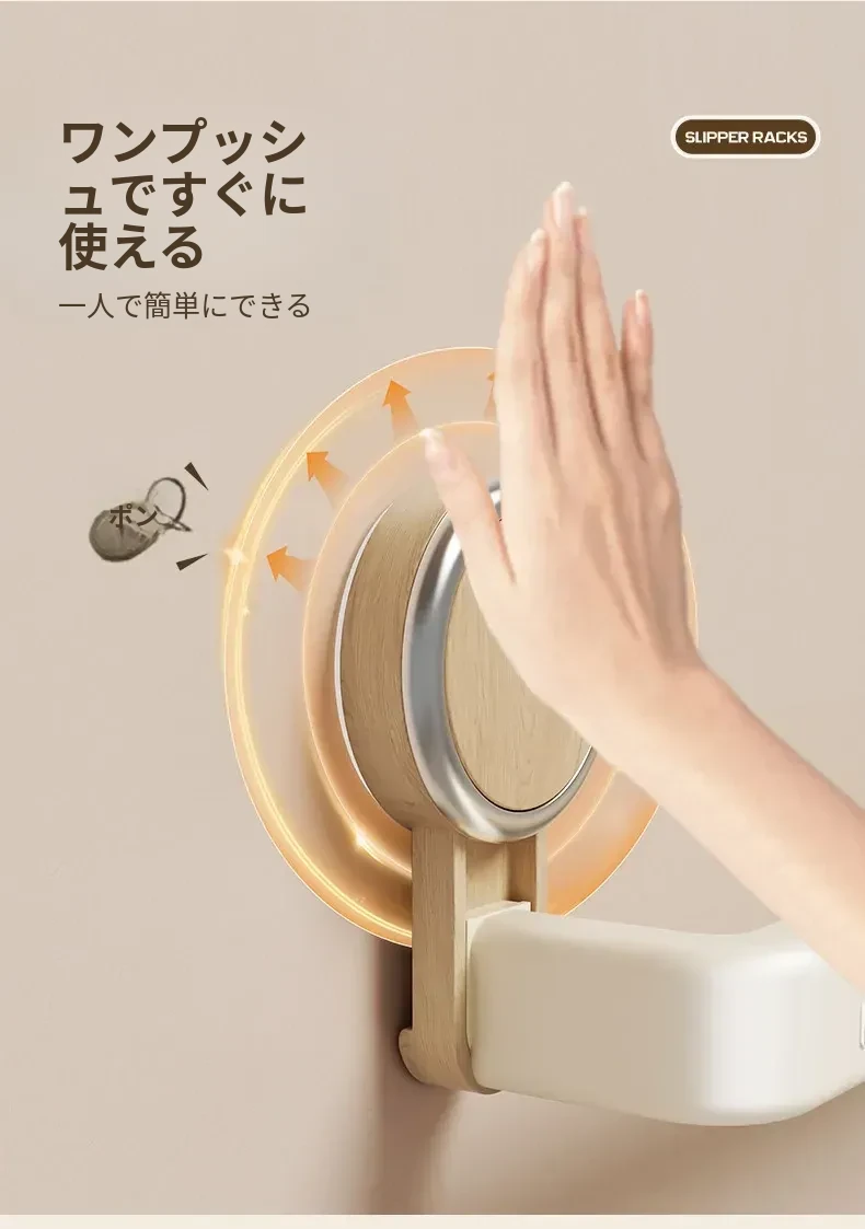 吸盤式スリッパラック - バスルーム用、簡単取り付け!水切り機能付き壁掛け収納、玄関にぴったりの便利アイテム!