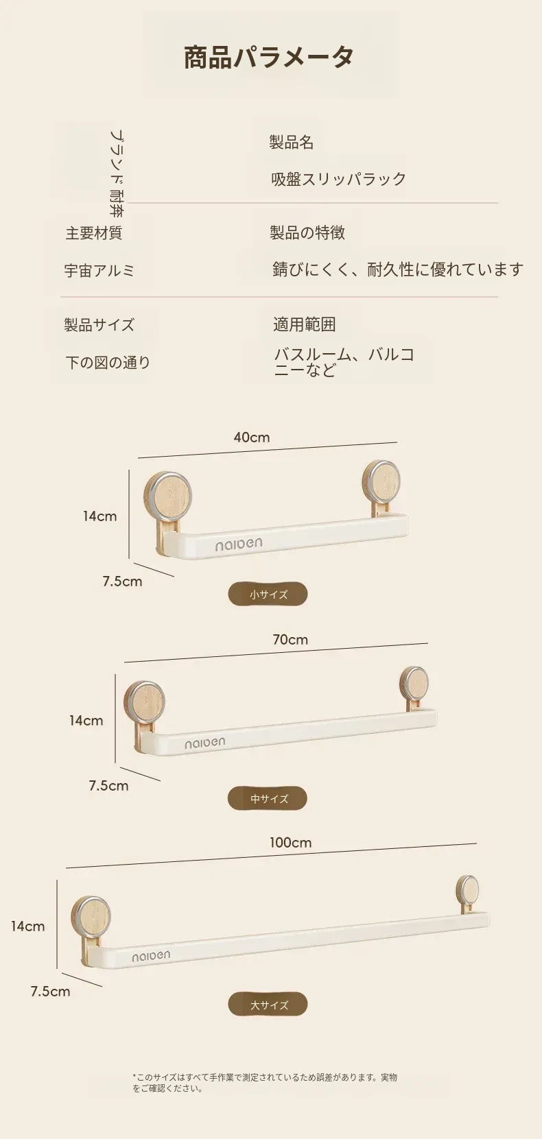 クリームホワイト40cm-吸盤付きスリッパラック【1-2足収納可能】