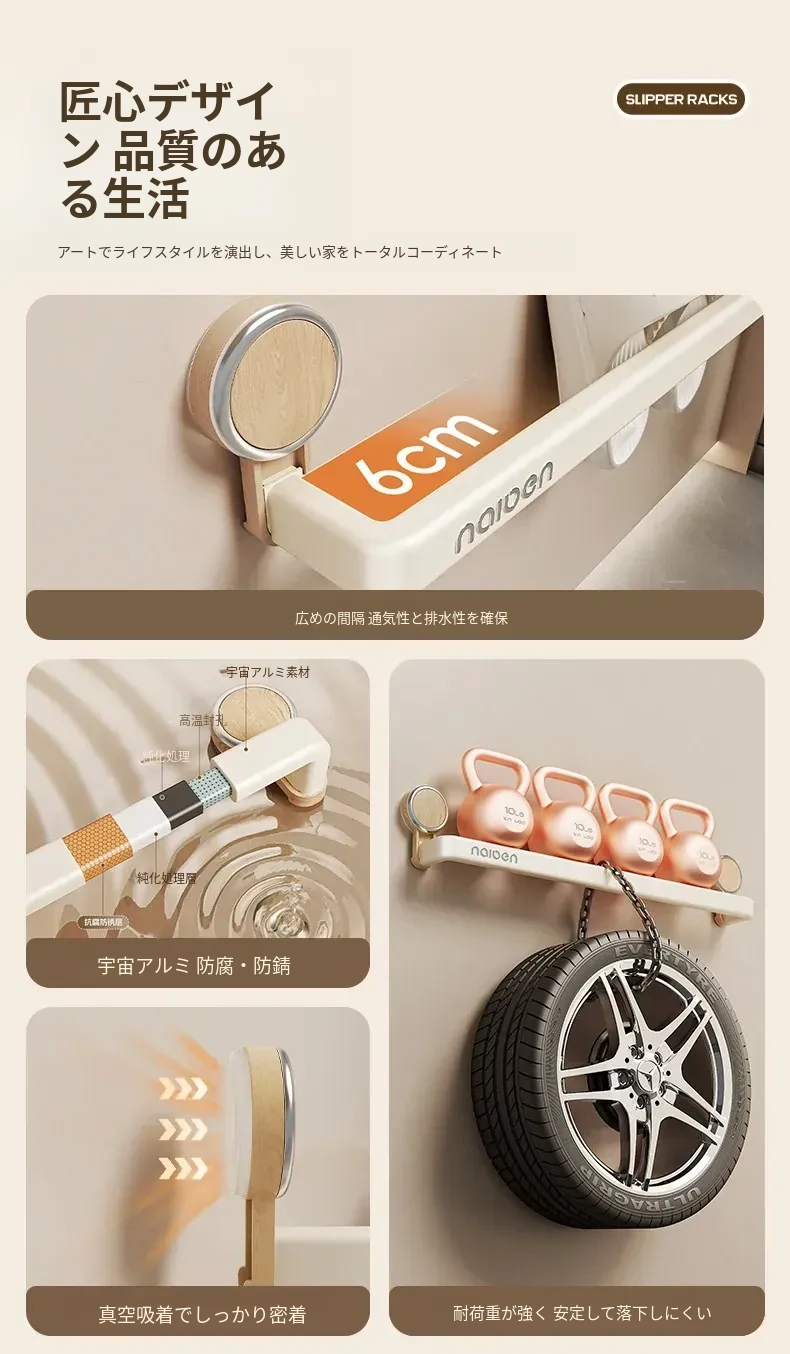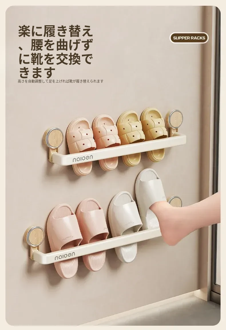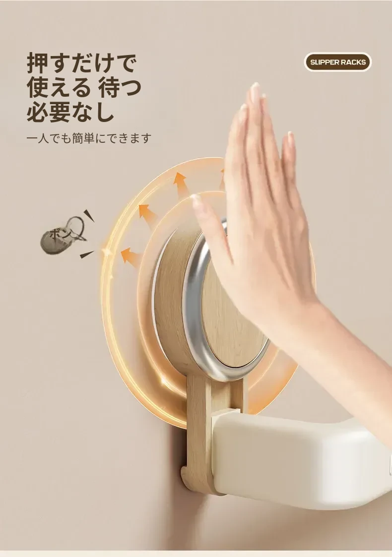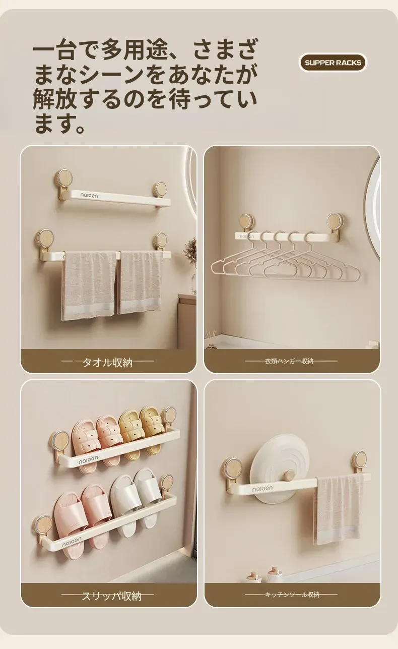 吸盤式スリッパラック - バスルームに最適!穴あけ不要で取り付け簡単、湿気を逃がすデザインで清潔をキープ。玄関やトイレにぴったりな収納アイテムで、スリッパや小物をスマートに整理!