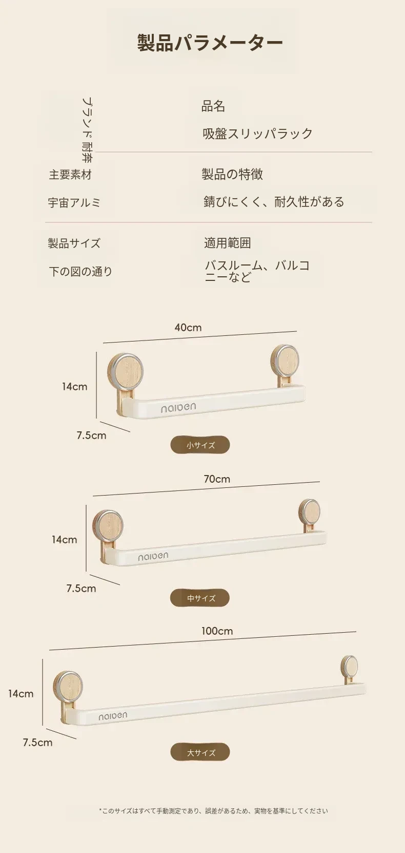 アイボリー40cm-吸盤スリッパラック【1-2足収納可】