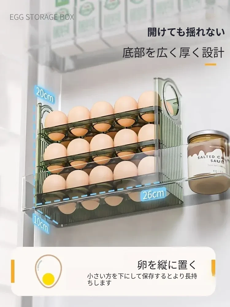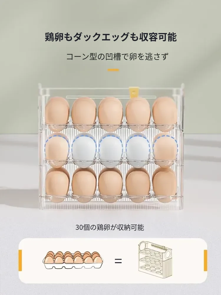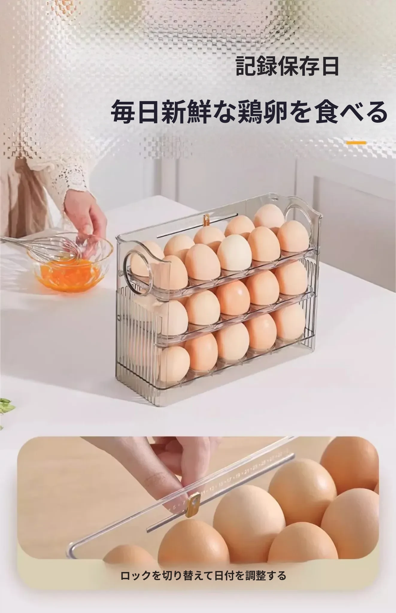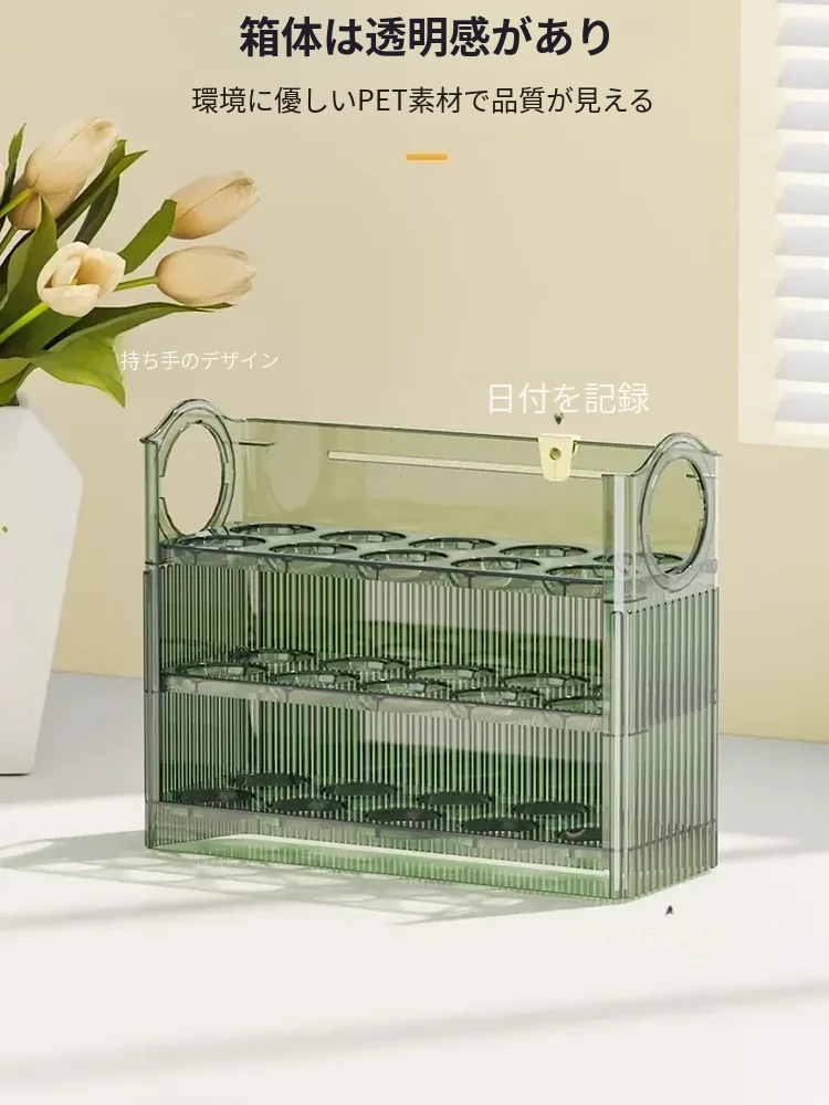 食品グレードの透明卵収納ボックス - 冷蔵庫のサイドドアにぴったり!卵を鮮度を保ちながら美しく整理できる便利なトレイ。おしゃれで機能的なキッチンアイテムです。