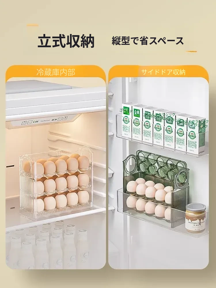 側面収納ボックス1個入り【約25個の卵、調味料、果物を収納可能】