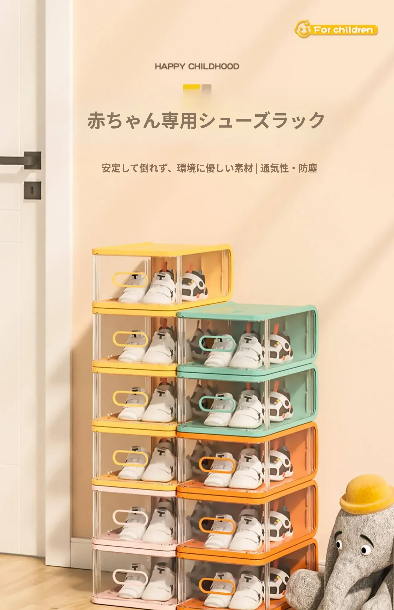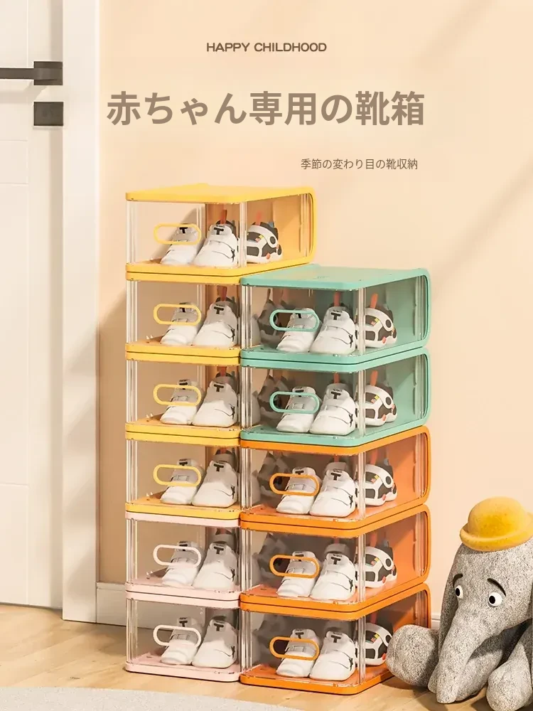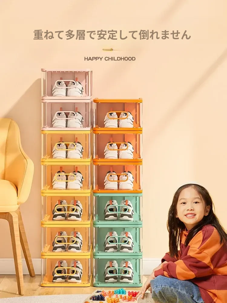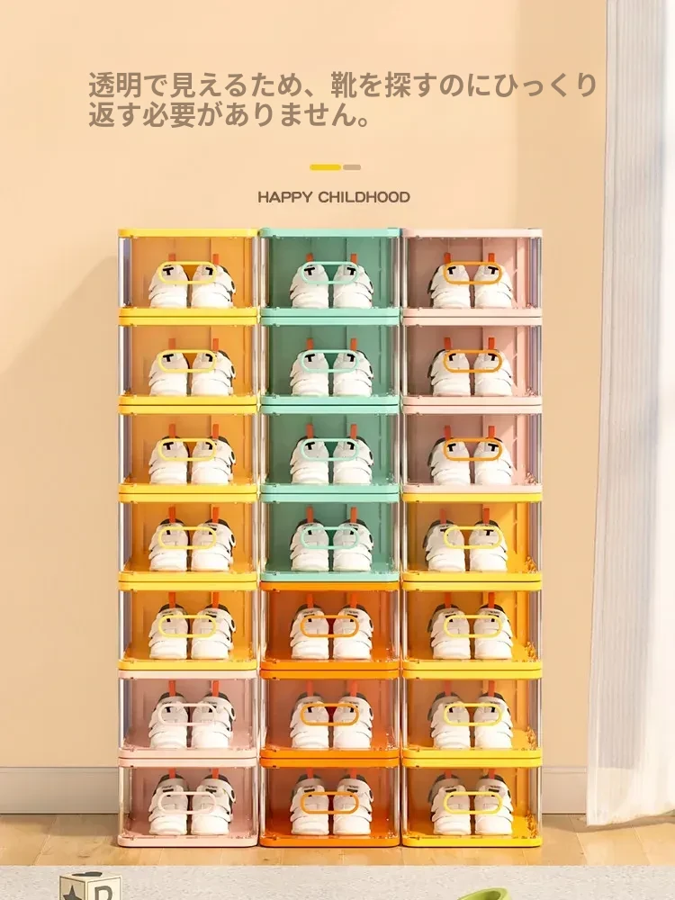 子供用透明プラスチック靴収納ボックス - スペース節約! 防塵・防酸化で靴を守る収納の必需品、スタイリッシュで整理整頓も簡単!