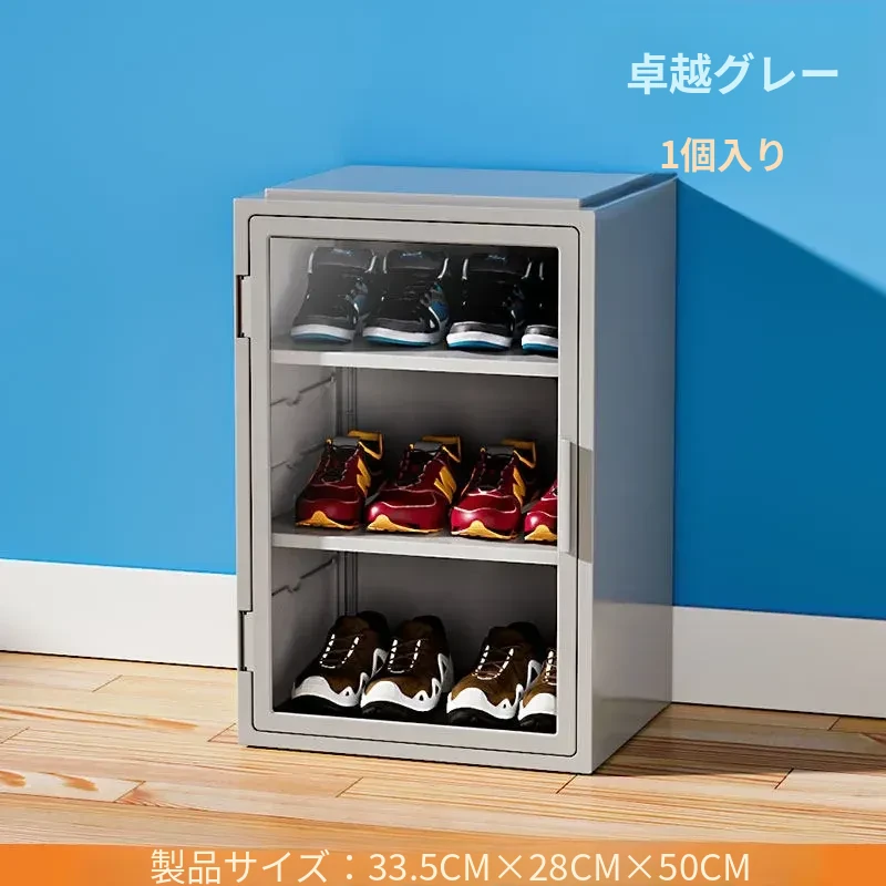 エクセレントグレー-シューズキャビネット1個セット(調整可能な仕切り3個付き)