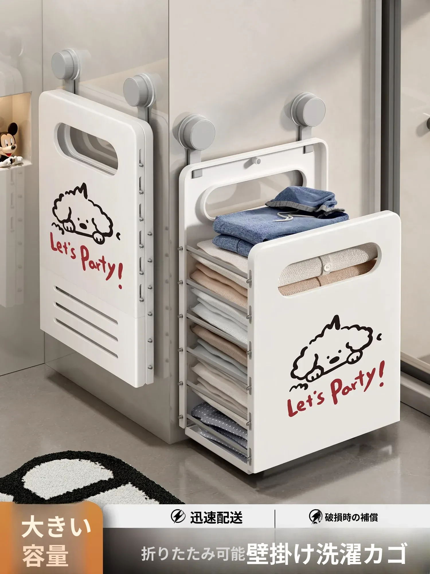シンプルな壁掛け式大容量ランドリーバスケット - 折りたたみ可能で家族の衣類をすっきり整理!