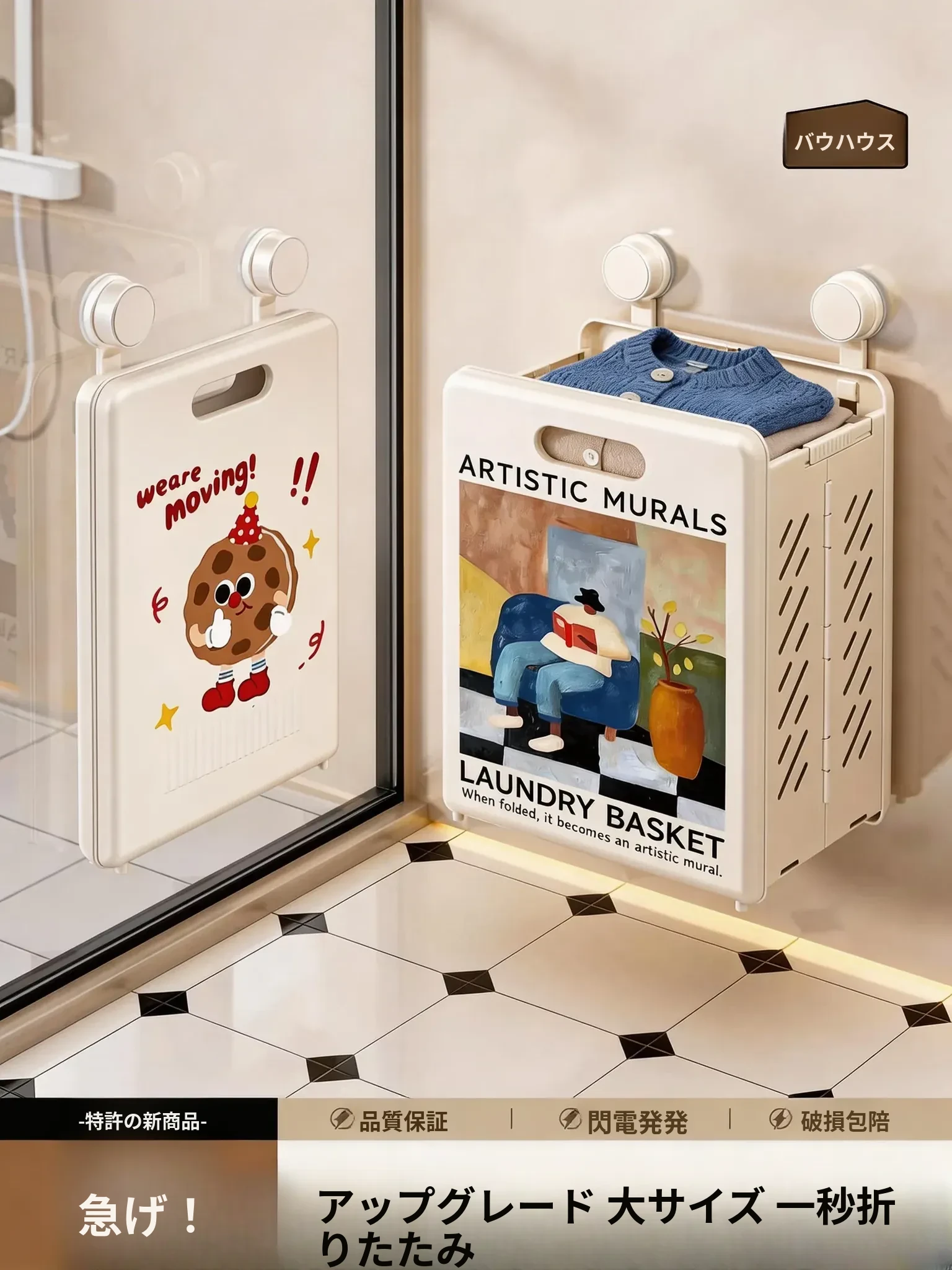 折りたたみ式洗濯かご - 壁掛け可能!お風呂の衣類収納に最適!省スペースでおしゃれなデザイン、使いやすさ抜群の便利アイテム。清潔なバスルームを実現し、家の中をスッキリ整理整頓!