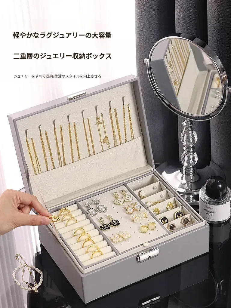 高級感あふれるジュエリー収納ボックス|ネックレス・イヤリング・ピアス・ブレスレット・リングもたっぷり収納できる大容量|美しいデザインであなたの宝物をしっかり守ります!