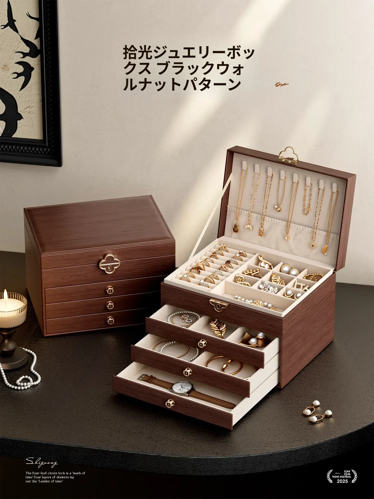 ウォールナットウッドの高級ジュエリーボックス - 精巧な装飾品やゴールドイヤリング、ネックレスも収納可能!大容量で防酸化設計、レトロなデザインであなたの宝物を美しく守ります。