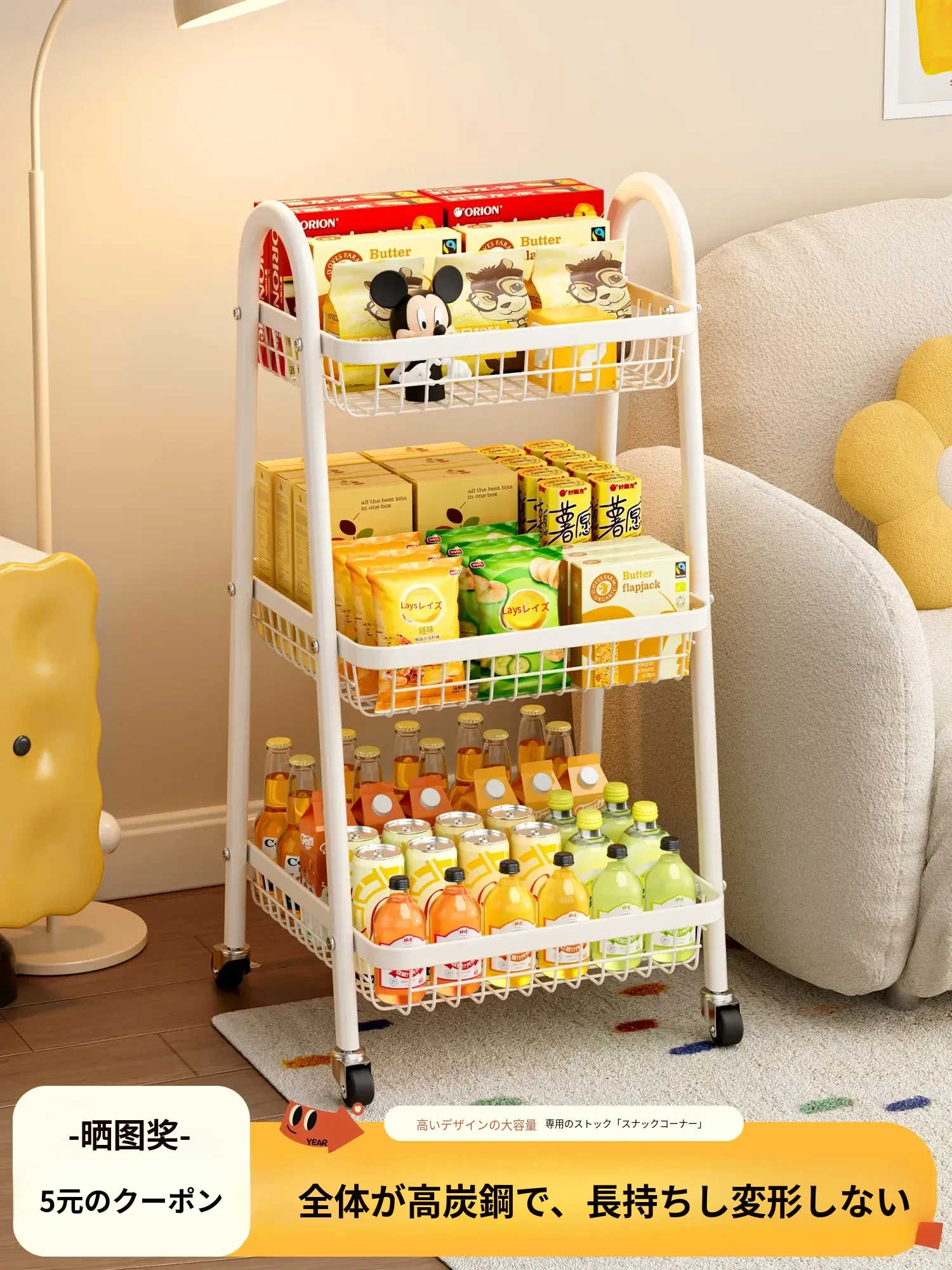 耐久性抜群!移動式小型ラック、書籍やおやつをすっきり収納。キッチンや勉強スペースにも最適な子供用収納キャビネット!お部屋をスッキリ整理整頓。