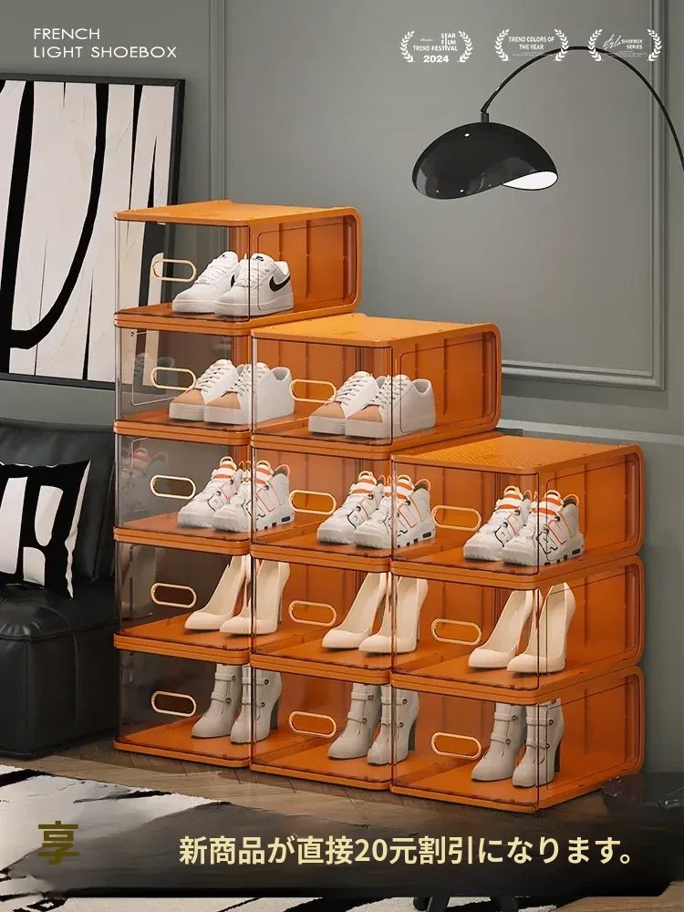 透明なシューズボックス - 家庭用一体型シューズキャビネット!防塵設計で靴をしっかり保護。マグネット式で簡単収納、玄関をスッキリ整理できる便利な収納アイテム!