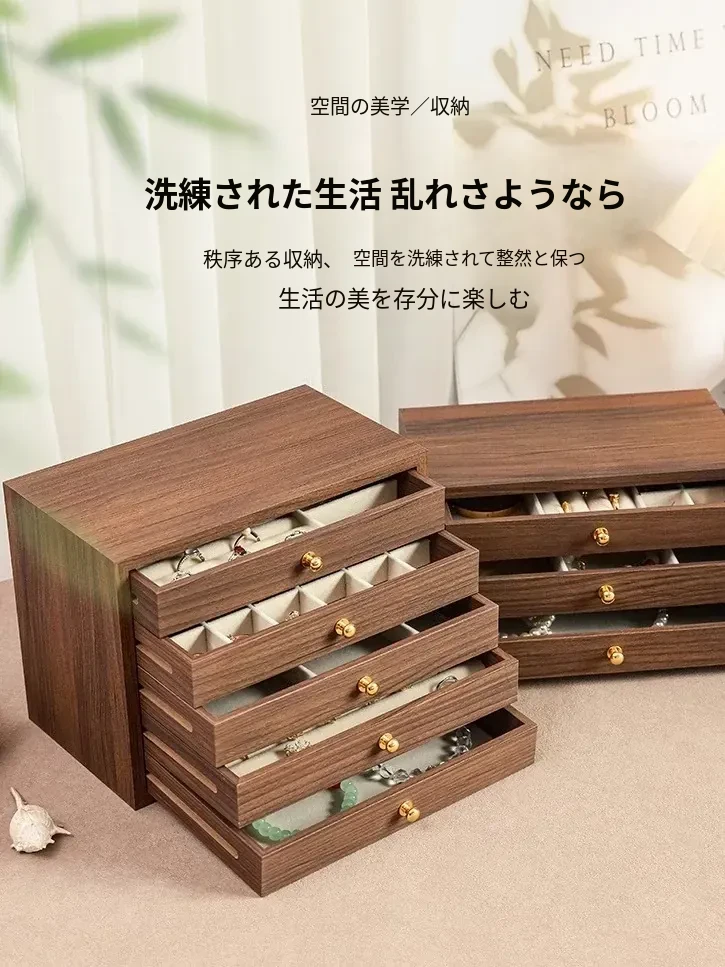 新作!高級ウォールナット調ジュエリーボックス - 精巧なデザインでネックレス、イヤリング、ピアスを整理整頓!多層収納であなたの宝物を美しく保ちます。