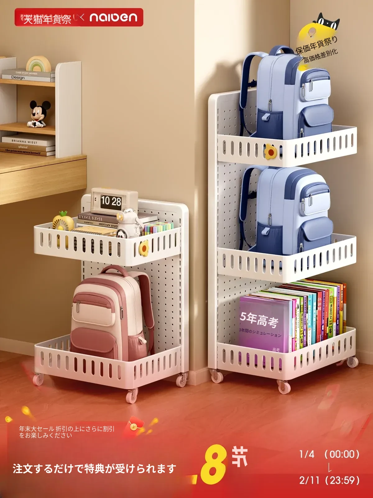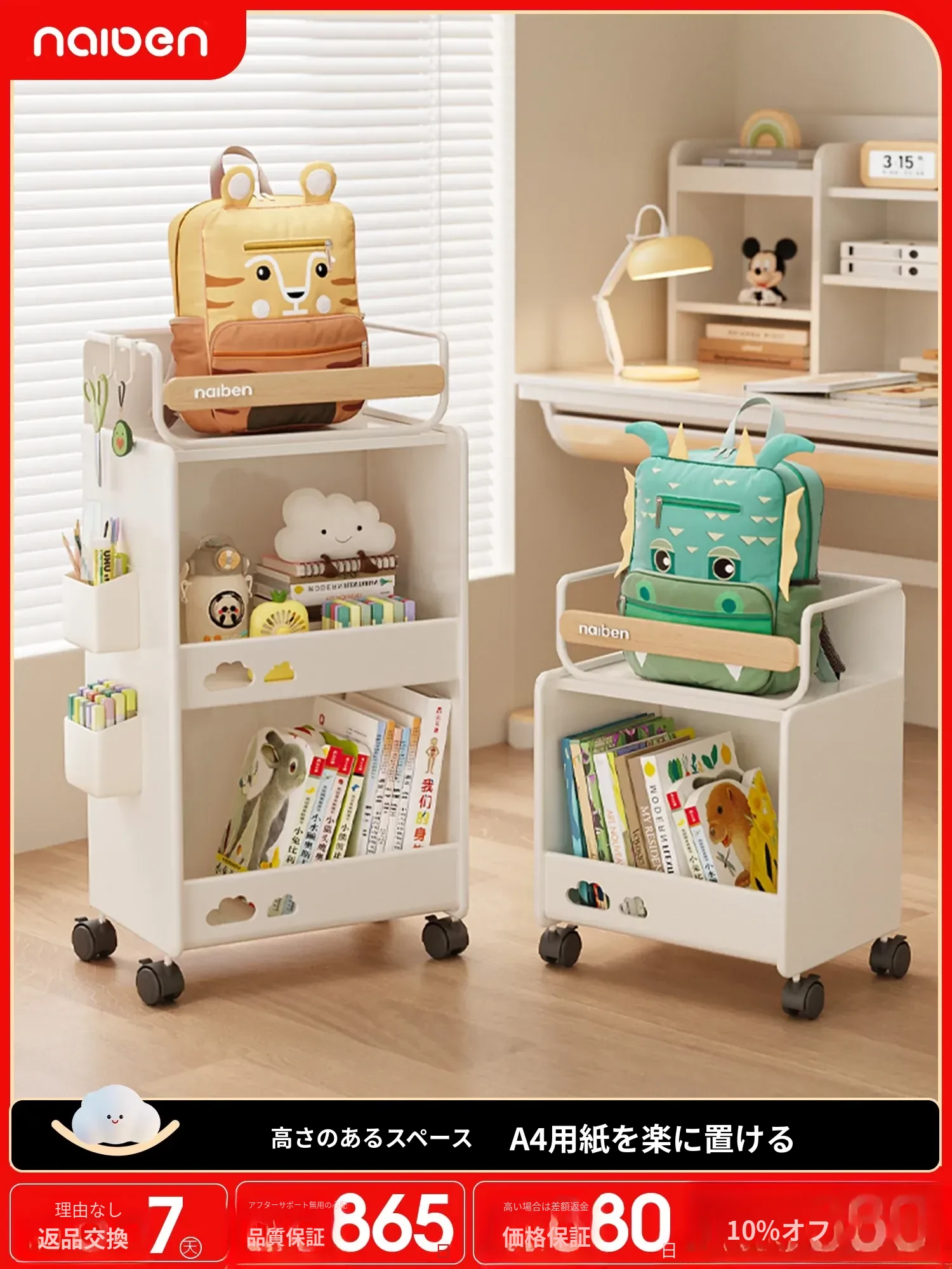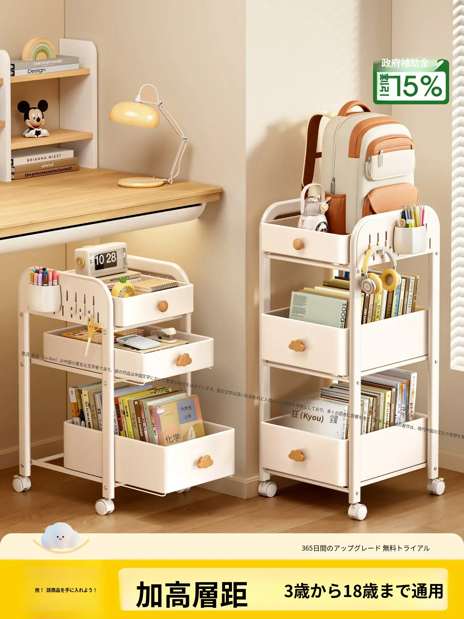 耐久性抜群!移動式小型ラック、書籍やおやつをすっきり収納。キッチンや勉強スペースにも最適な子供用収納キャビネット!お部屋をスッキリ整理整頓。