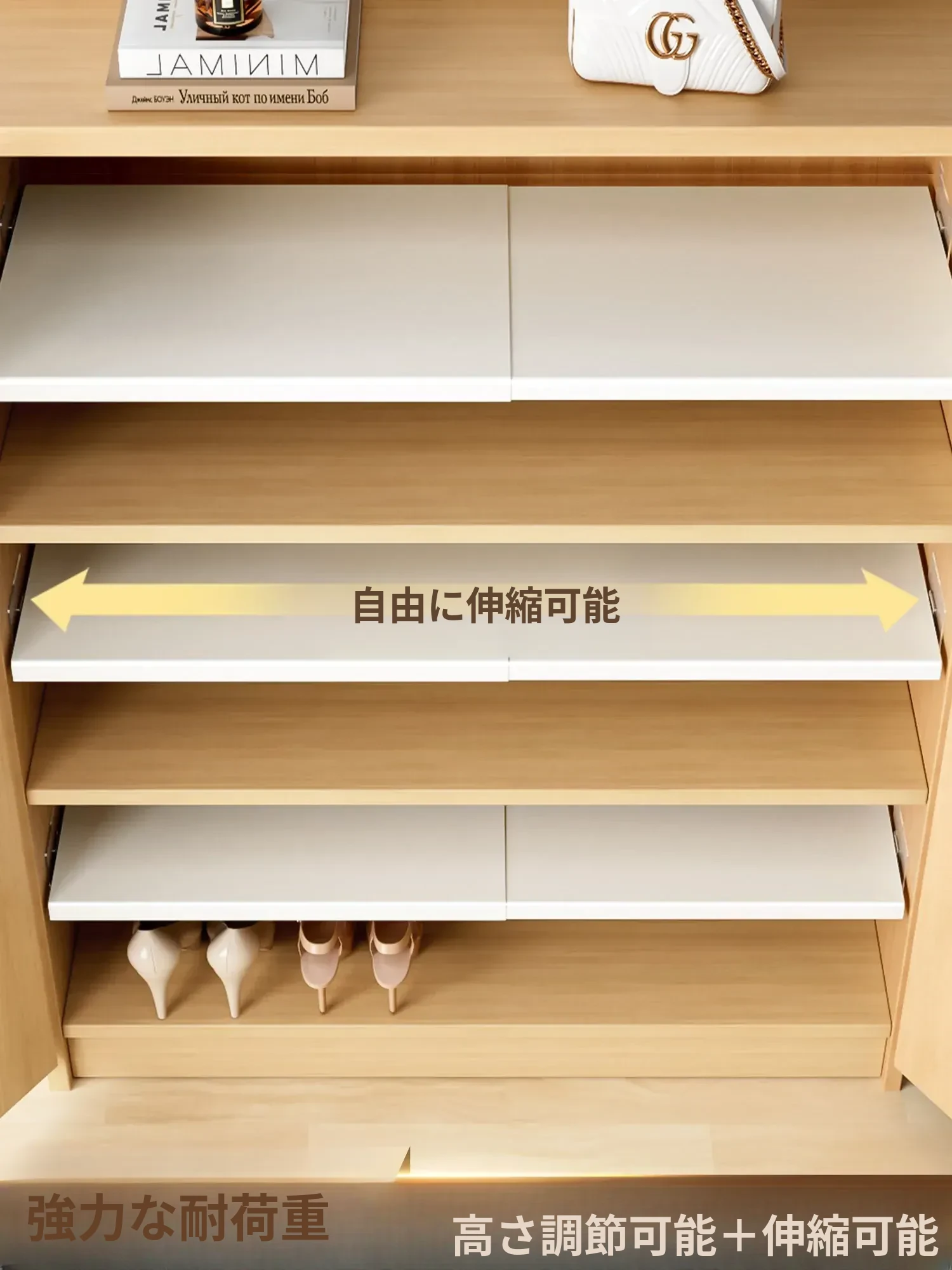 伸縮式シューズキャビネット - スペースを有効活用する収納の神!階層分けされた棚で靴を整理整頓、玄関をスッキリさせる靴ラック。おしゃれで実用的な収納アイテム!