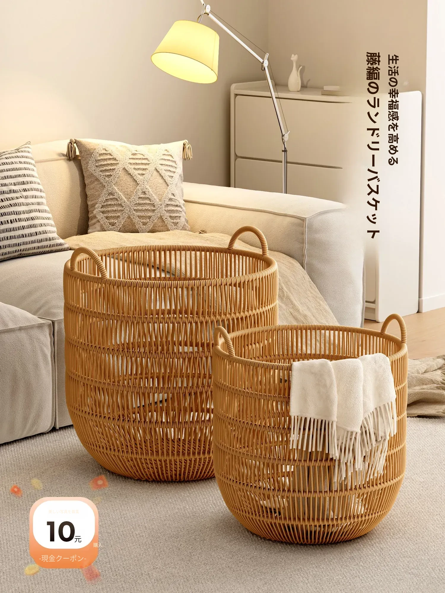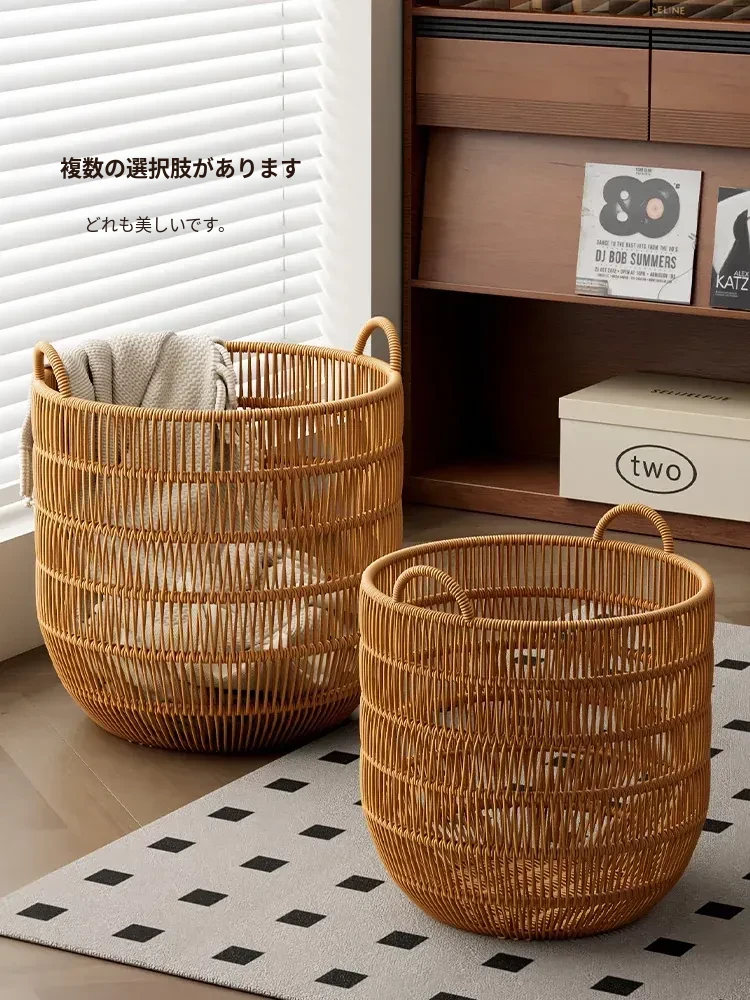 おしゃれな防水バスケット!高級感溢れるラタン風デザインの衣類収納バスケット。寝室やバスルームにぴったり、汚れた衣類をスマートに収納。洗濯も楽々!