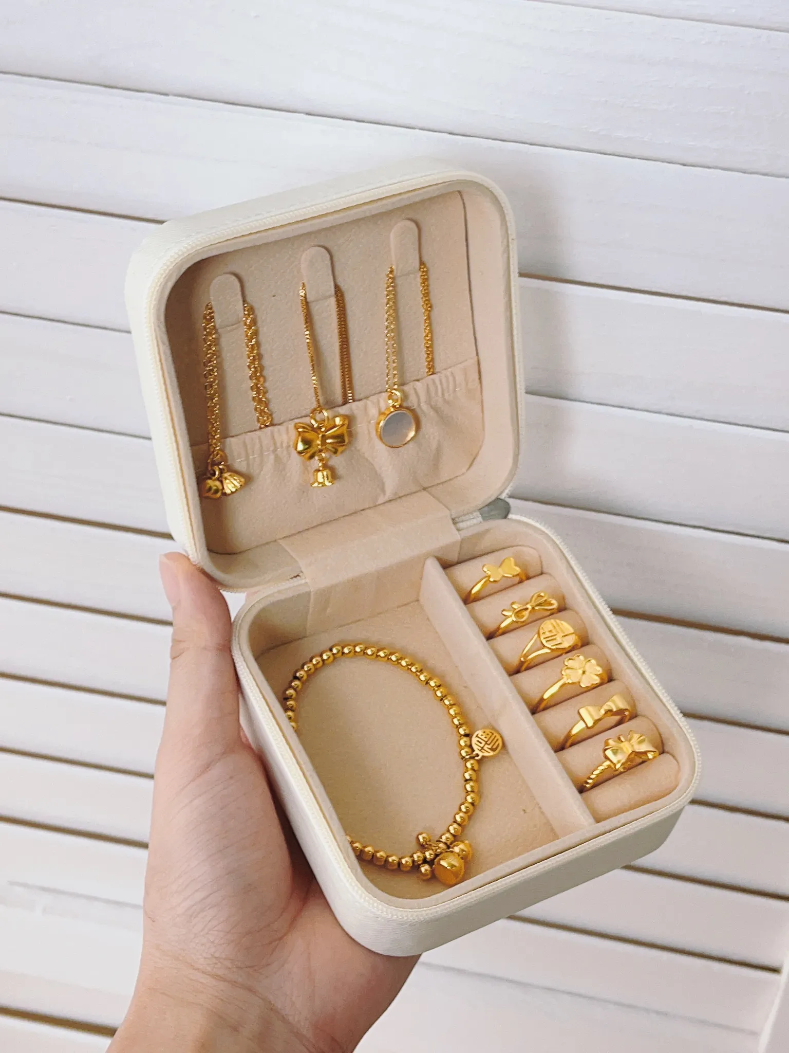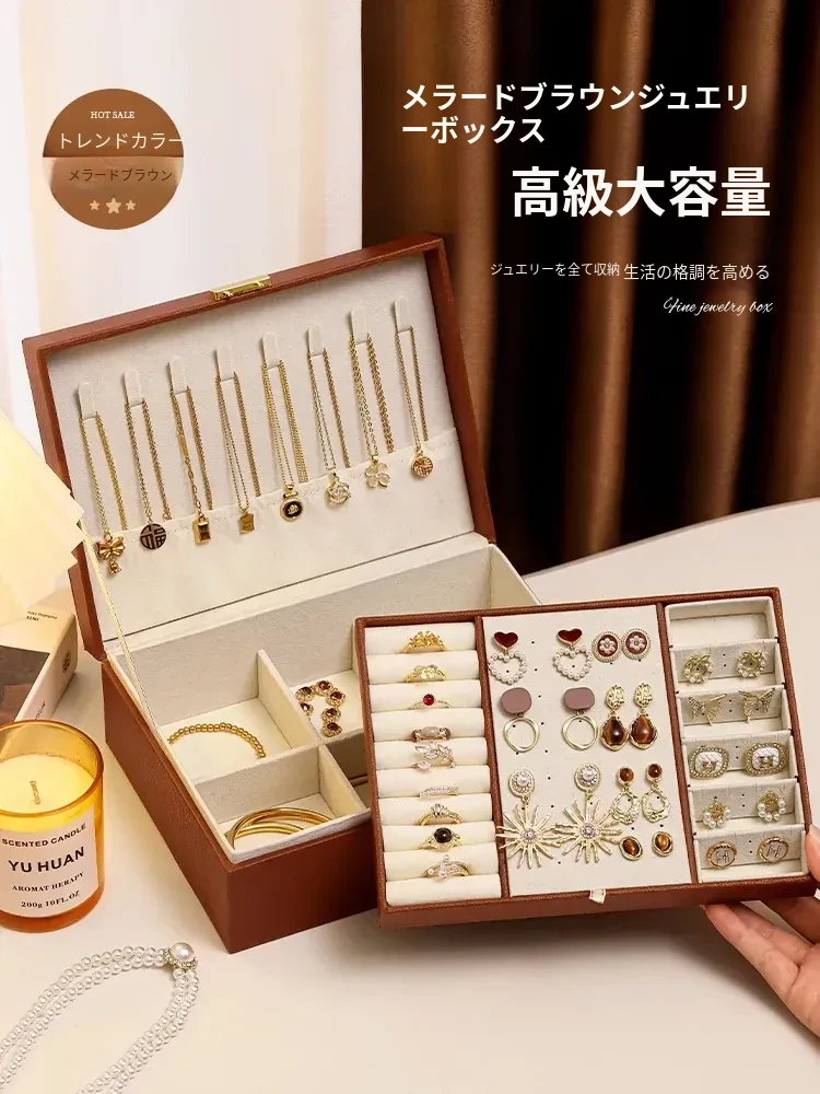 高級感あふれる2026年新作!持ち運びに便利な小型宝石収納ボックス - ゴールドカラーのジュエリーボックスで、大切なアクセサリーを美しく保管!