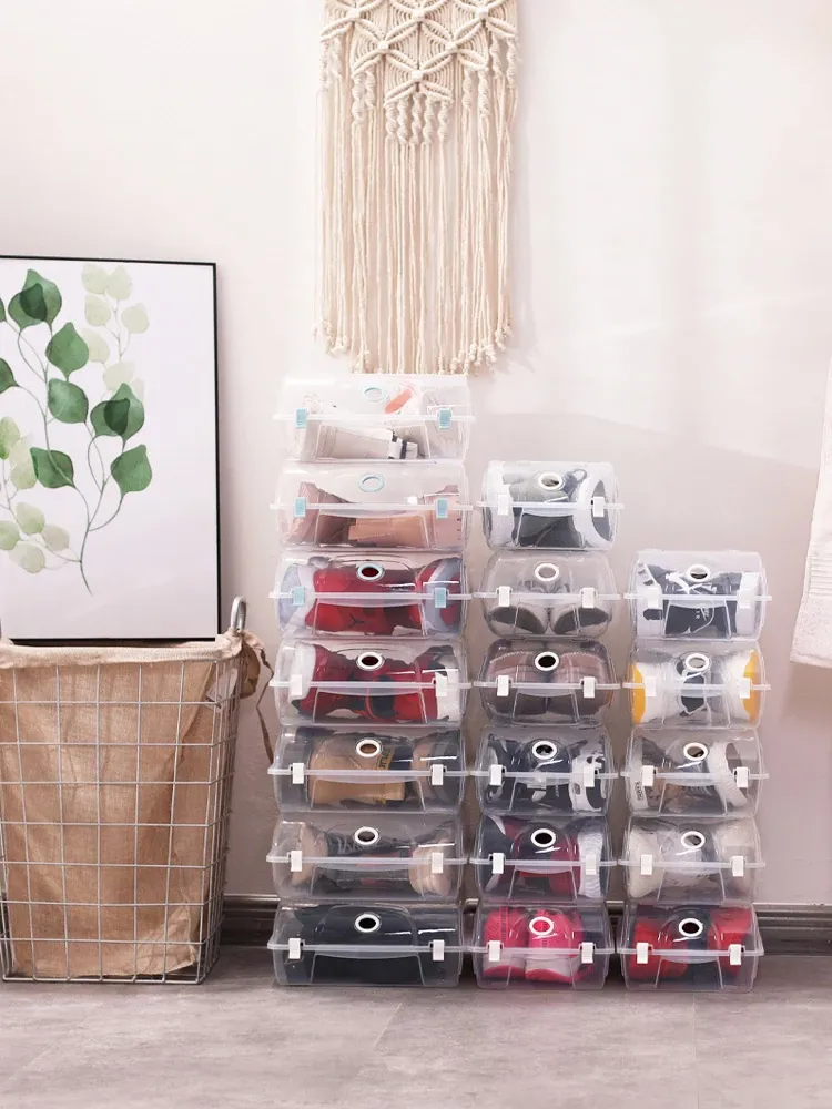 耐久性抜群!透明シューズボックス - 男女兼用の靴整理箱、宿舎にも最適!プラスチック製で靴をしっかり収納、靴棚をスッキリ整頓!あなたの靴を美しく保つ便利アイテム!